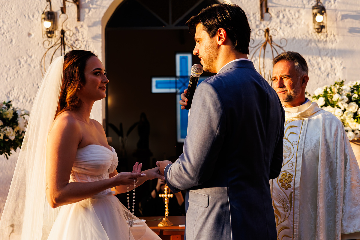 A cerimônia foi emocionante e cheia de significado, com palavras sinceras sendo trocadas e promessas de amor eterno sendo feitas. À medida que o sol se punha no horizonte, o casal se tornava marido e mulher, celebrando sua união diante de seus amigos e familiares.