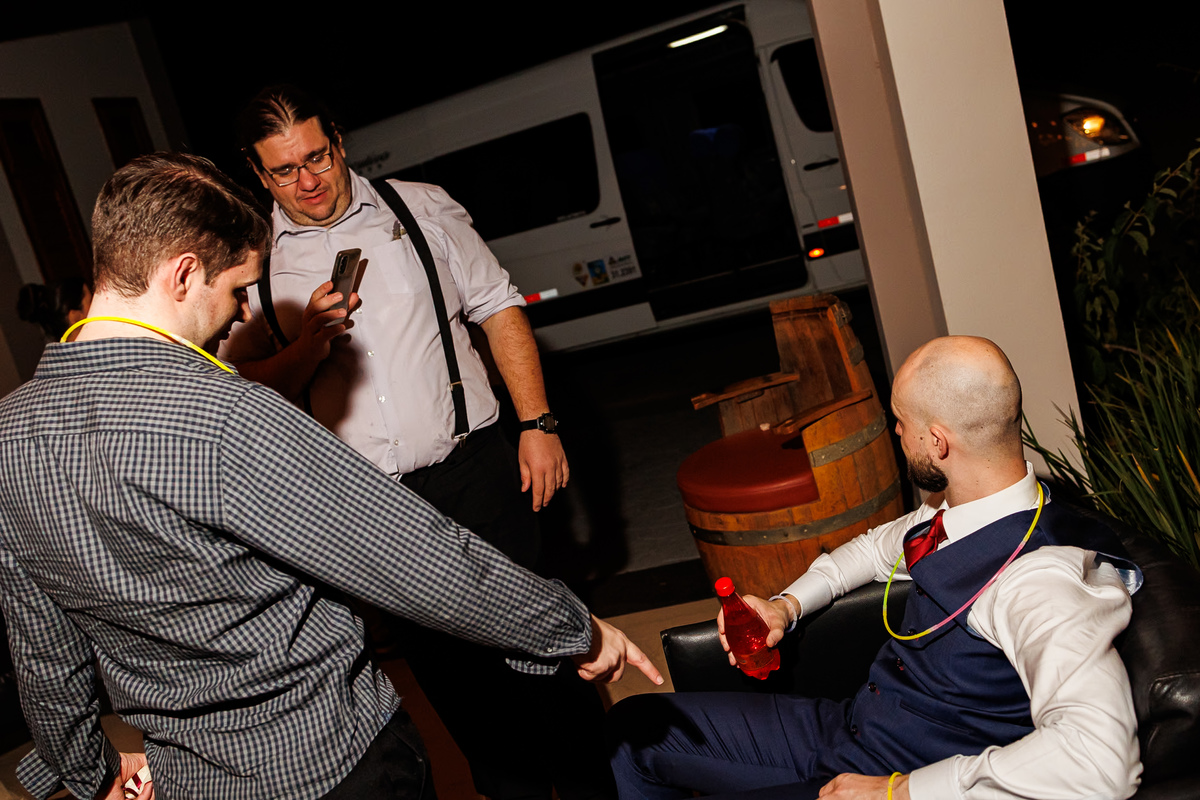 Após a cerimônia, os convidados foram conduzidos à área externa da festa para o Sunset, uma recepção ao ar livre que aproveitou ao máximo a beleza natural do lugar. Com a luz dourada do final de tarde iluminando o ambiente, todos puderam desfrutar de momentos de descontração e alegria.