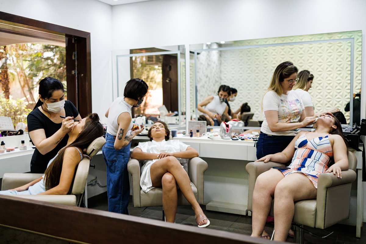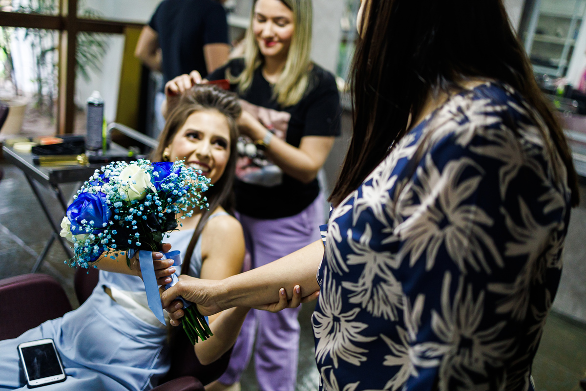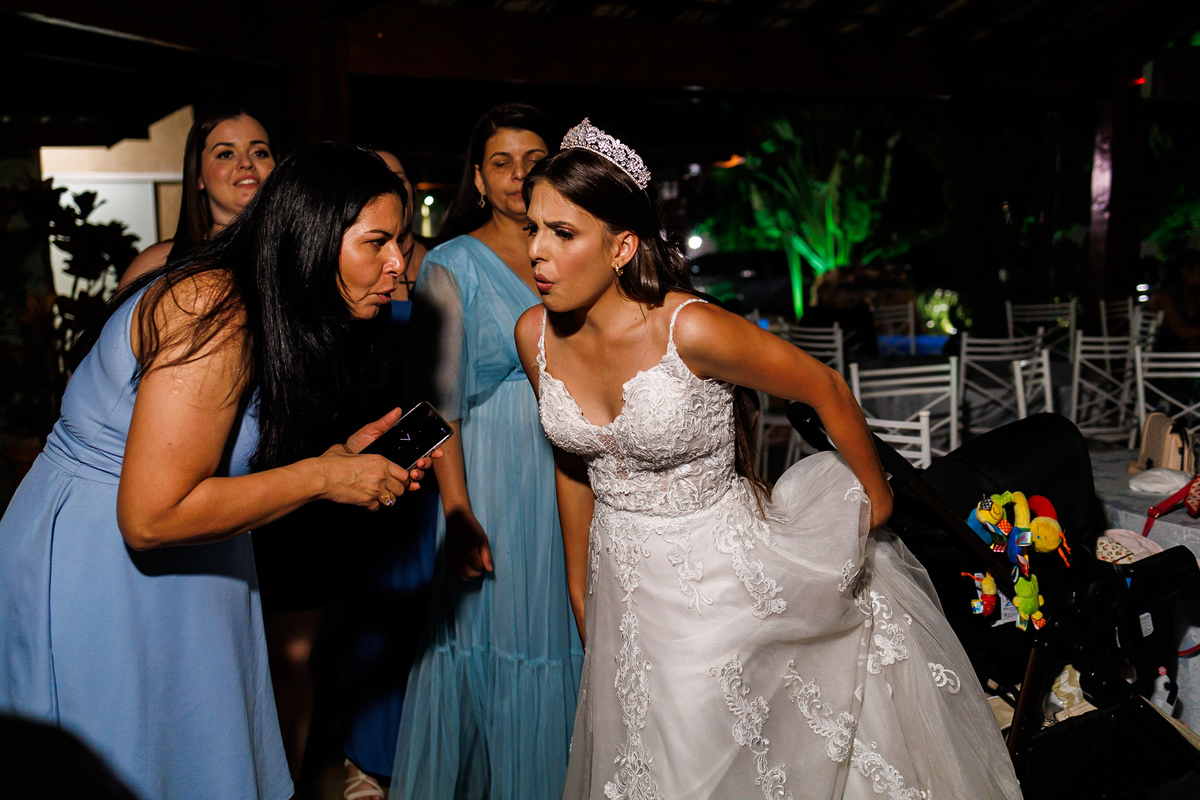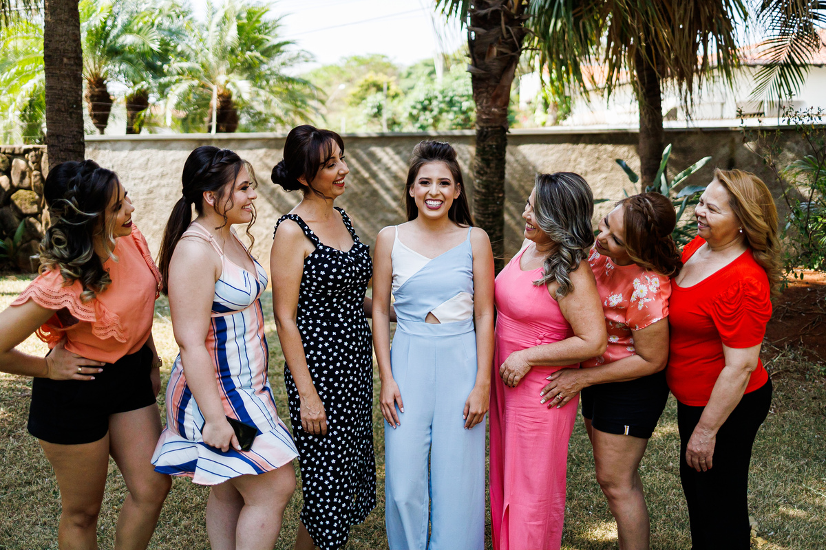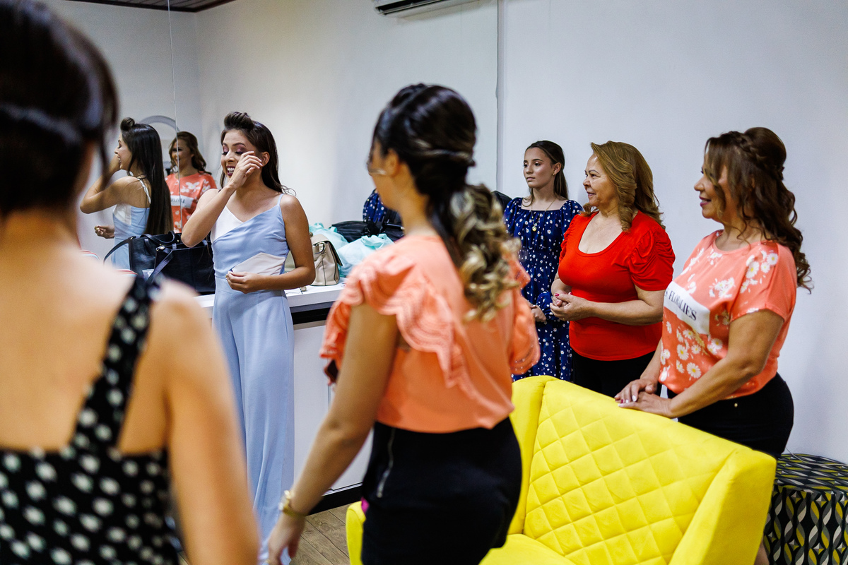No making of de Juliana, ela estava cercada por suas madrinhas e sua mãe, que a ajudaram a se preparar para o grande momento. Cada detalhe foi cuidadosamente preparado, e a atmosfera estava carregada de amor e emoção.