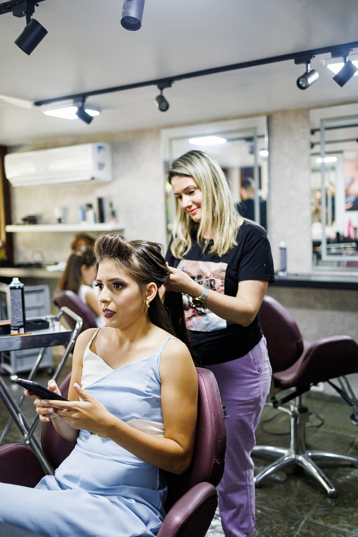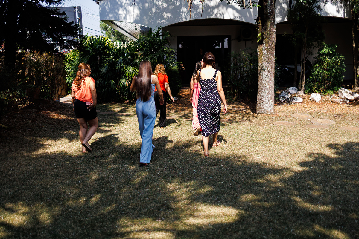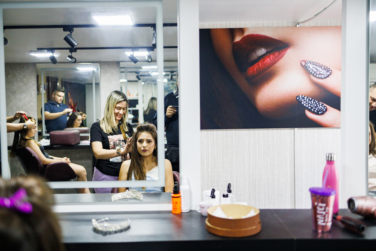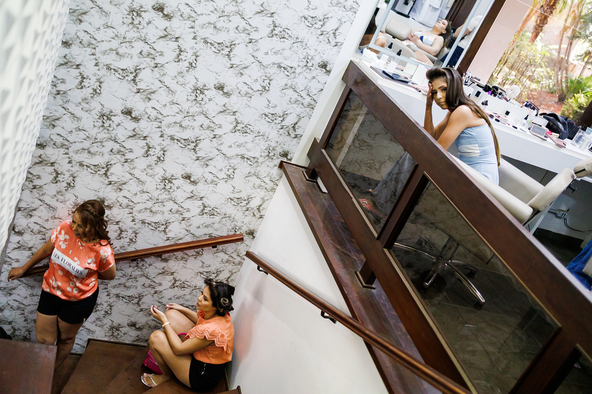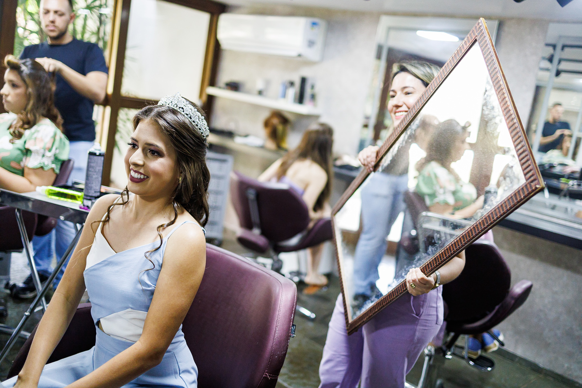 No making of de Juliana, ela estava cercada por suas madrinhas e sua mãe, que a ajudaram a se preparar para o grande momento. Cada detalhe foi cuidadosamente preparado, e a atmosfera estava carregada de amor e emoção.