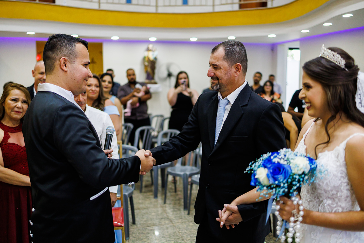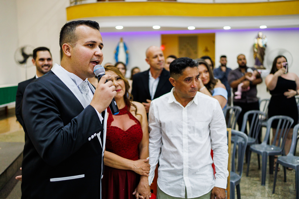 A celebração foi linda, com votos sinceros e um clima de união que tocou a todos. Após a cerimônia, a festa continuou a animar os convidados, com muita música, dança e alegria. Amigos e familiares comemoraram junto com os noivos, tornando a noite ainda mais inesquecível.
