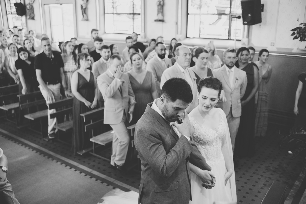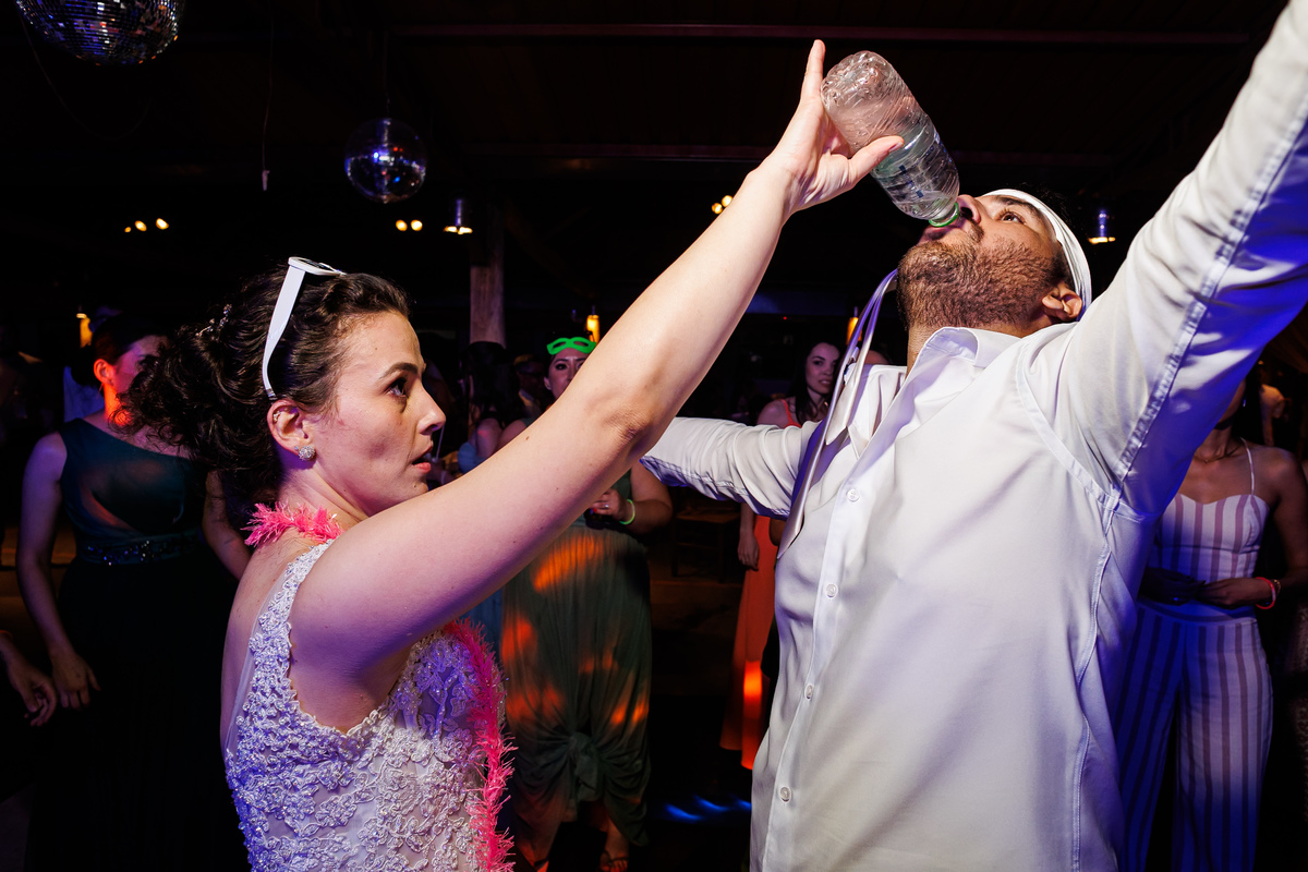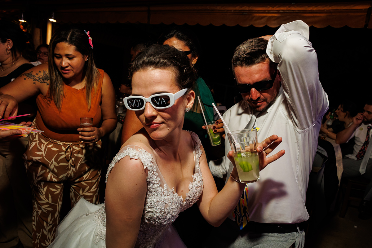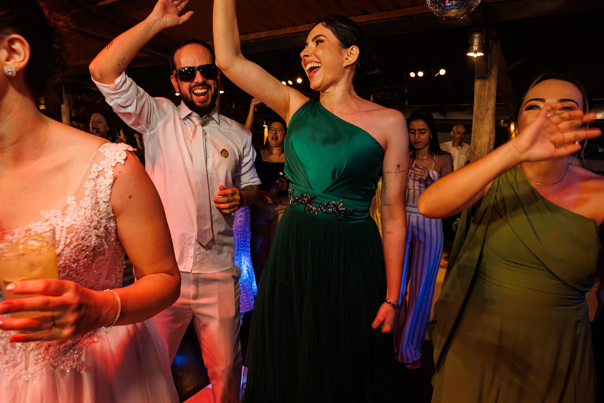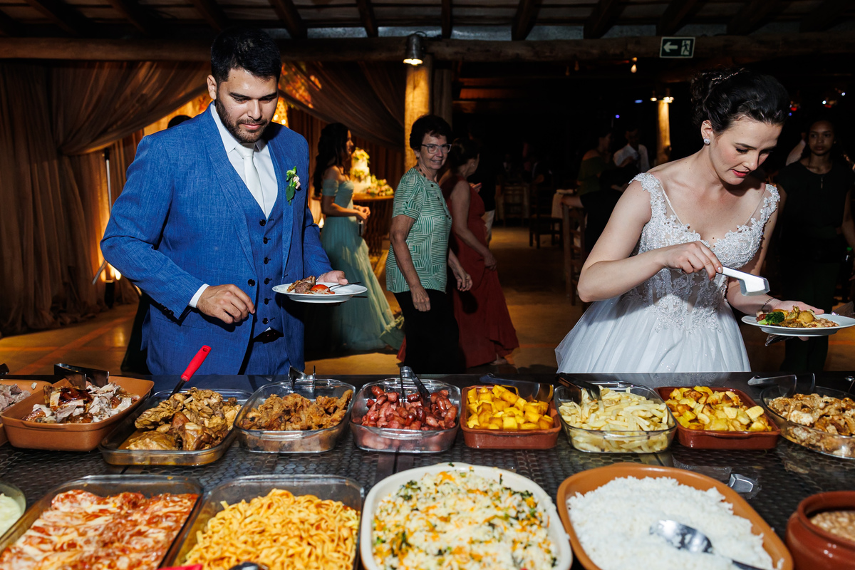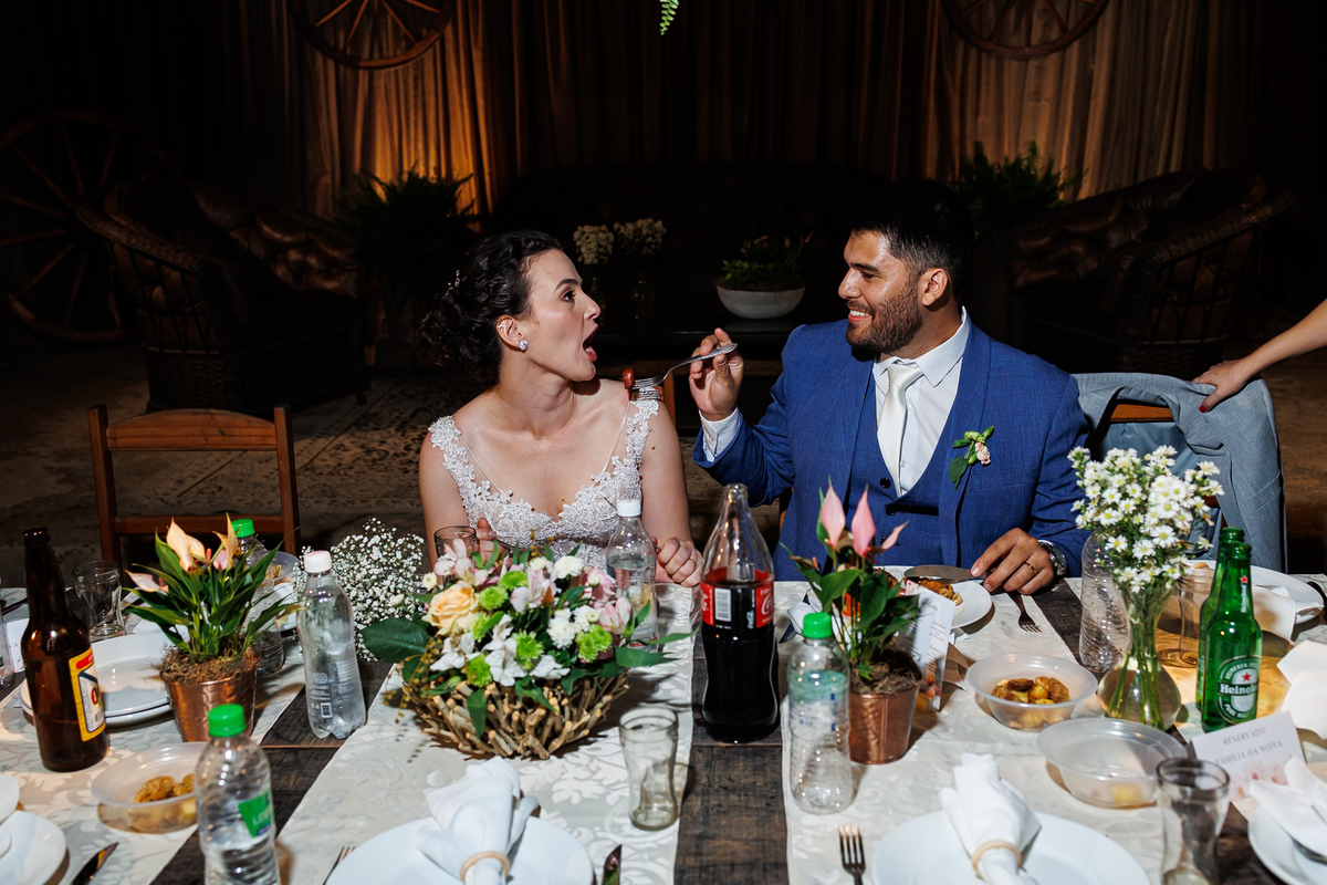 Após a cerimônia, fizemos um ensaio dos recém-casados na própria igreja, aproveitando o ambiente ainda repleto de emoção. Enquanto isso, os convidados se dirigiam ao Tuia Véia, onde a festa já prometia ser animada.