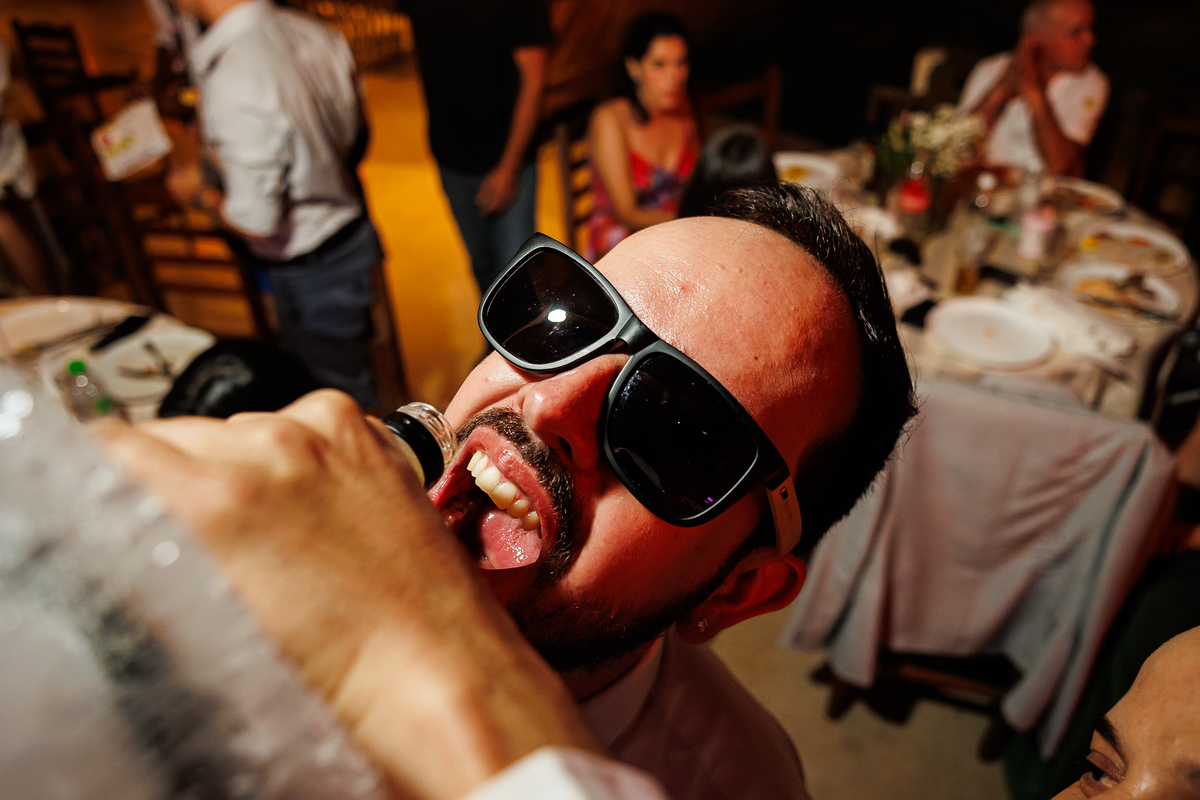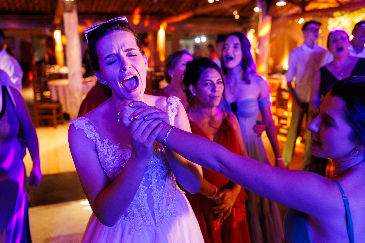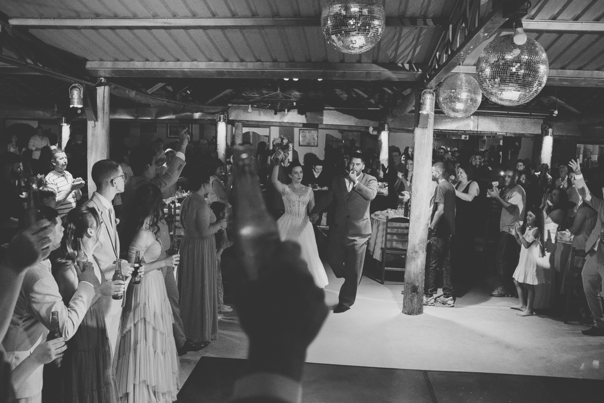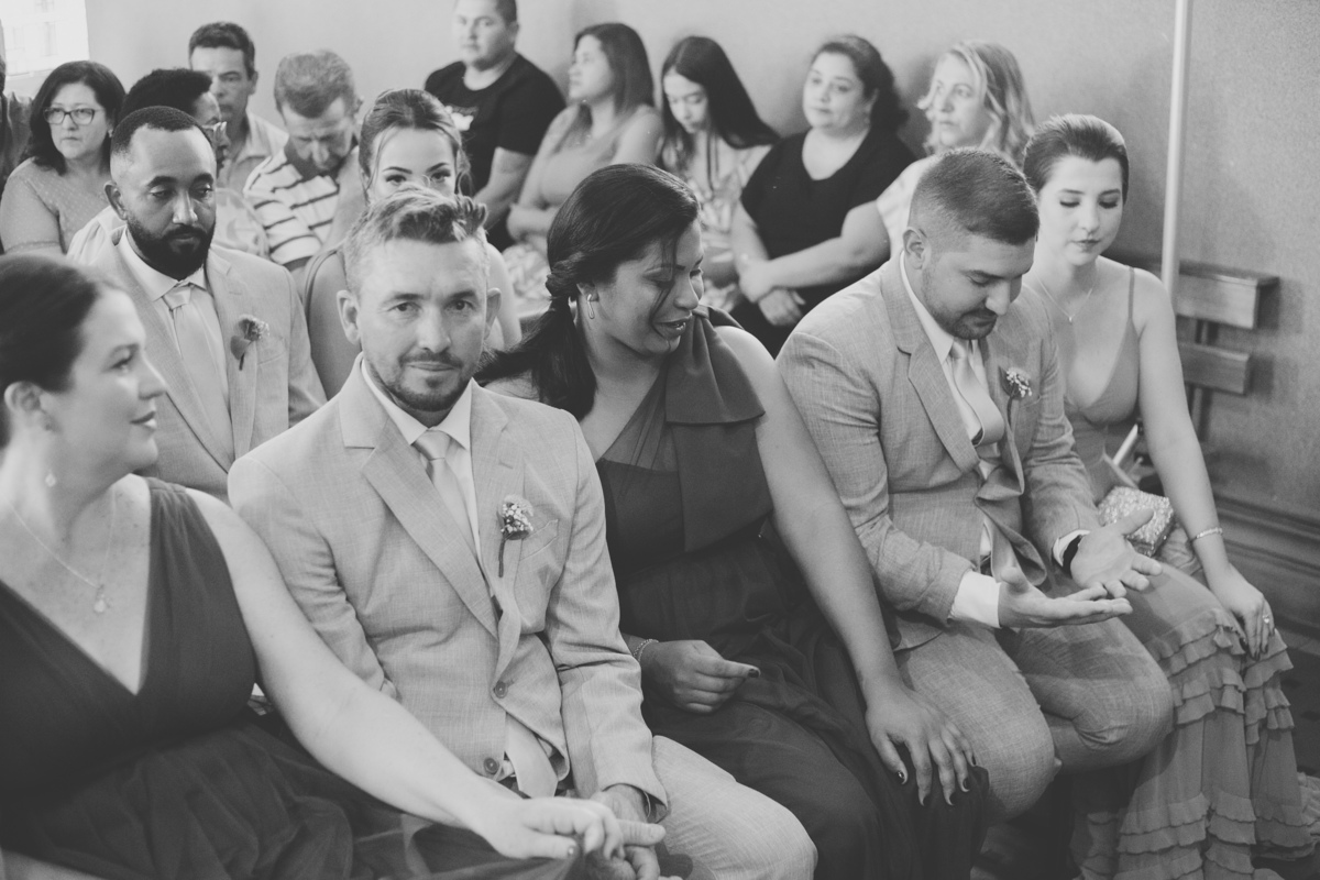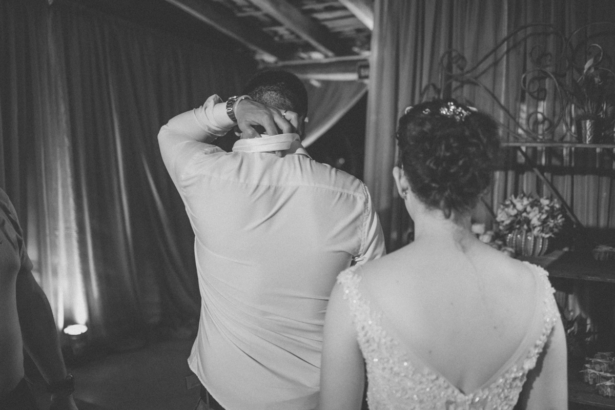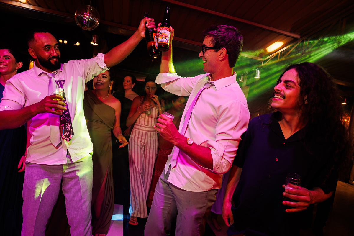 Após a cerimônia, fizemos um ensaio dos recém-casados na própria igreja, aproveitando o ambiente ainda repleto de emoção. Enquanto isso, os convidados se dirigiam ao Tuia Véia, onde a festa já prometia ser animada.