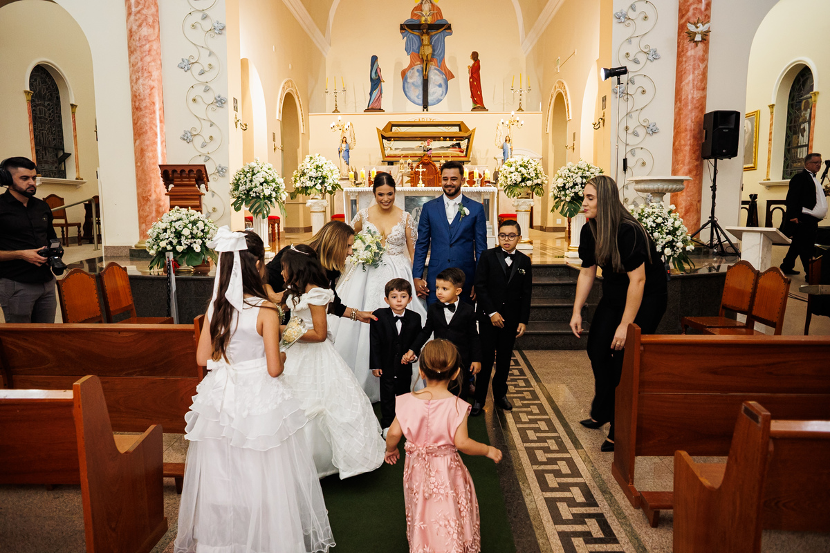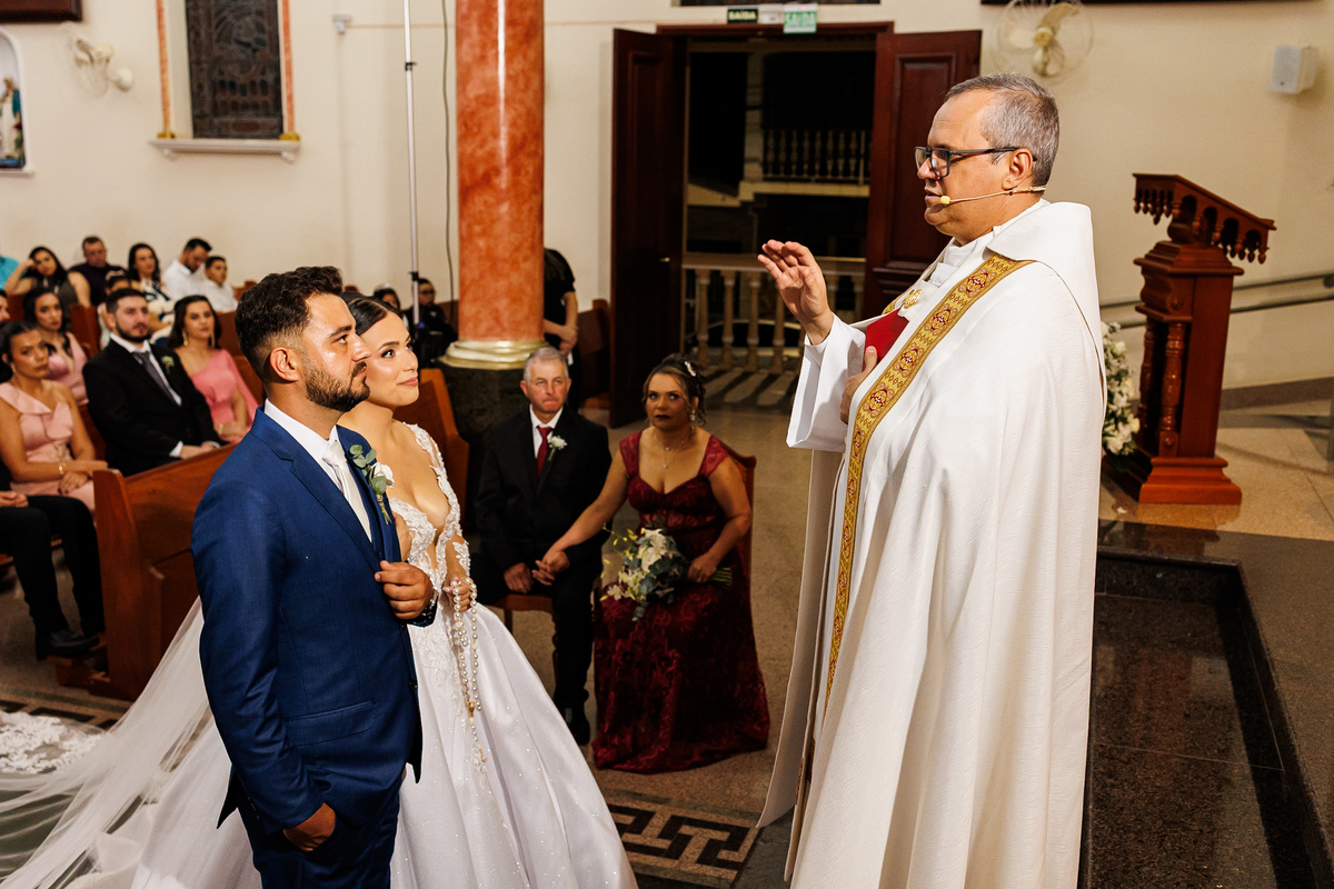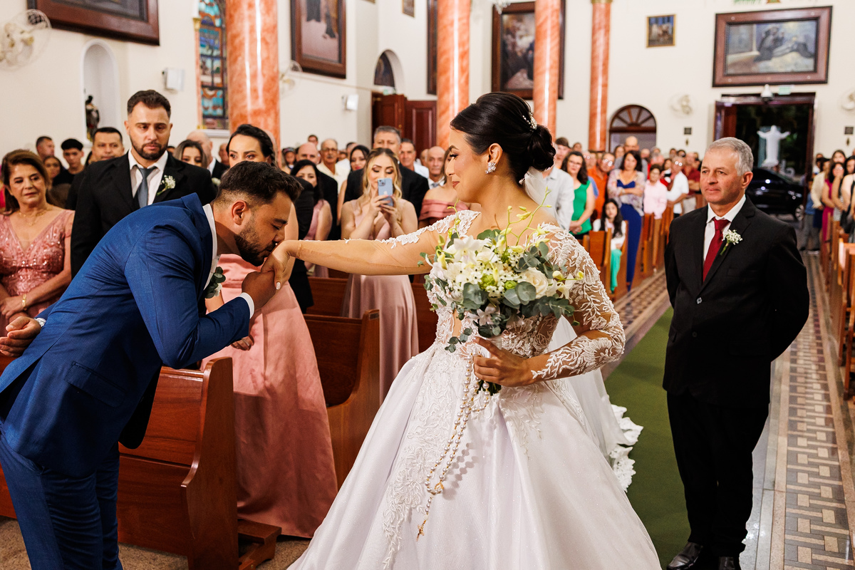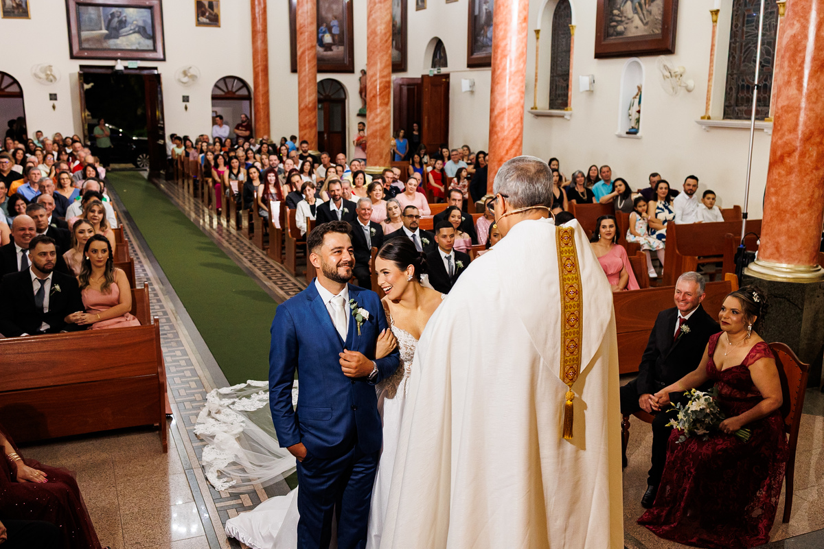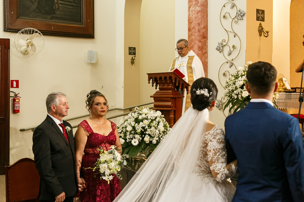 A cerimônia aconteceu na belíssima Matriz de Santa Rita de Caldas e foi simplesmente emocionante. Cada olhar, cada sorriso e cada lágrima dos convidados traduziam o significado daquele momento. Os votos foram trocados em meio a uma atmosfera de amor e conexão, e era impossível não se emocionar com a celebração do amor de Cláudia e Bruno.