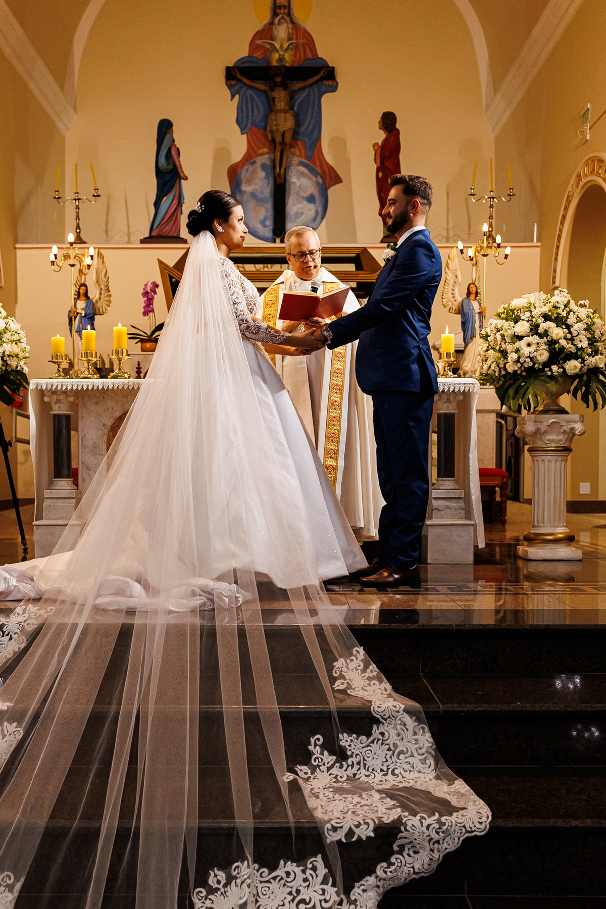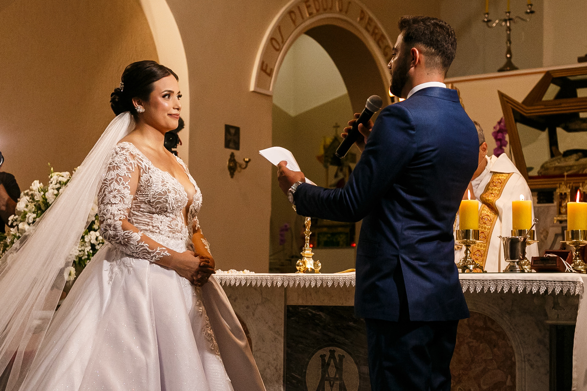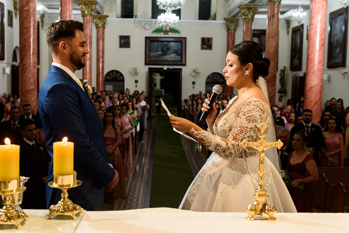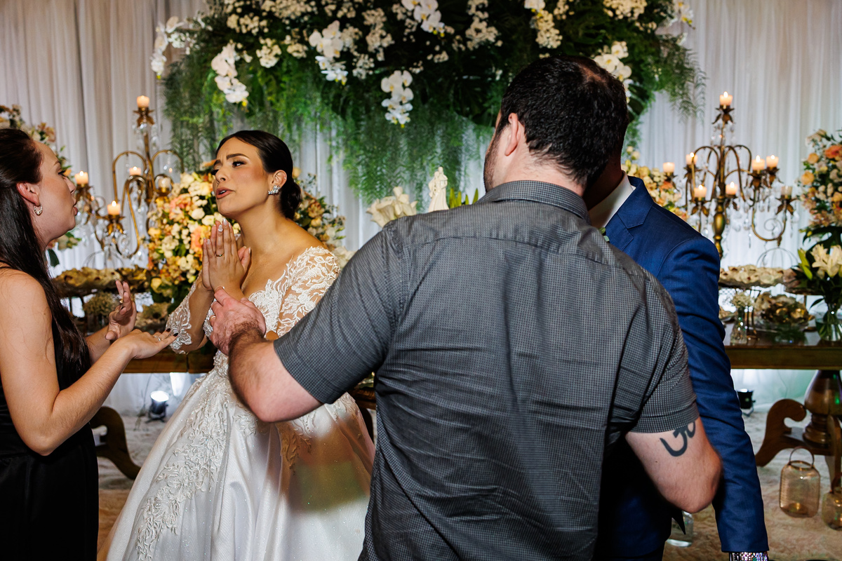 A cerimônia aconteceu na belíssima Matriz de Santa Rita de Caldas e foi simplesmente emocionante. Cada olhar, cada sorriso e cada lágrima dos convidados traduziam o significado daquele momento. Os votos foram trocados em meio a uma atmosfera de amor e conexão, e era impossível não se emocionar com a celebração do amor de Cláudia e Bruno.
