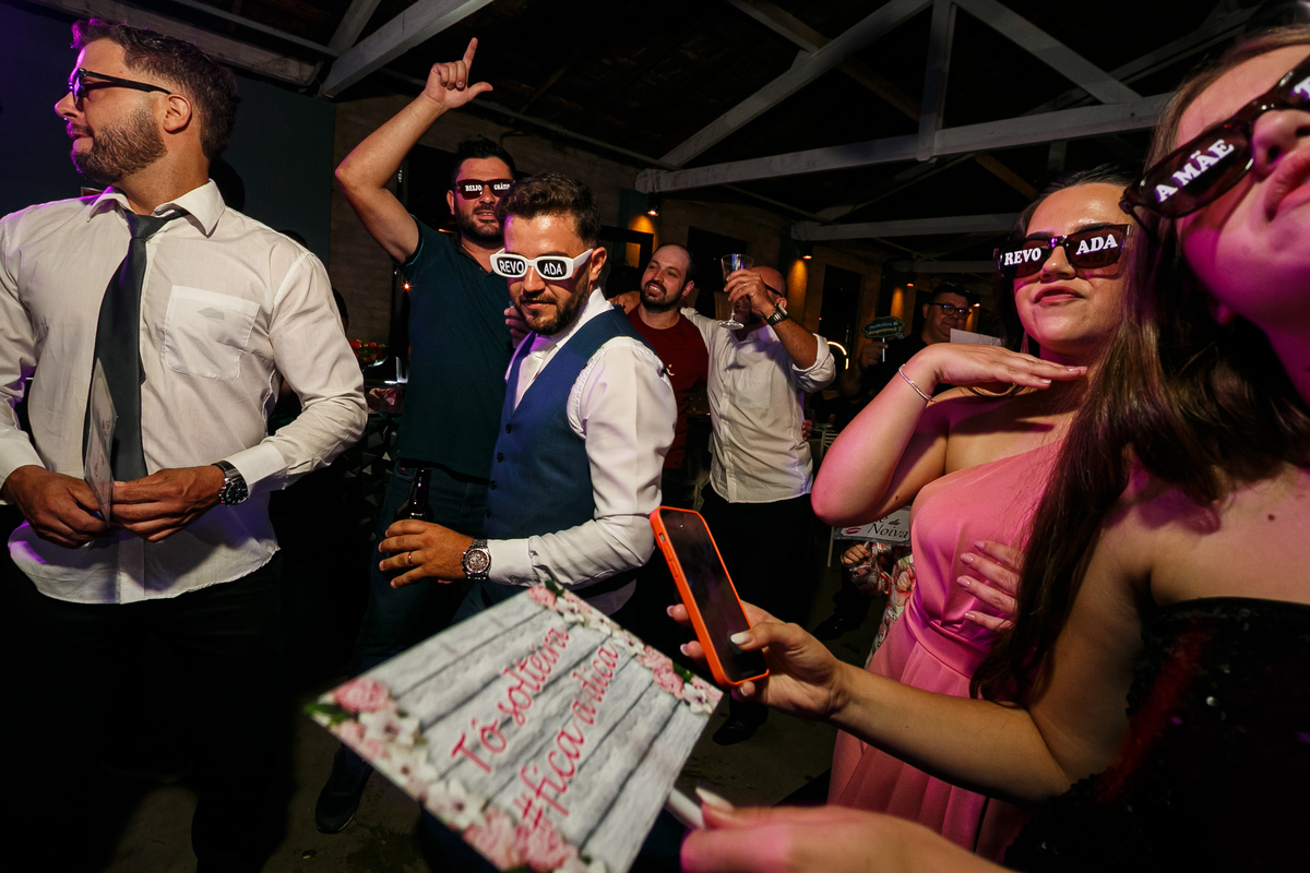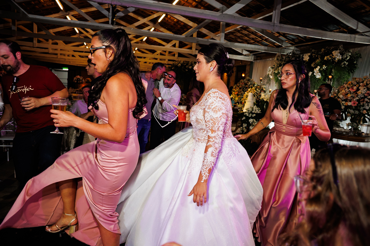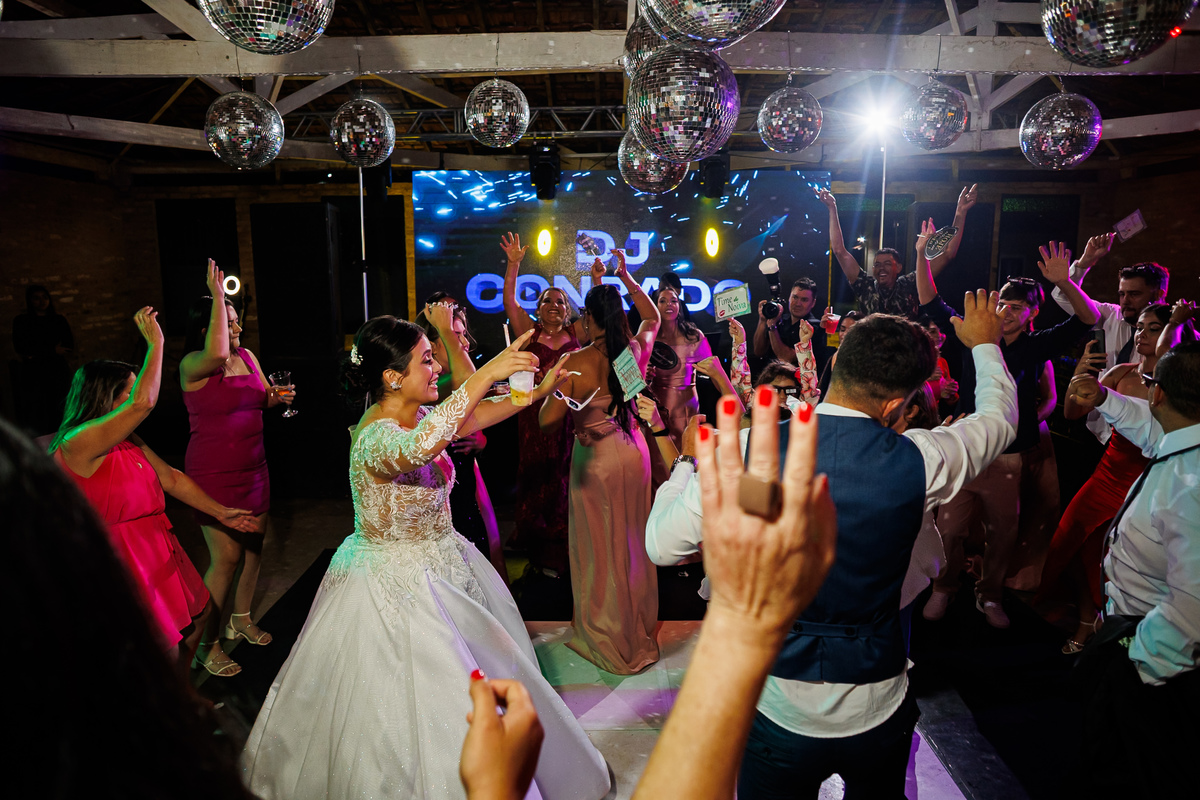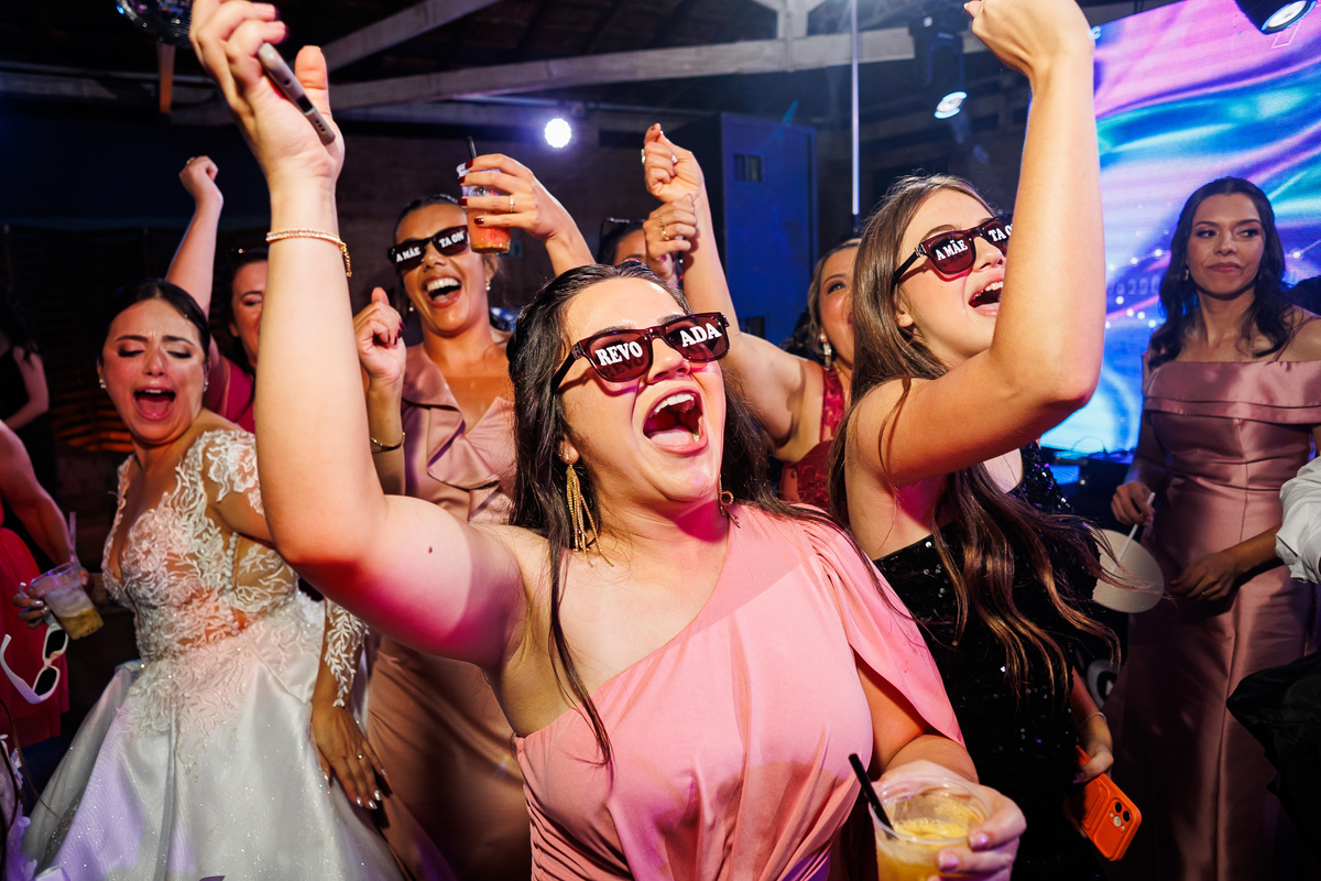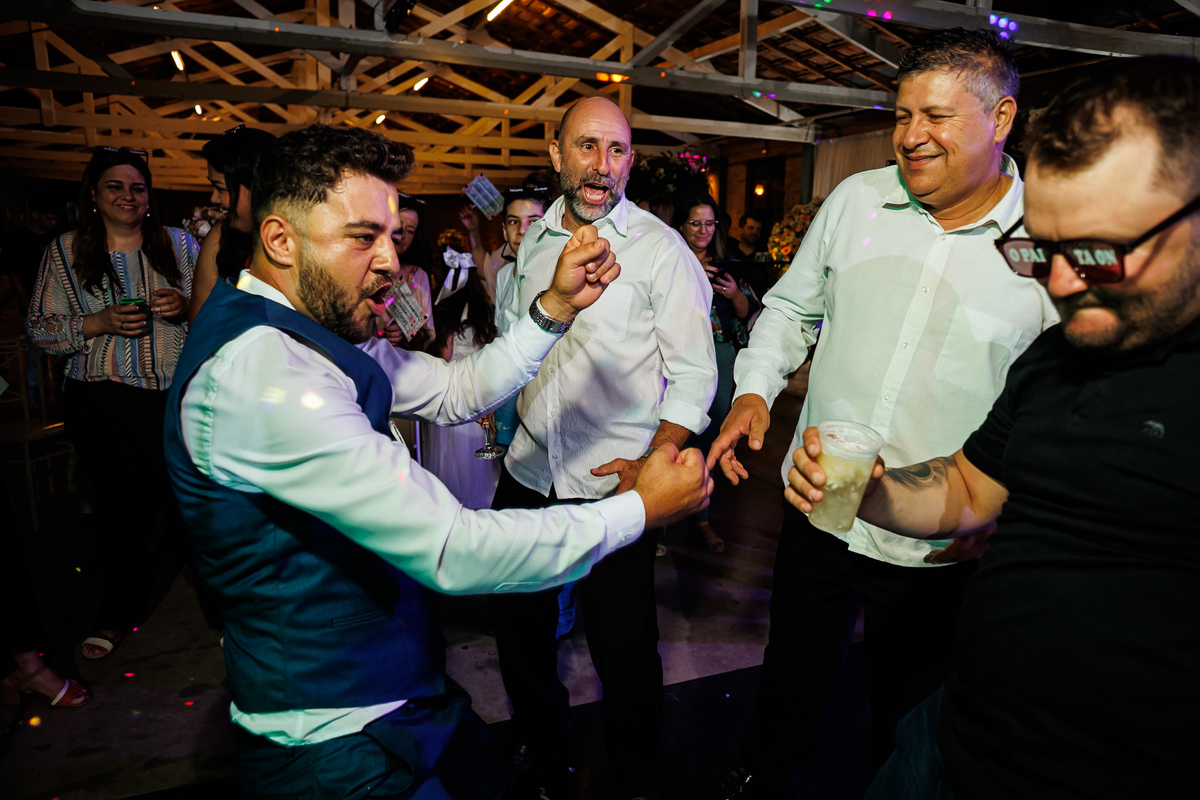 Depois da cerimônia, veio a festa... E que festa! Uma celebração épica, cheia de energia e alegria. Os noivos estavam completamente entregues ao momento, aproveitando cada minuto ao lado de seus amigos e familiares. Os convidados se jogaram na pista e a animação foi do início ao fim!