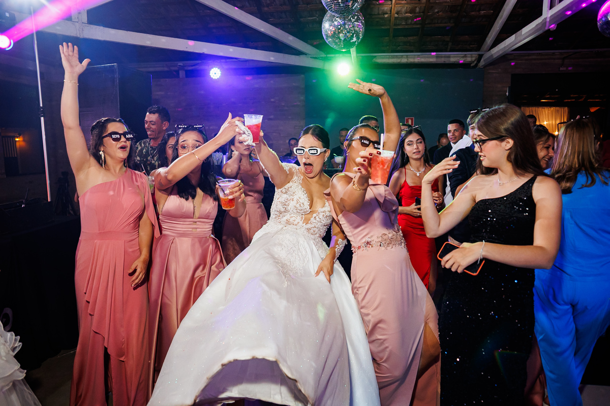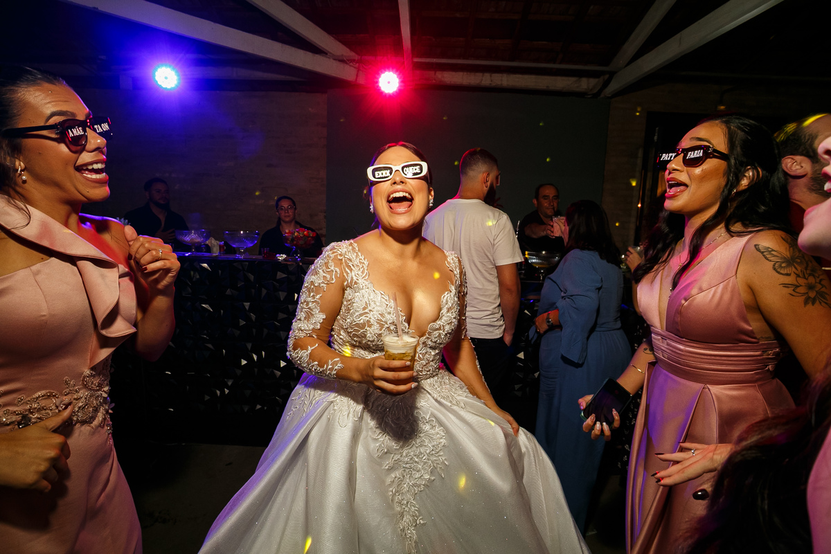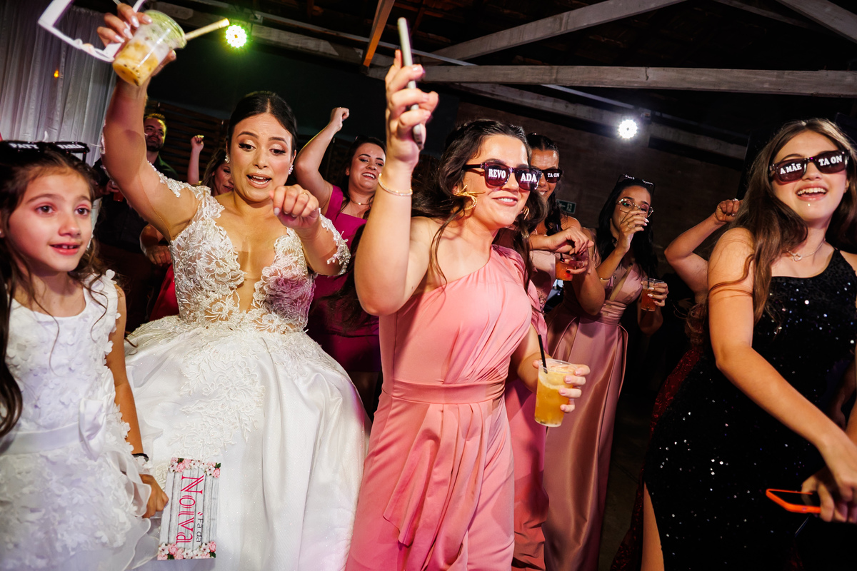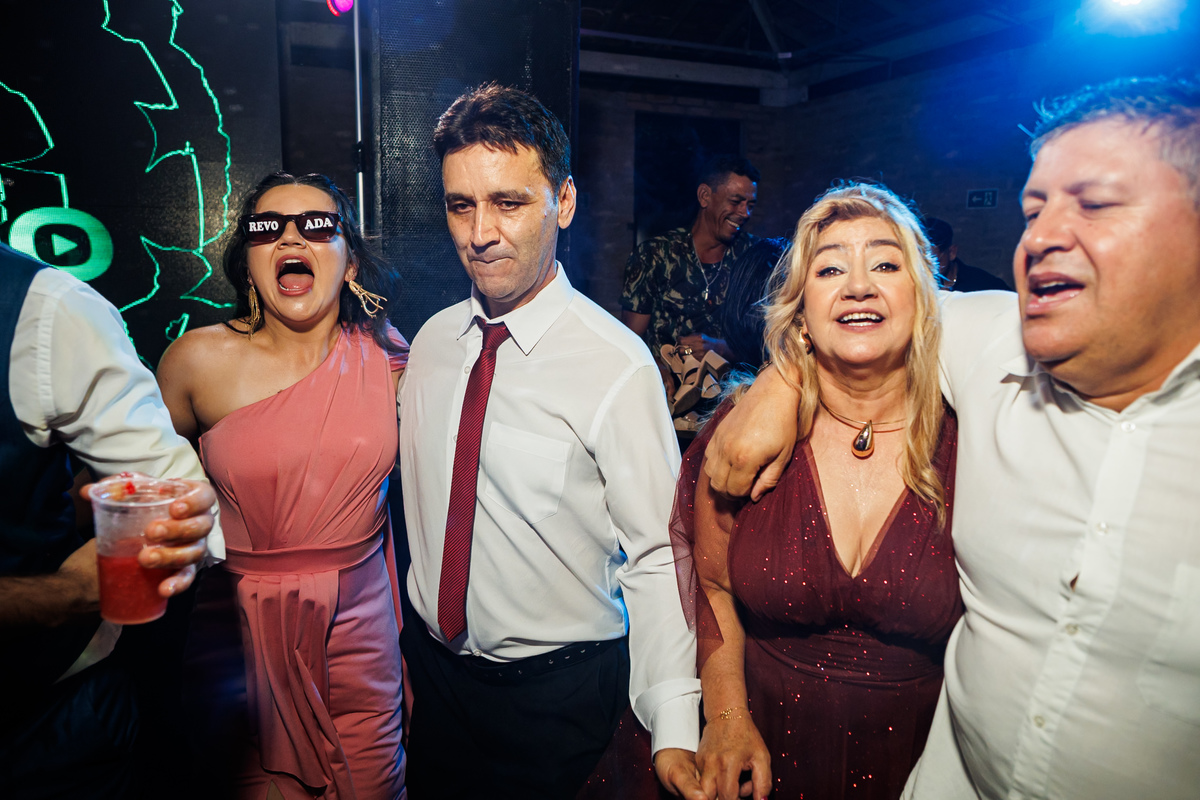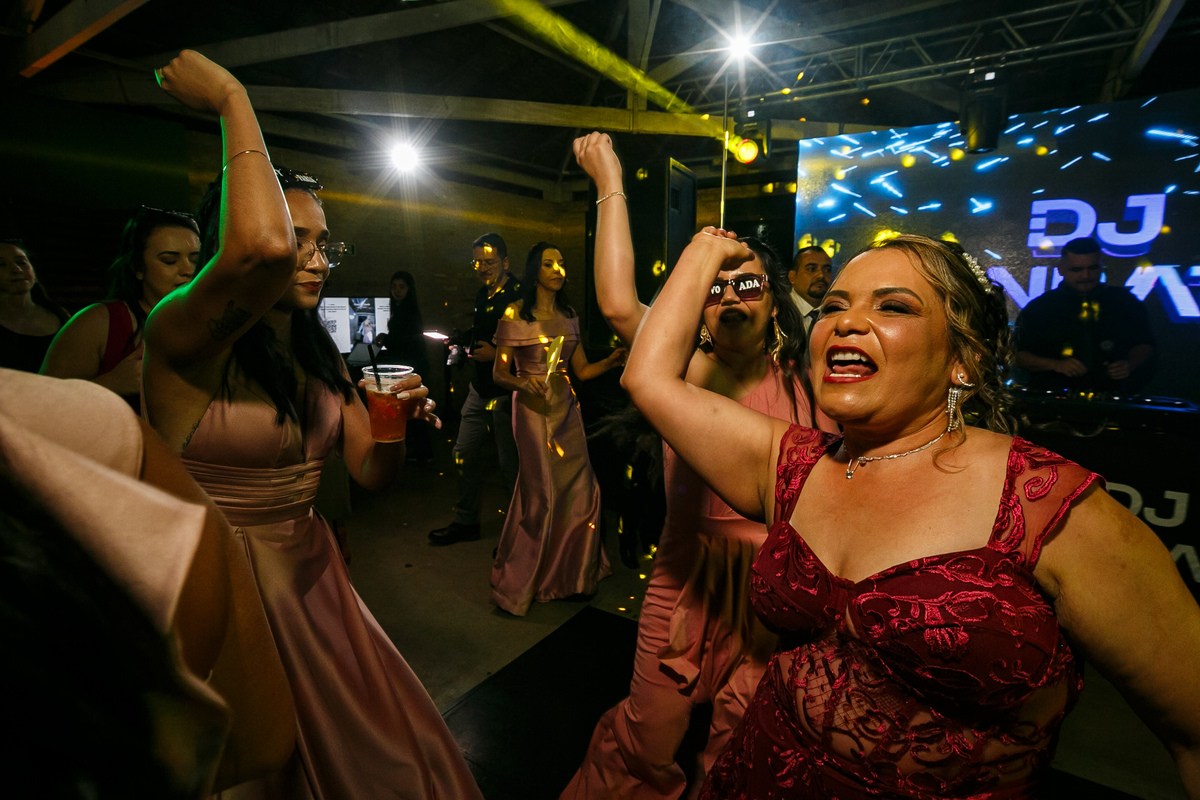Depois da cerimônia, veio a festa... E que festa! Uma celebração épica, cheia de energia e alegria. Os noivos estavam completamente entregues ao momento, aproveitando cada minuto ao lado de seus amigos e familiares. Os convidados se jogaram na pista e a animação foi do início ao fim!