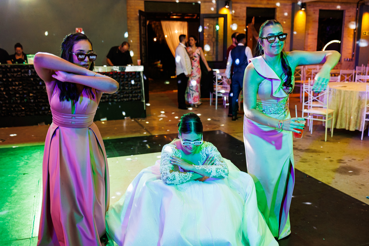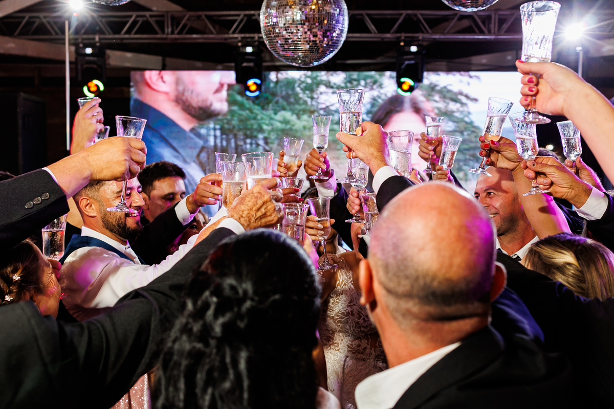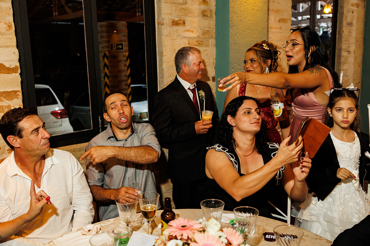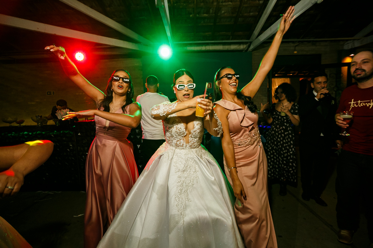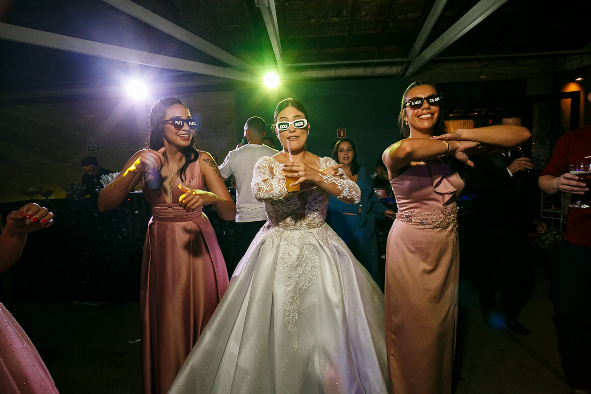 Depois da cerimônia, veio a festa... E que festa! Uma celebração épica, cheia de energia e alegria. Os noivos estavam completamente entregues ao momento, aproveitando cada minuto ao lado de seus amigos e familiares. Os convidados se jogaram na pista e a animação foi do início ao fim!