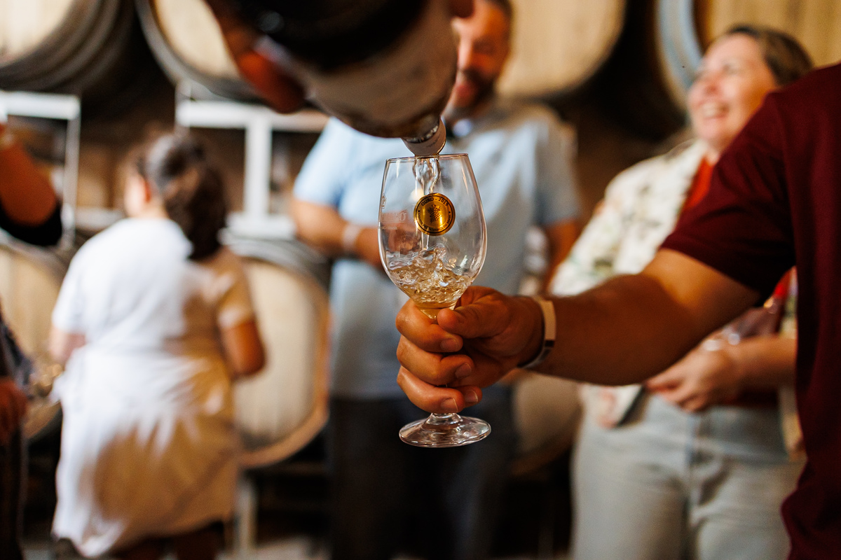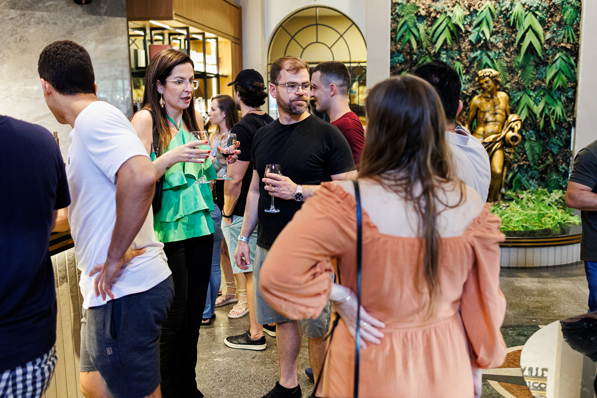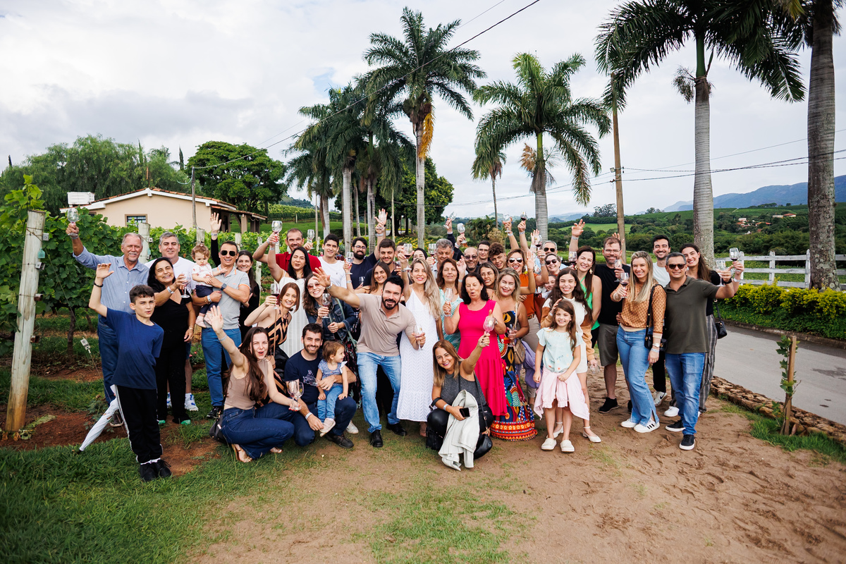 A ideia foi proporcionar um momento de conexão, descontração e boas-vindas para os convidados que vieram de longe — muitos deles sem se conhecer ainda. Mais que um passeio, foi uma experiência sensorial e afetiva, onde todos puderam conhecer a história da vinícola, aprender sobre o processo de produção dos vinhos, degustar rótulos incríveis e aproveitar queijos e sabores típicos da região.
