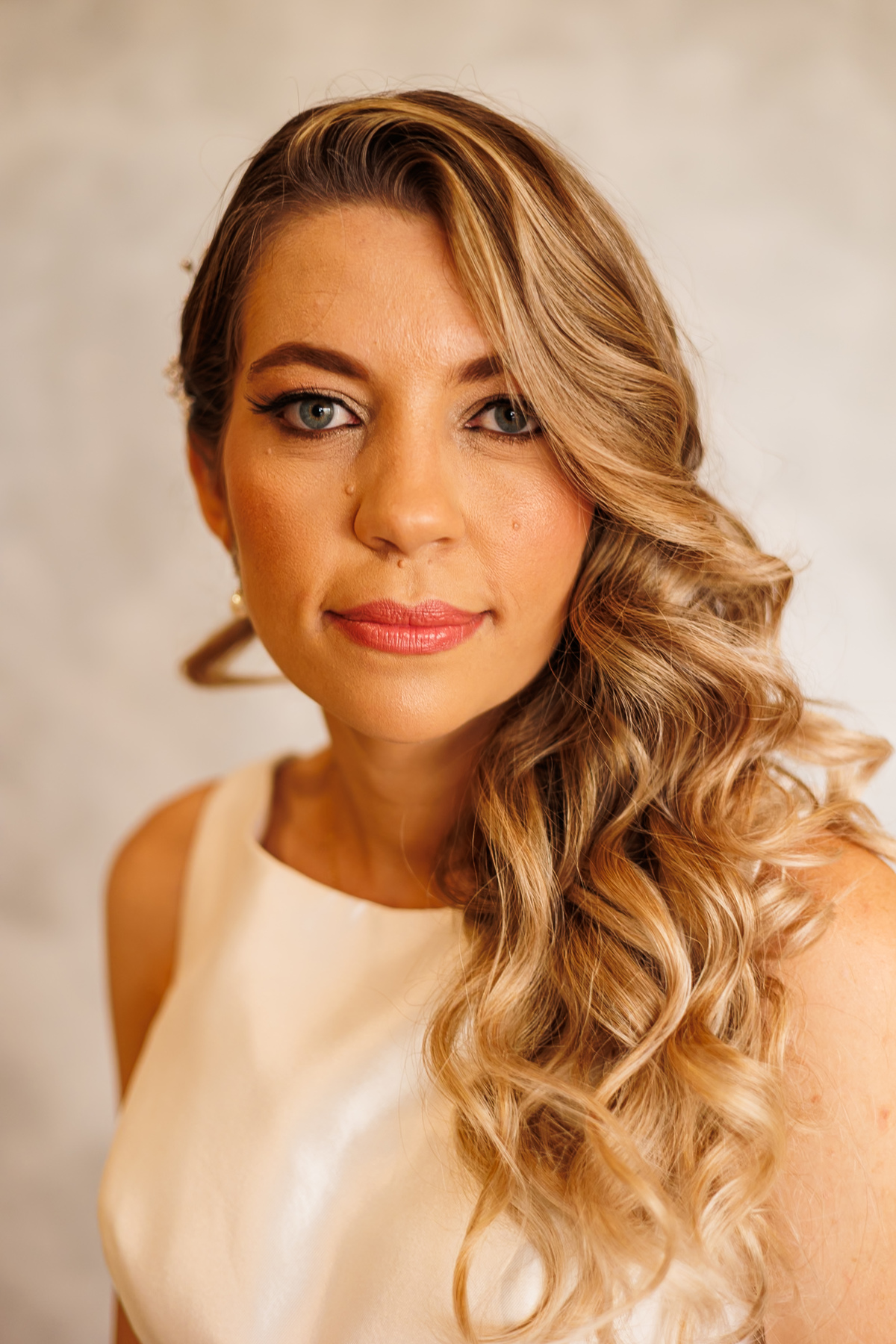 A previsão era de chuva — e as nuvens carregadas pareciam confirmar. Tem até uma foto da Gabriela olhando pela janela, no making of, de olho no céu... Mas nada, absolutamente nada, tirou o brilho desse dia. O making dela foi pura alegria, alto astral e emoção. Aquele clima leve e vibrante que dá gosto de fotografar.