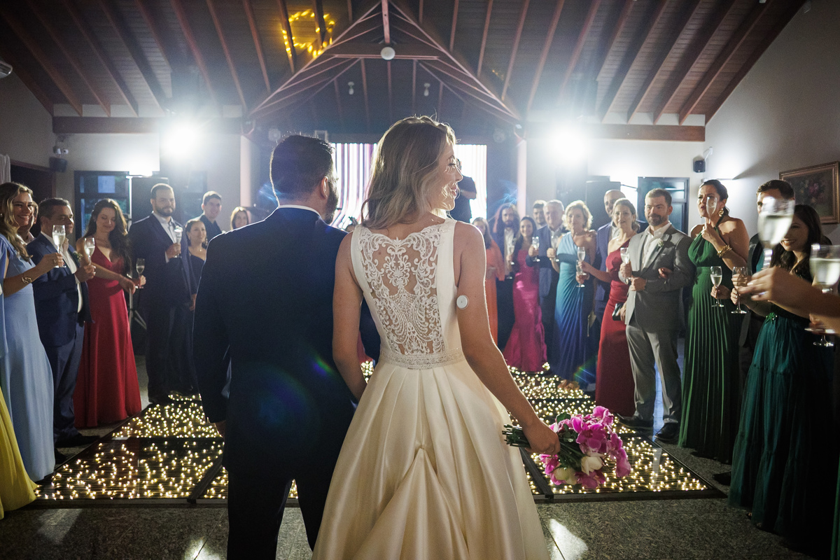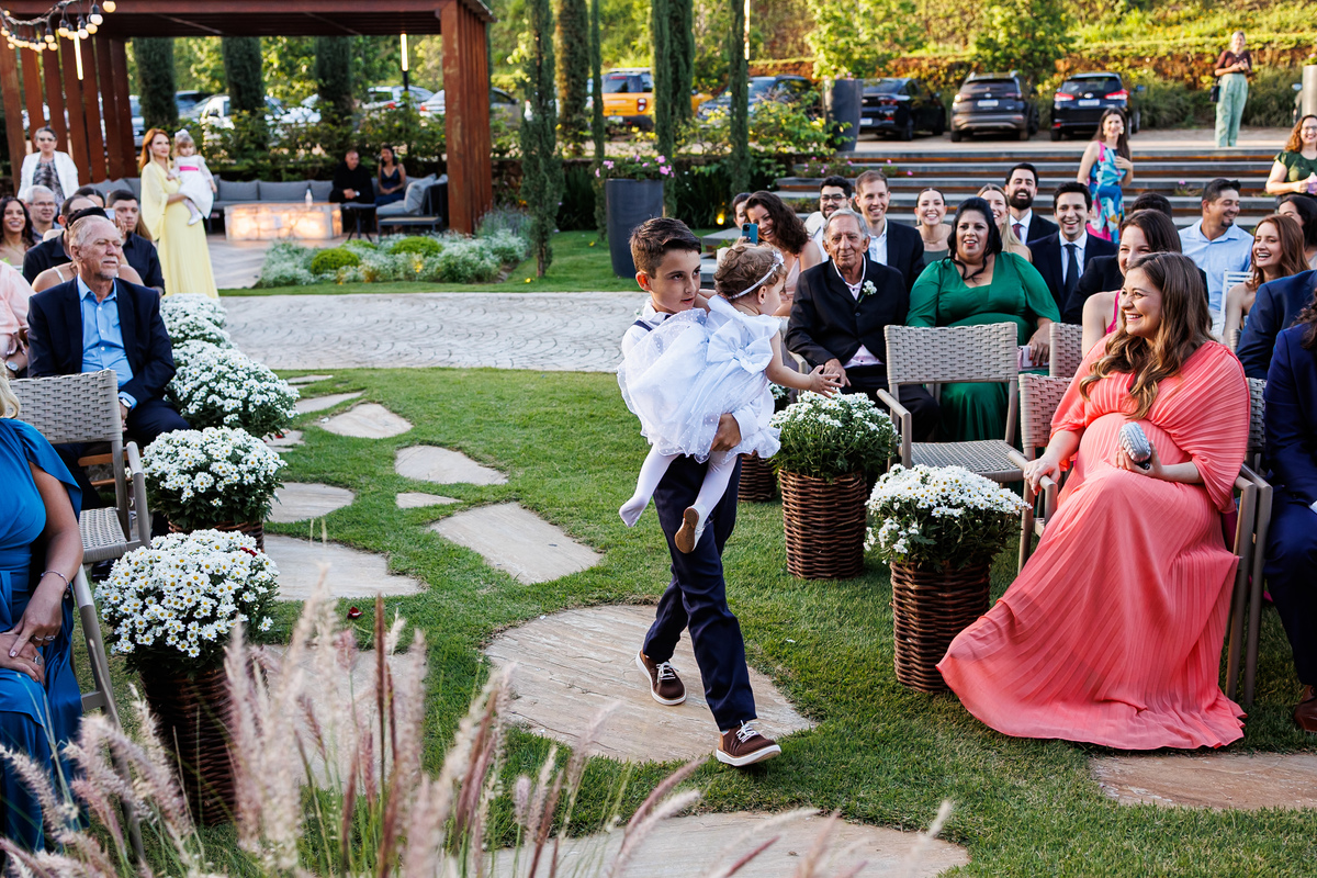 A cerimônia foi conduzida por um grande amigo do casal, o Pedro, que conhece bem a história deles. Resultado? Um momento cheio de verdade, emoção e conexão.
