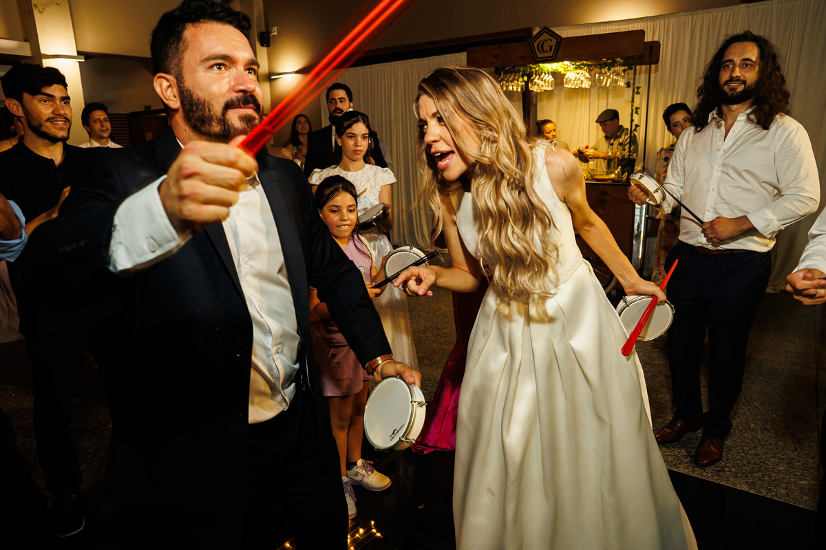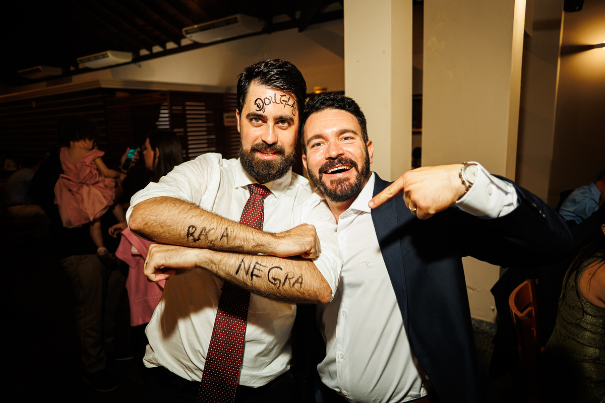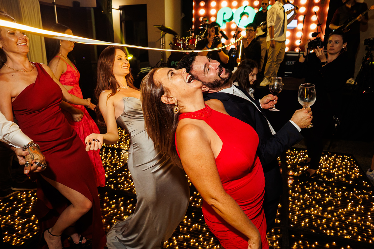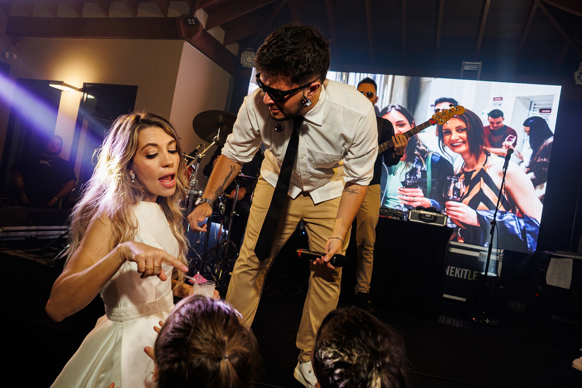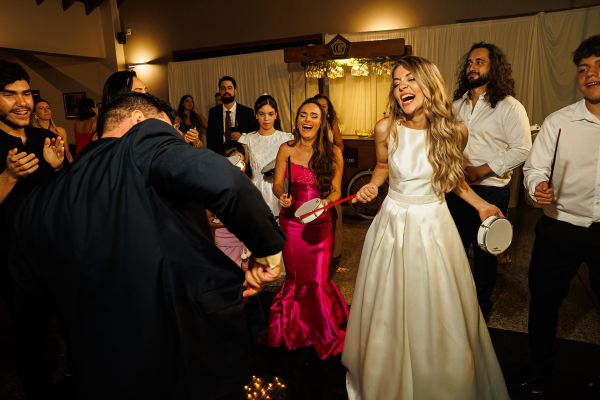 E a festa? Ah, a festa foi um capítulo à parte! Animada do começo ao fim, com a banda PopMix colocando todo mundo pra dançar. Teve disputa de dança com a vó da noiva como jurada (sim, você leu certo 😂), amigos com “DOUGLAS” escrito na testa, amigas com “GABI”, muita risada, muita música, muita vida!