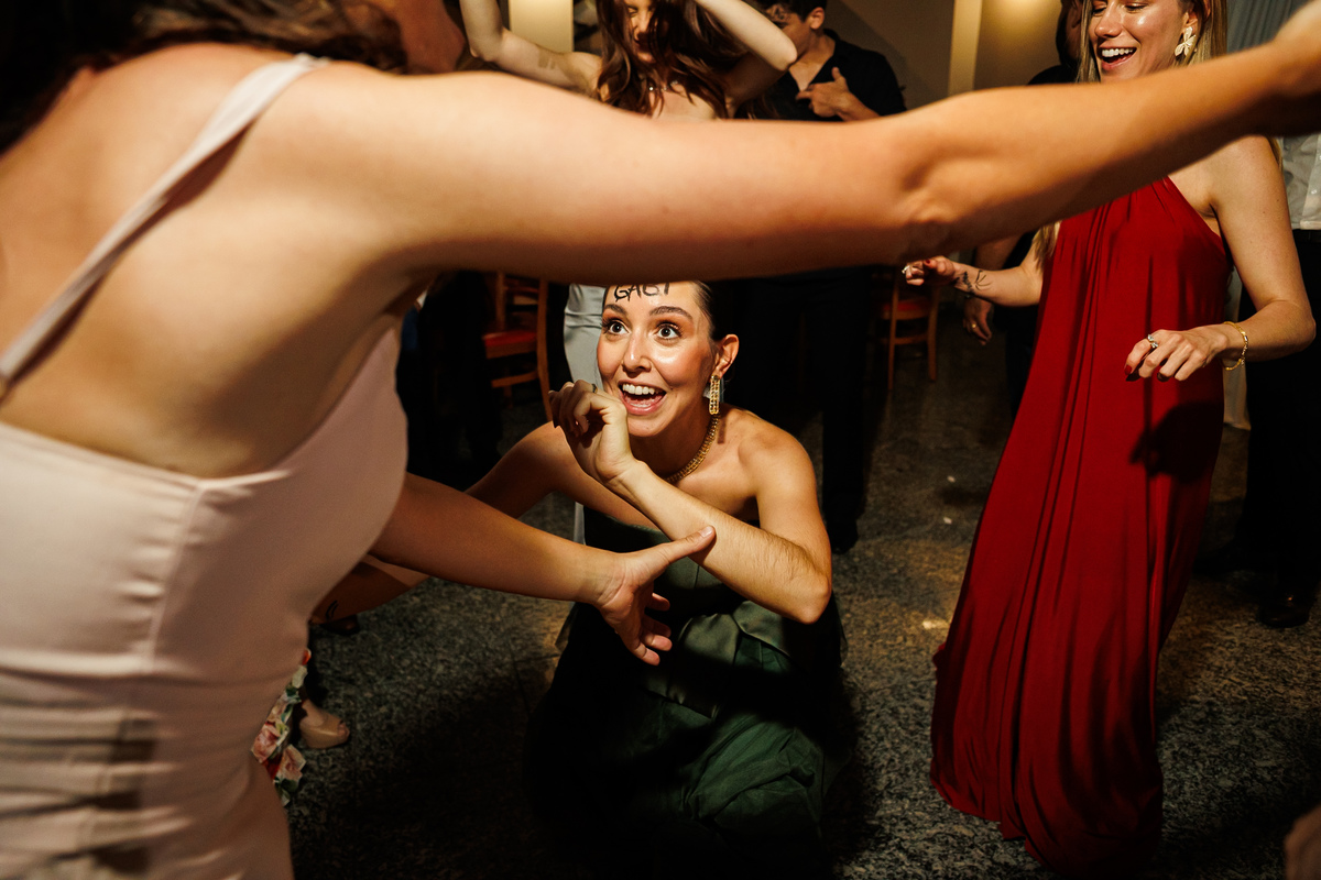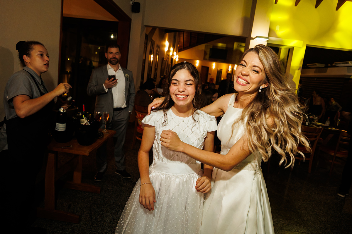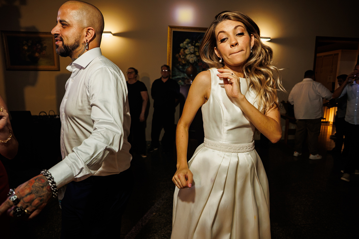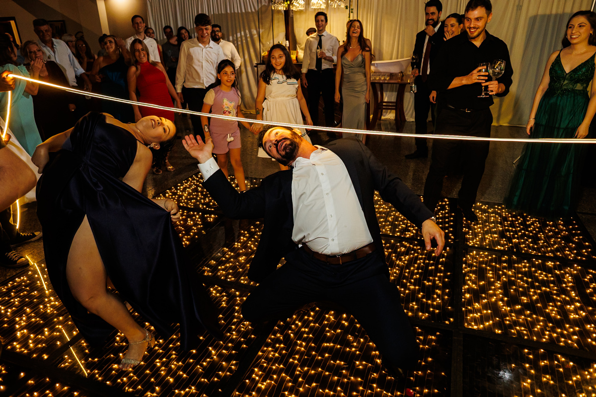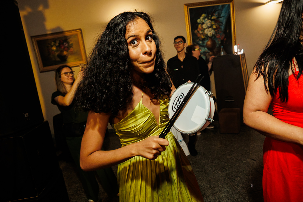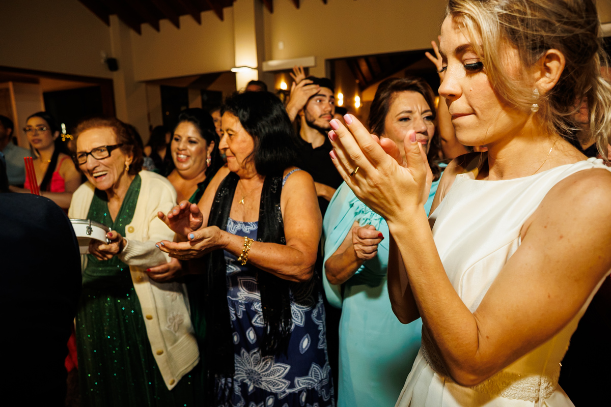 E a festa? Ah, a festa foi um capítulo à parte! Animada do começo ao fim, com a banda PopMix colocando todo mundo pra dançar. Teve disputa de dança com a vó da noiva como jurada (sim, você leu certo 😂), amigos com “DOUGLAS” escrito na testa, amigas com “GABI”, muita risada, muita música, muita vida!
