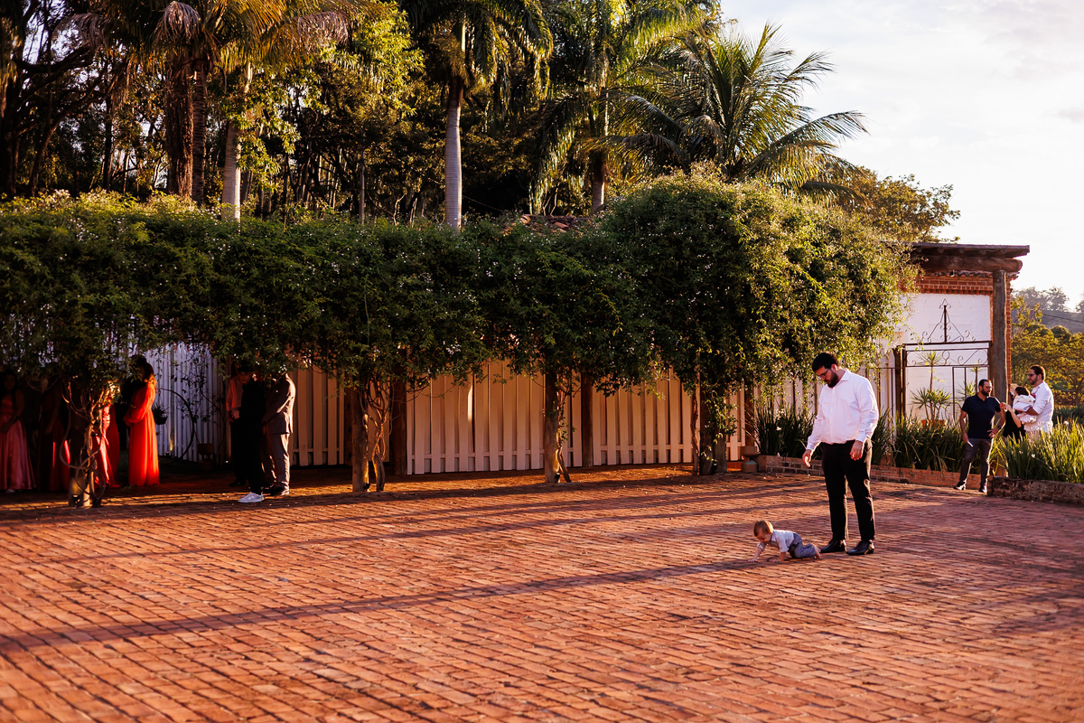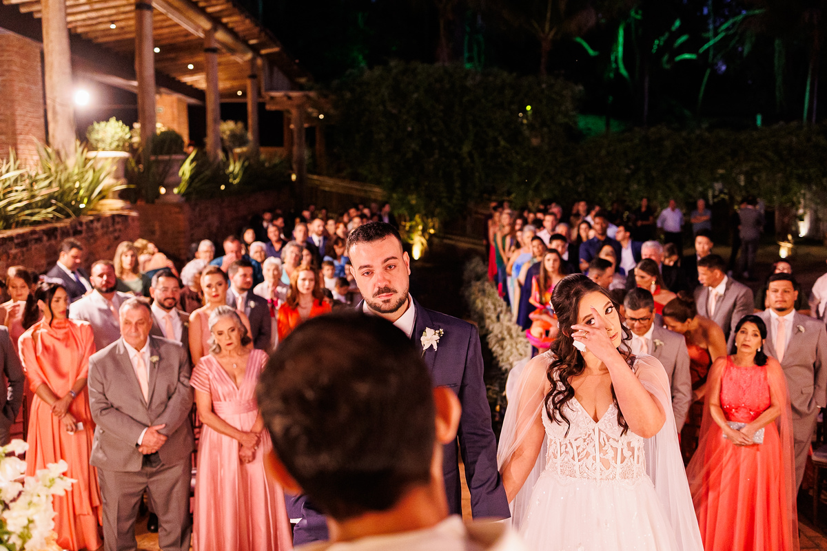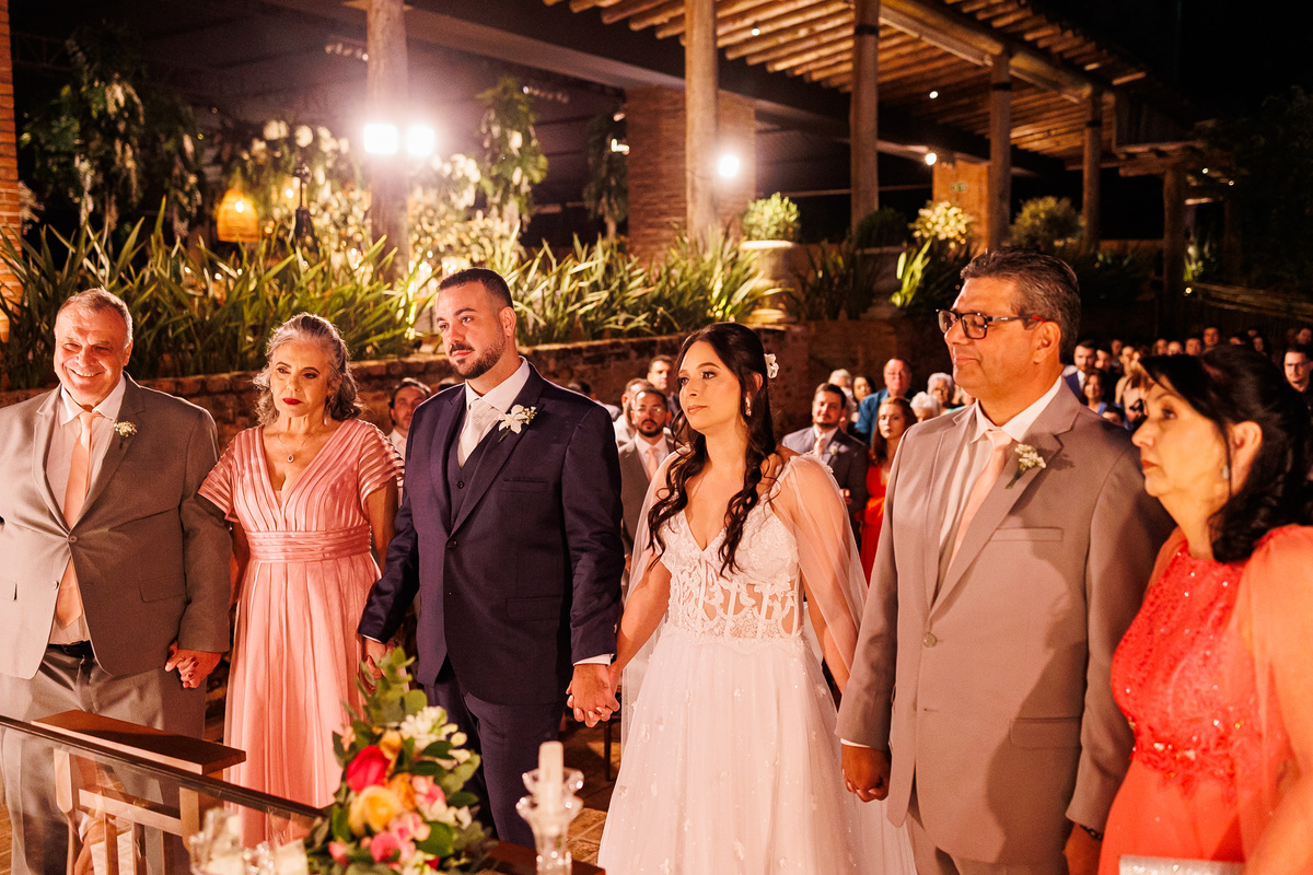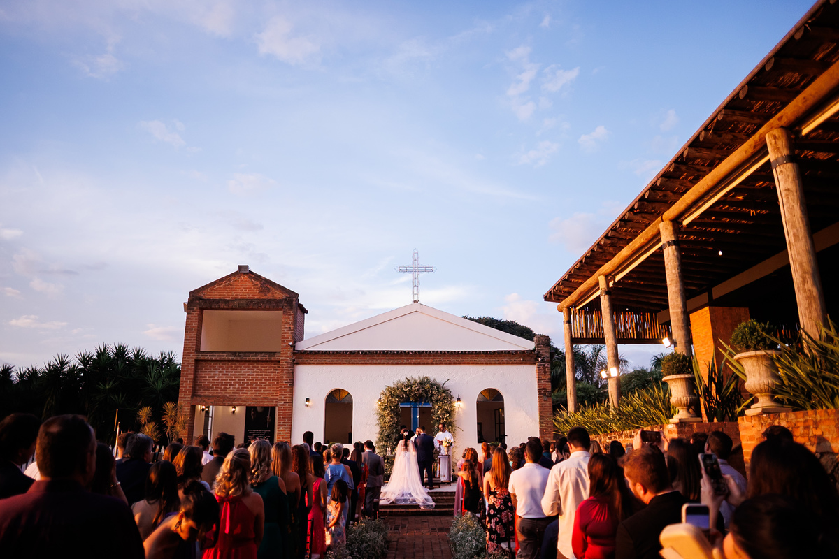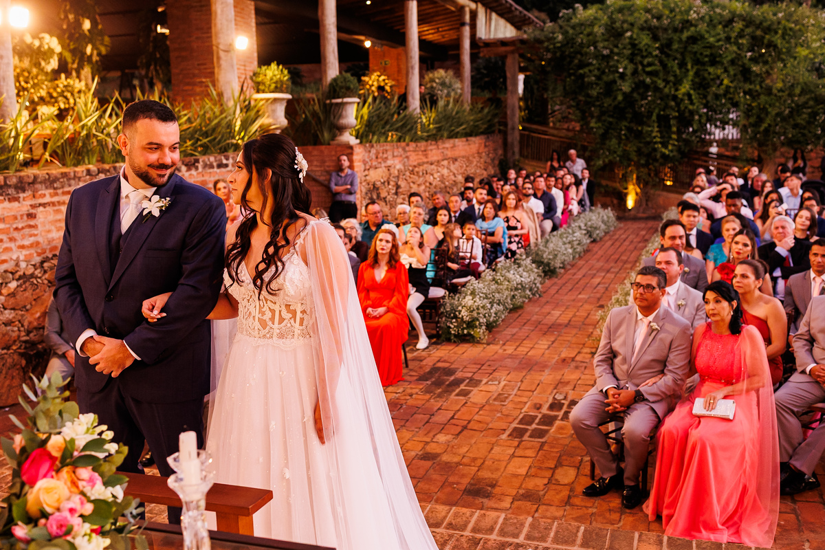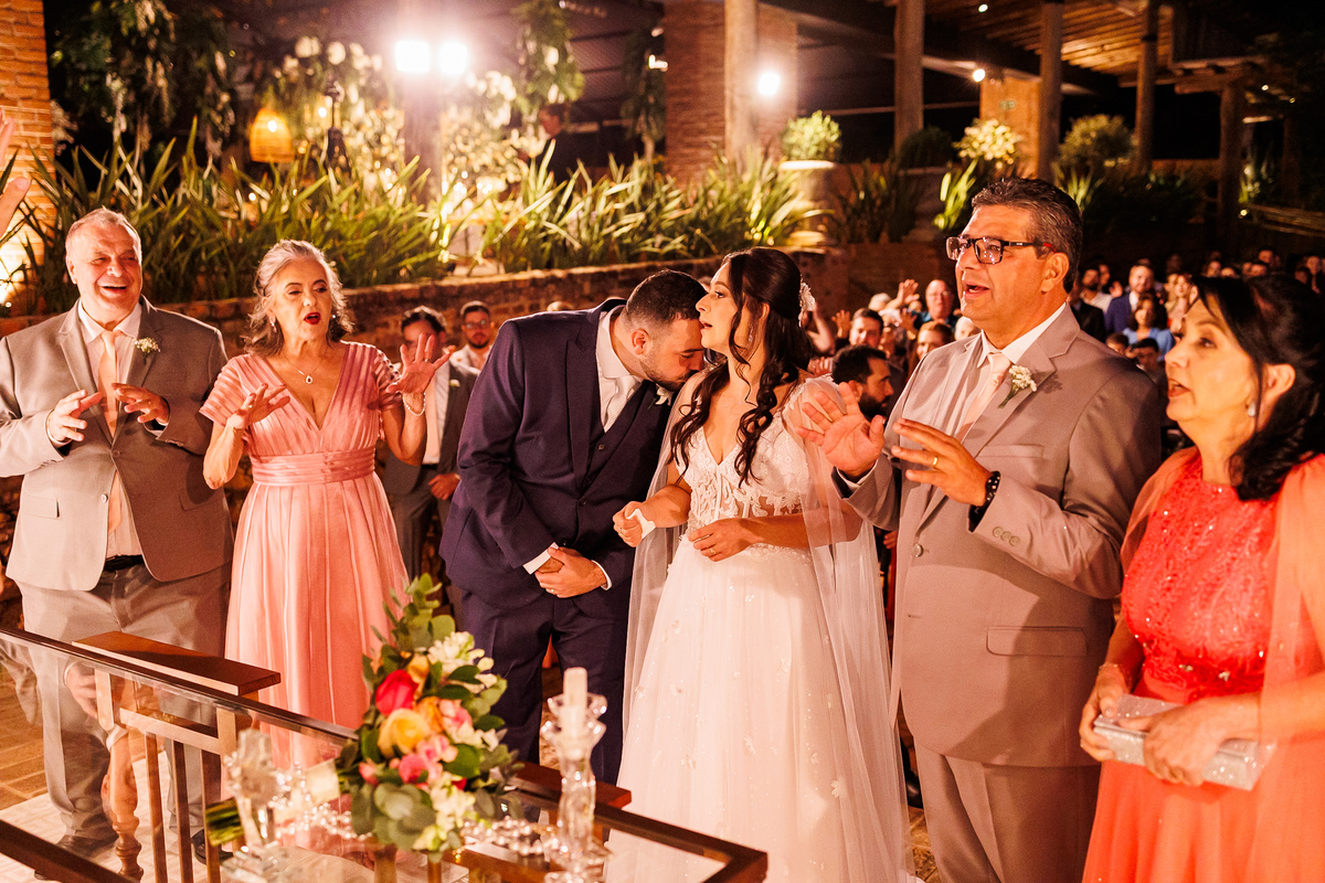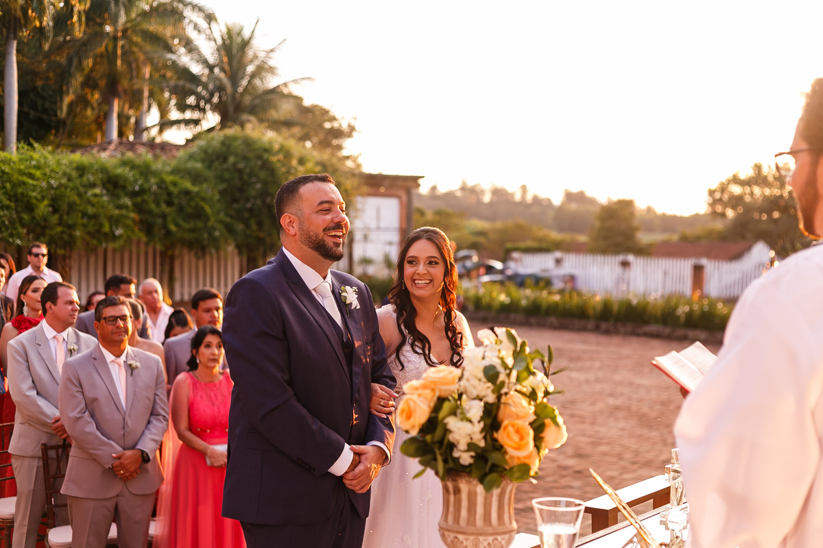 A cerimônia na Fazenda Casarão São Bento foi emocionante do começo ao fim. Não teve quem não se arrepiou. As palavras, os olhares, as mãos que se encontravam o tempo todo. E como se o dia tivesse combinado com eles, o pôr do sol apareceu no momento certo. O céu ganhou cores quentes, a luz ficou dourada e parecia que o tempo desacelerou só para que aquele instante fosse vivido com calma. As fotos desse momento carregam mais do que beleza. Carregam sentimento.