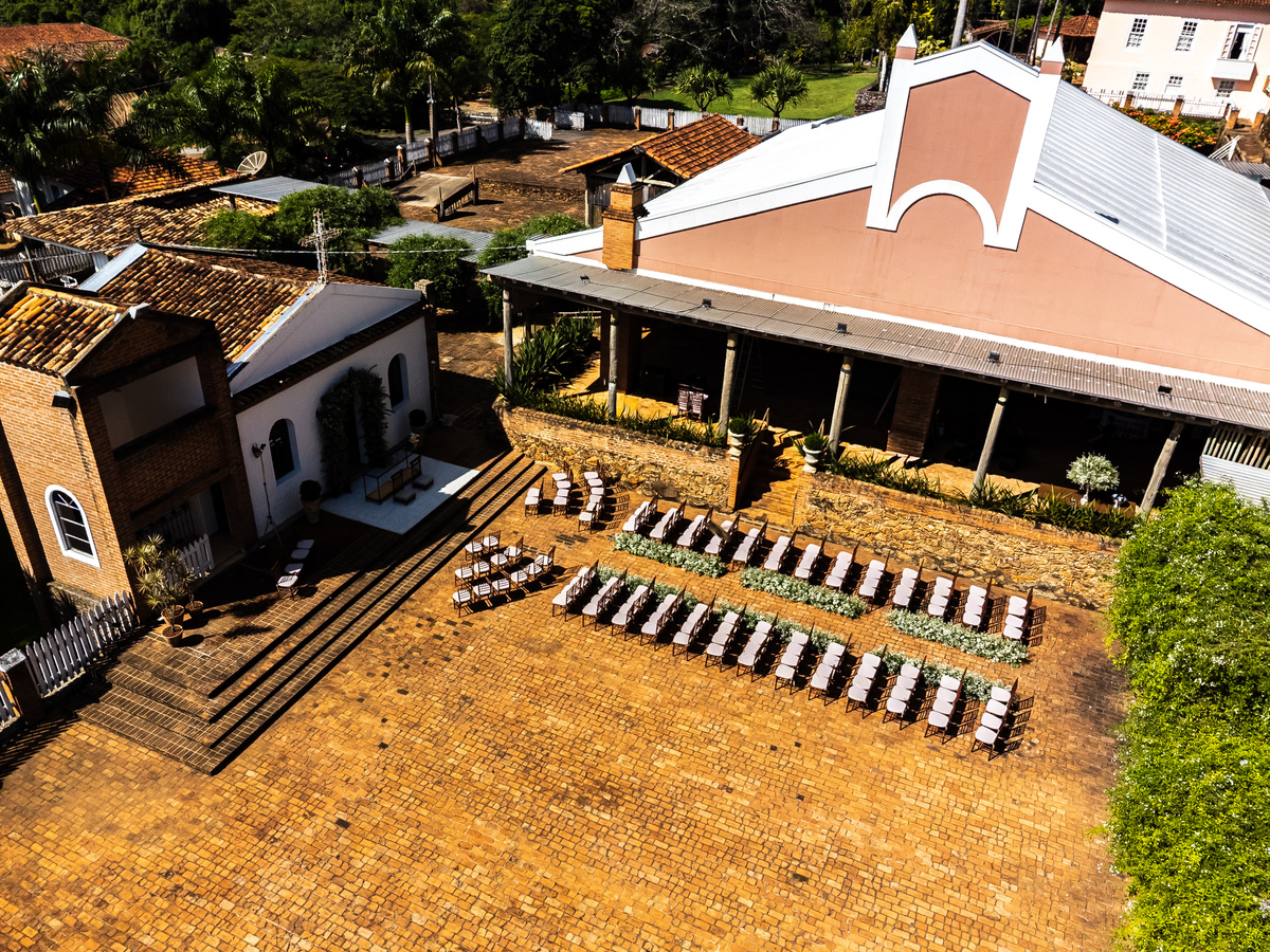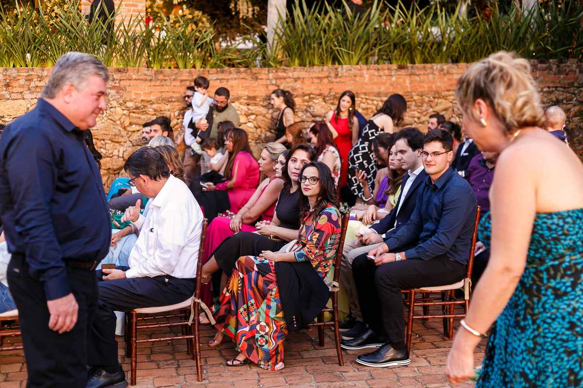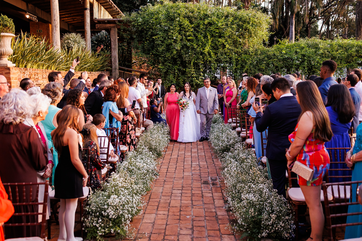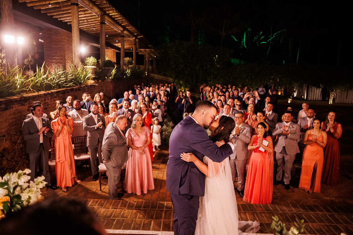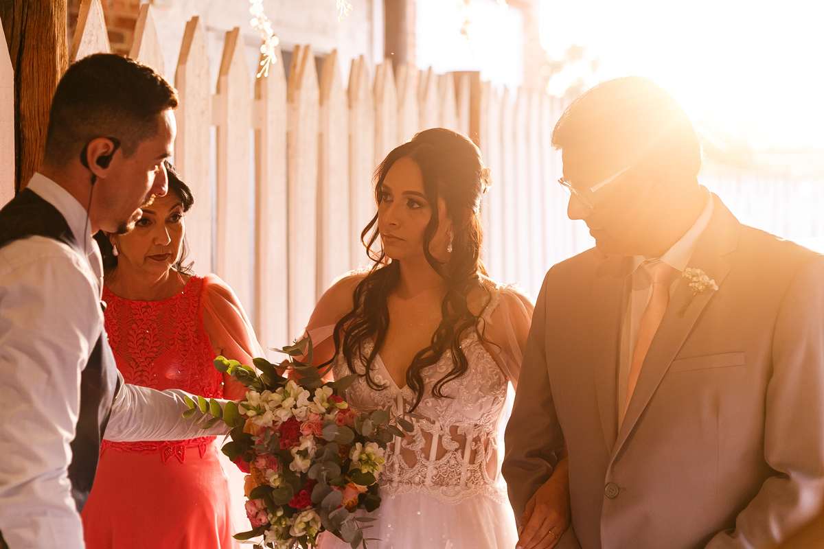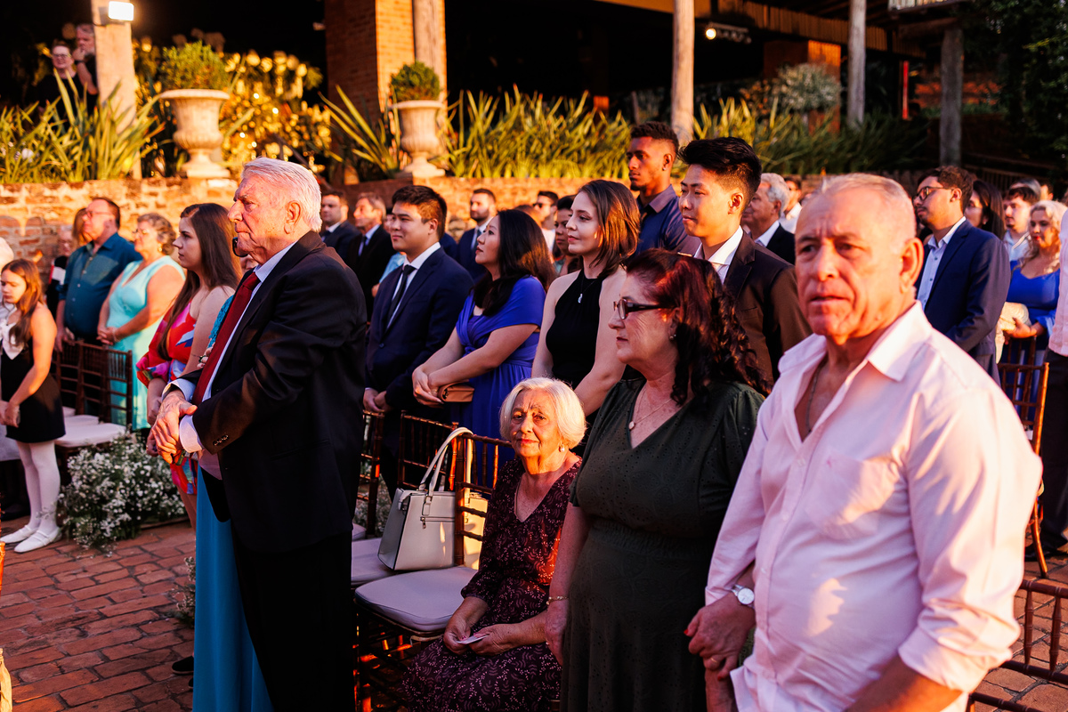 A cerimônia na Fazenda Casarão São Bento foi emocionante do começo ao fim. Não teve quem não se arrepiou. As palavras, os olhares, as mãos que se encontravam o tempo todo. E como se o dia tivesse combinado com eles, o pôr do sol apareceu no momento certo. O céu ganhou cores quentes, a luz ficou dourada e parecia que o tempo desacelerou só para que aquele instante fosse vivido com calma. As fotos desse momento carregam mais do que beleza. Carregam sentimento.