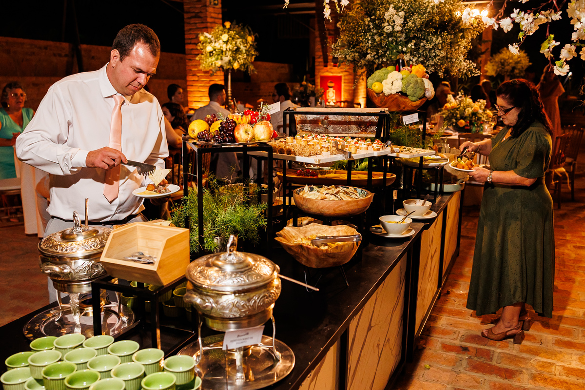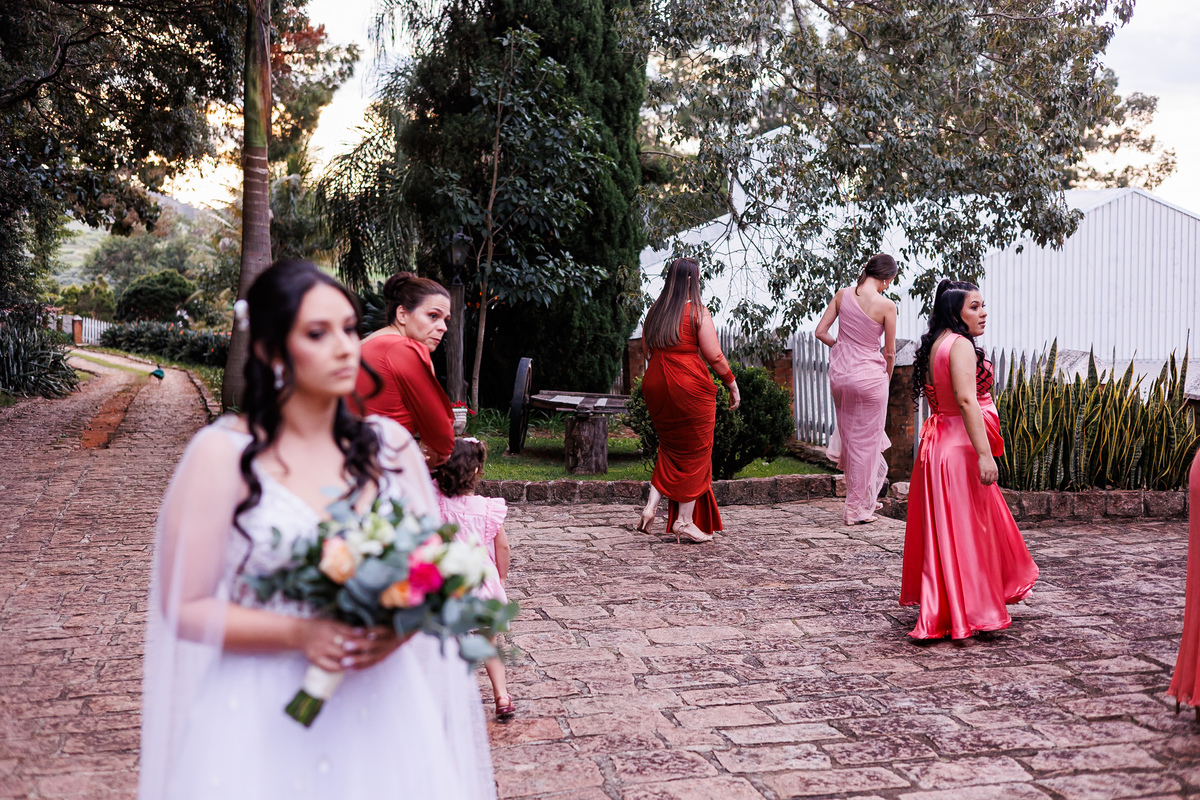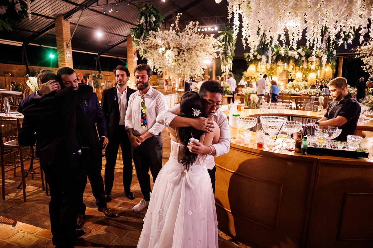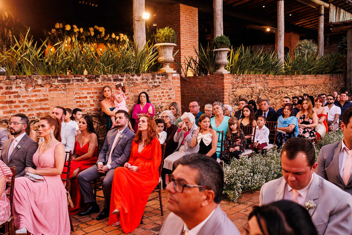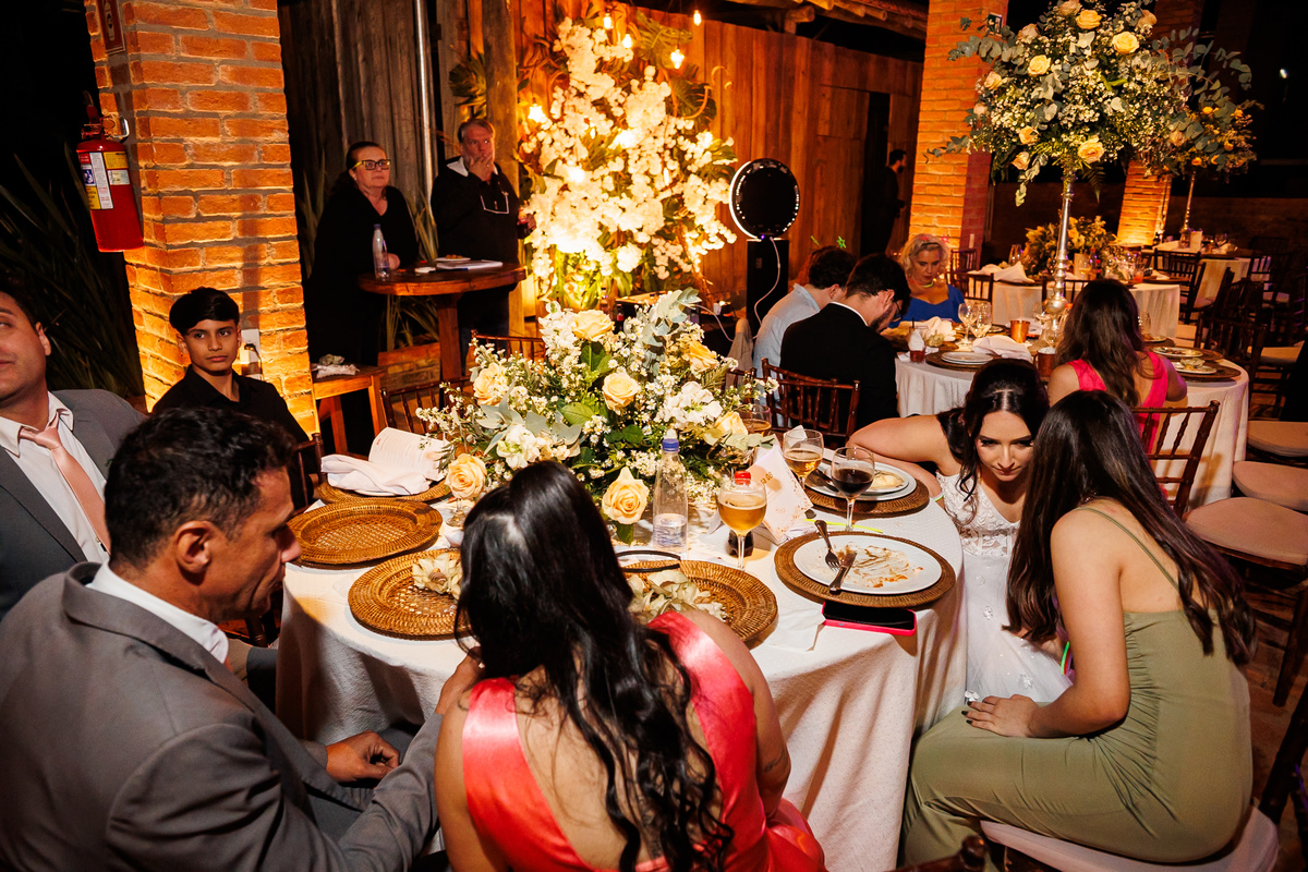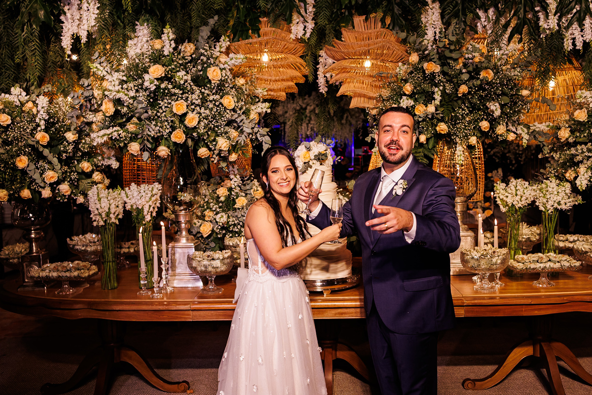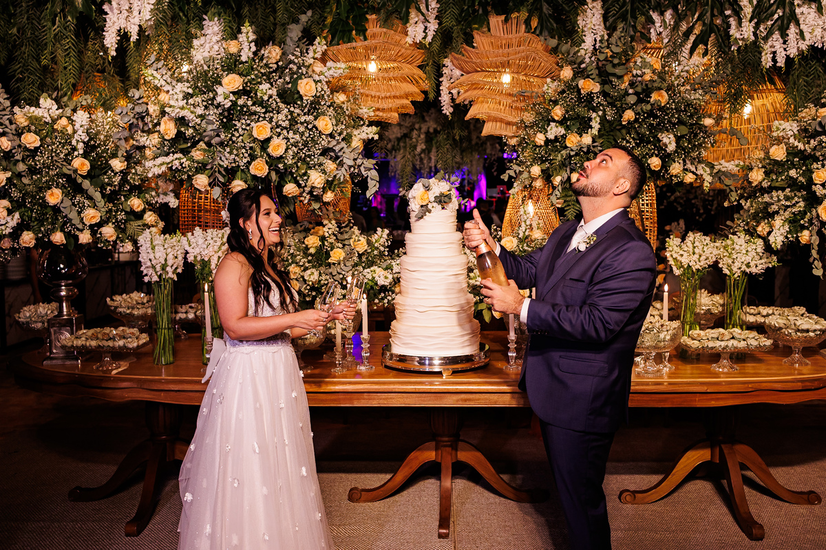 A cerimônia na Fazenda Casarão São Bento foi emocionante do começo ao fim. Não teve quem não se arrepiou. As palavras, os olhares, as mãos que se encontravam o tempo todo. E como se o dia tivesse combinado com eles, o pôr do sol apareceu no momento certo. O céu ganhou cores quentes, a luz ficou dourada e parecia que o tempo desacelerou só para que aquele instante fosse vivido com calma. As fotos desse momento carregam mais do que beleza. Carregam sentimento.