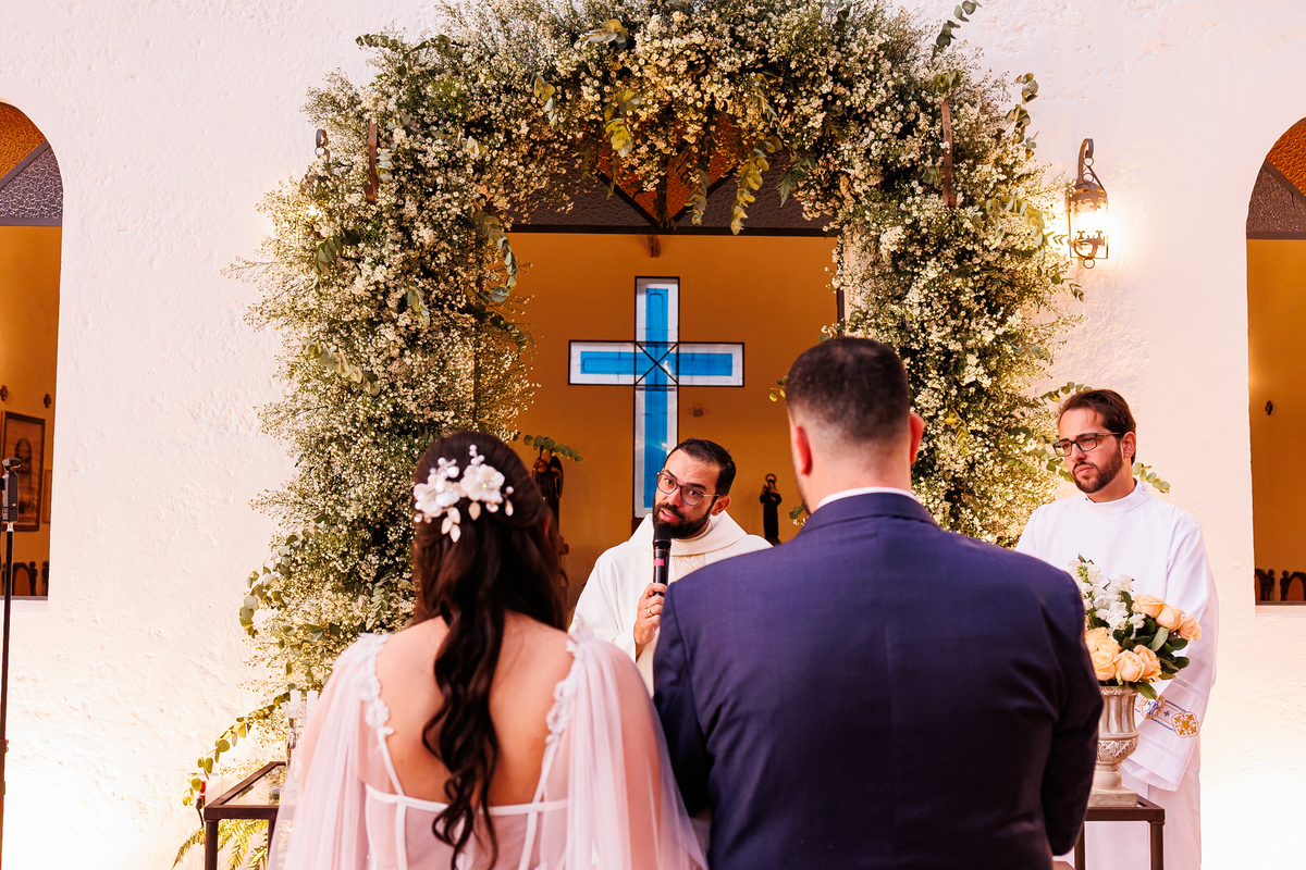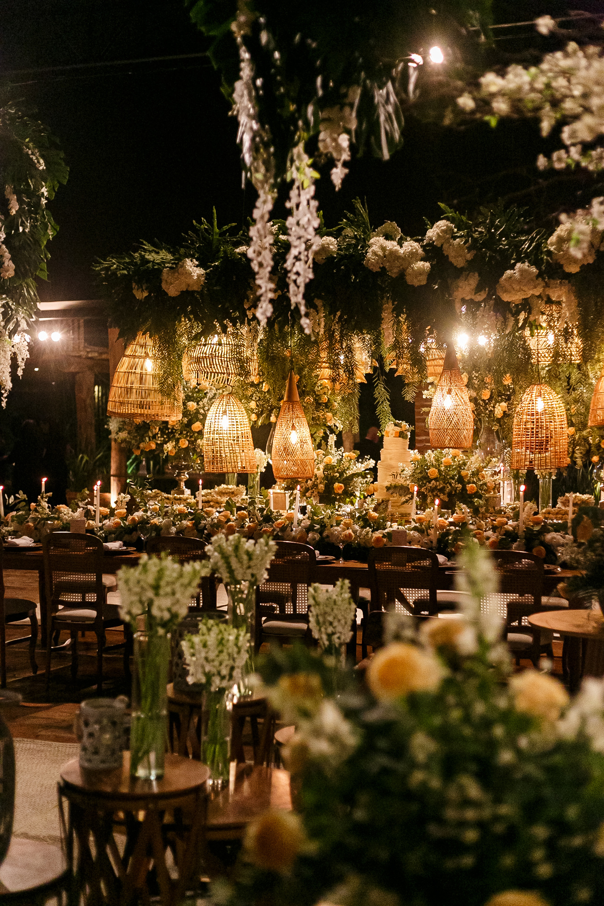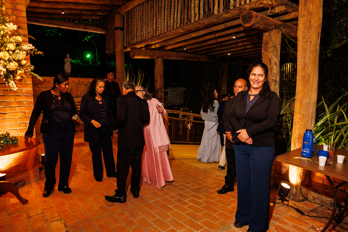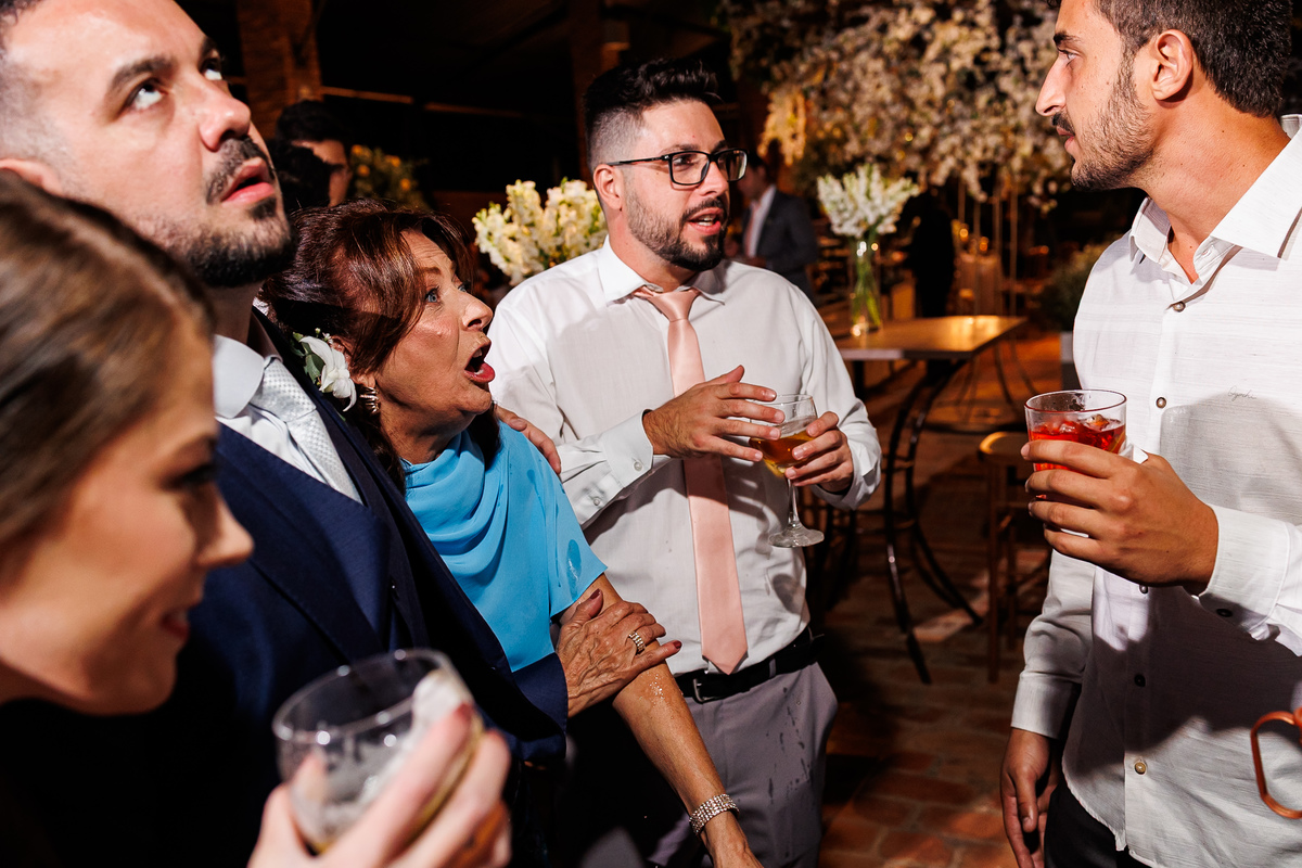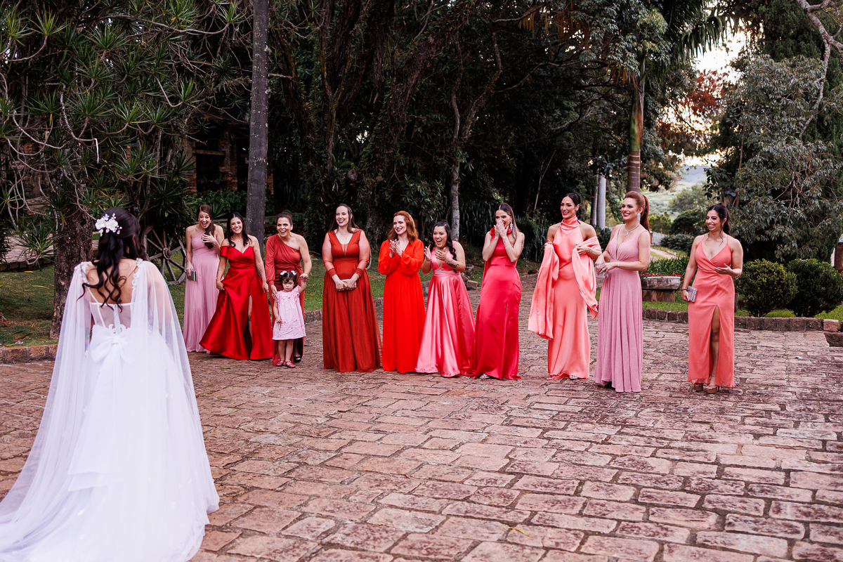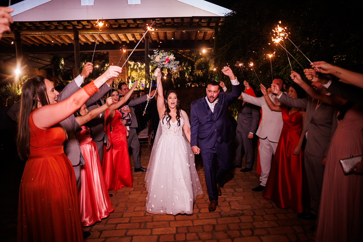 A cerimônia na Fazenda Casarão São Bento foi emocionante do começo ao fim. Não teve quem não se arrepiou. As palavras, os olhares, as mãos que se encontravam o tempo todo. E como se o dia tivesse combinado com eles, o pôr do sol apareceu no momento certo. O céu ganhou cores quentes, a luz ficou dourada e parecia que o tempo desacelerou só para que aquele instante fosse vivido com calma. As fotos desse momento carregam mais do que beleza. Carregam sentimento.
