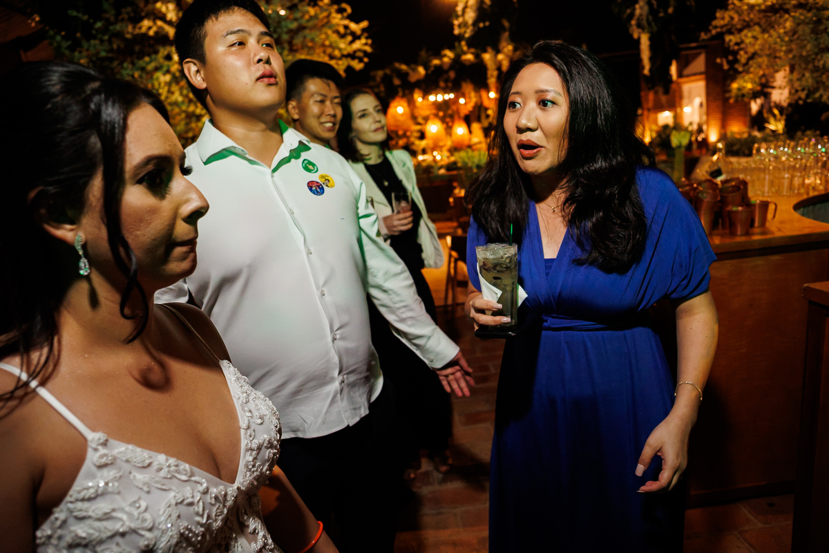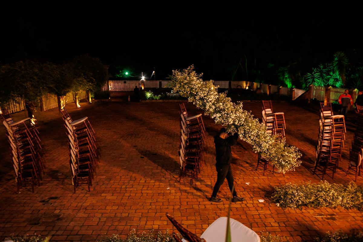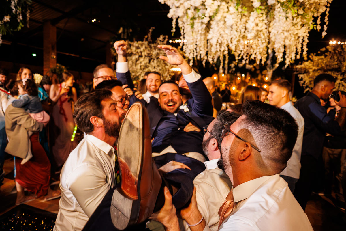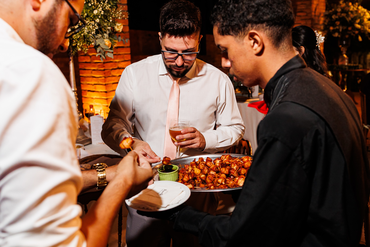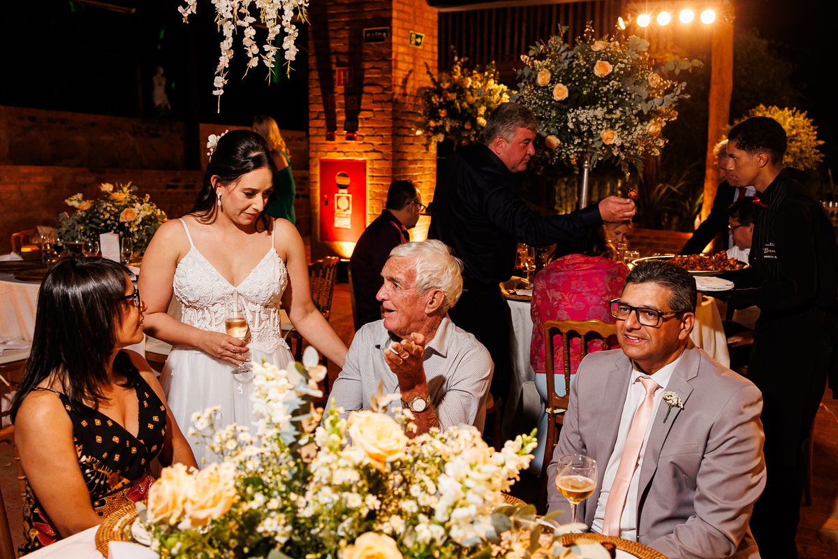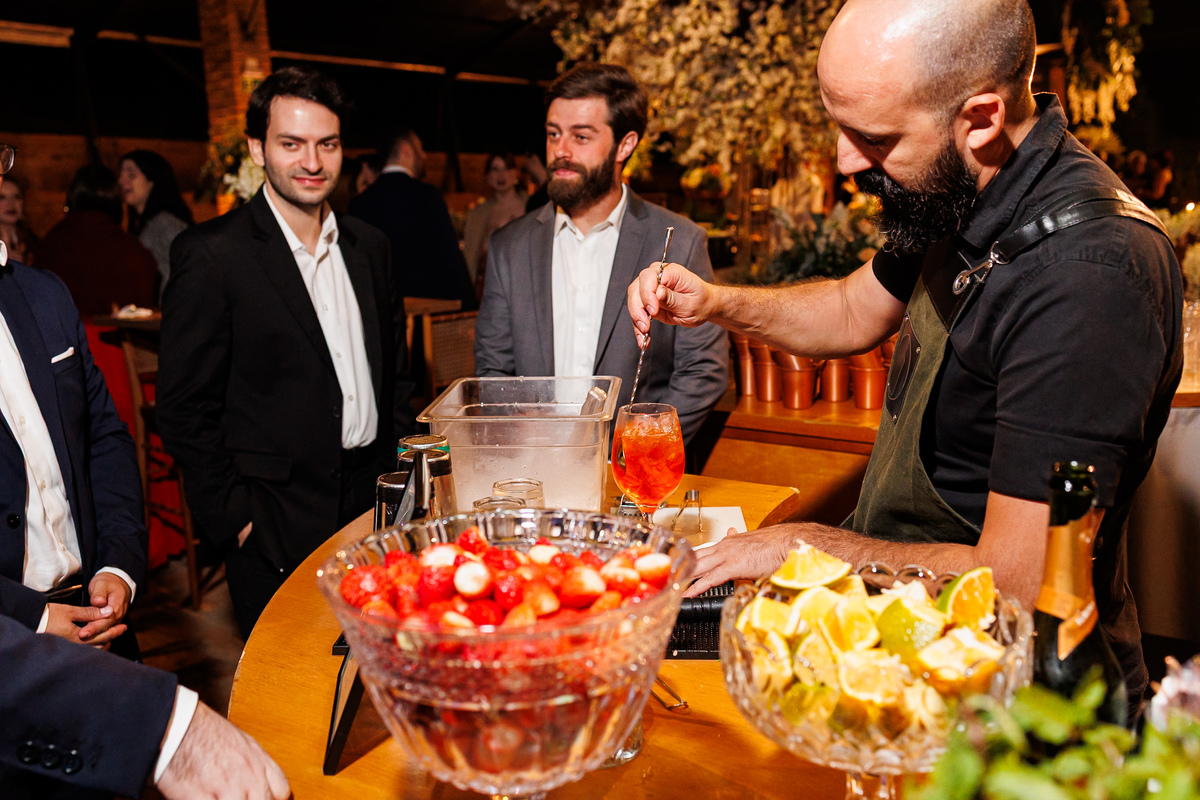 A cerimônia na Fazenda Casarão São Bento foi emocionante do começo ao fim. Não teve quem não se arrepiou. As palavras, os olhares, as mãos que se encontravam o tempo todo. E como se o dia tivesse combinado com eles, o pôr do sol apareceu no momento certo. O céu ganhou cores quentes, a luz ficou dourada e parecia que o tempo desacelerou só para que aquele instante fosse vivido com calma. As fotos desse momento carregam mais do que beleza. Carregam sentimento.