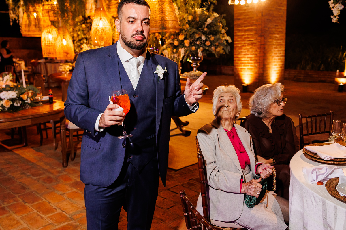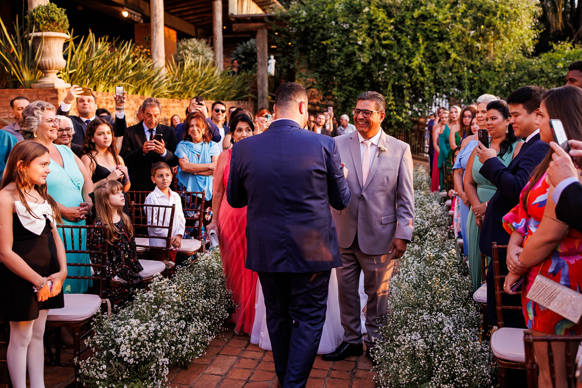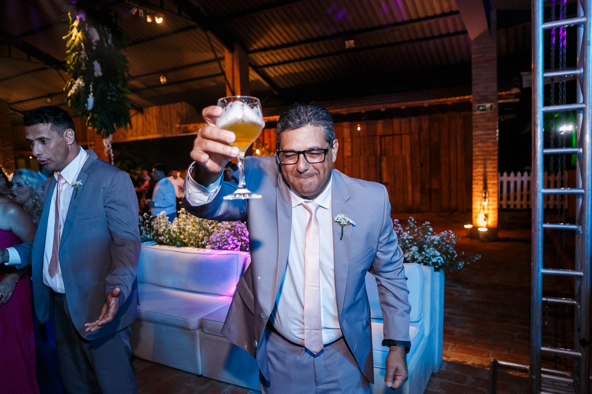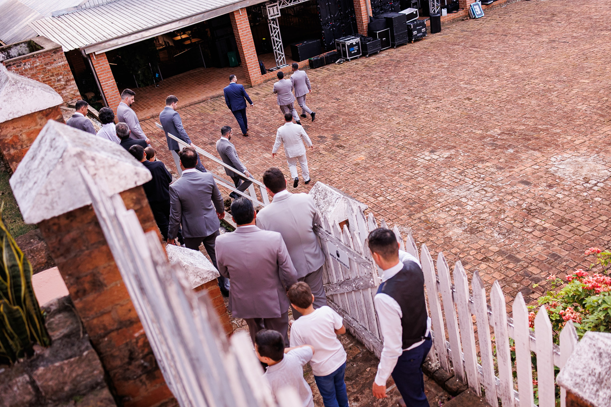 Enquanto isso, o Gabriel se preparava cercado pelo pai e pelos padrinhos. Em meio à conversa e à expectativa, teve um momento que parou tudo. O pai olhando para o filho. Um olhar silencioso, carregado de orgulho, amor e emoção. Daqueles que dizem tudo sem precisar de uma palavra. Uma cena simples, mas profunda, que fica pra sempre.