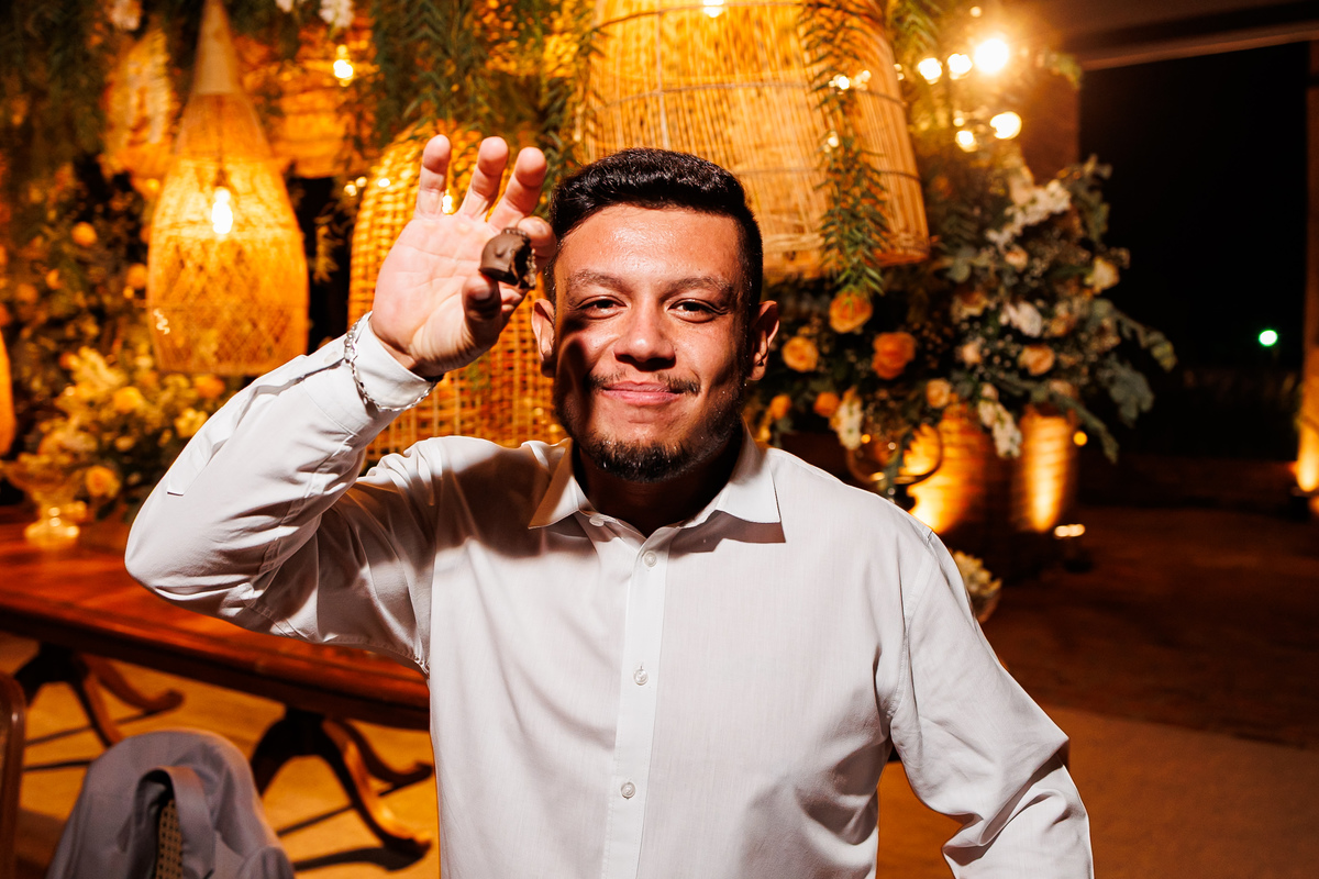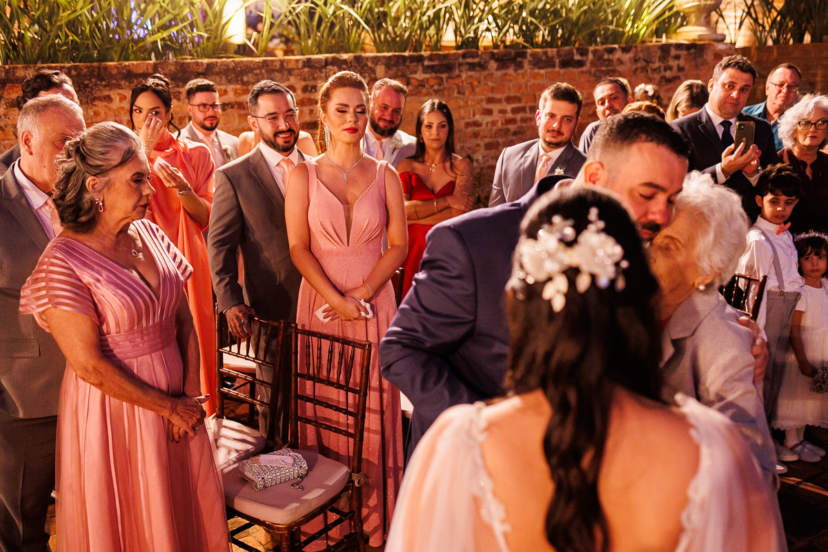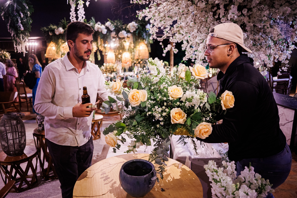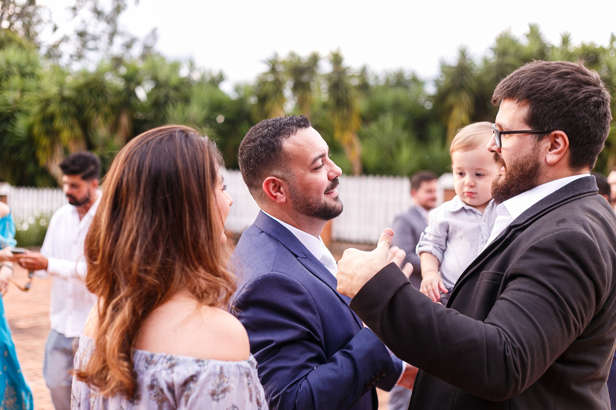 Enquanto isso, o Gabriel se preparava cercado pelo pai e pelos padrinhos. Em meio à conversa e à expectativa, teve um momento que parou tudo. O pai olhando para o filho. Um olhar silencioso, carregado de orgulho, amor e emoção. Daqueles que dizem tudo sem precisar de uma palavra. Uma cena simples, mas profunda, que fica pra sempre.