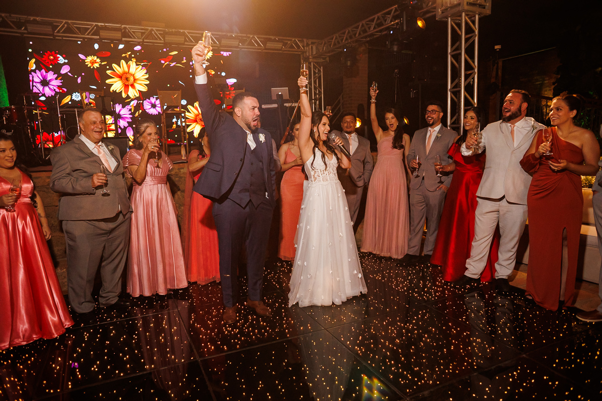 Foi intensa, animada, daquelas que ninguém quer ir embora. Risadas altas, abraços apertados, gente dançando como se não existisse amanhã. Tayná e Gabriel estavam inteiros ali, vivendo cada segundo, celebrando do jeito mais verdadeiro possível.