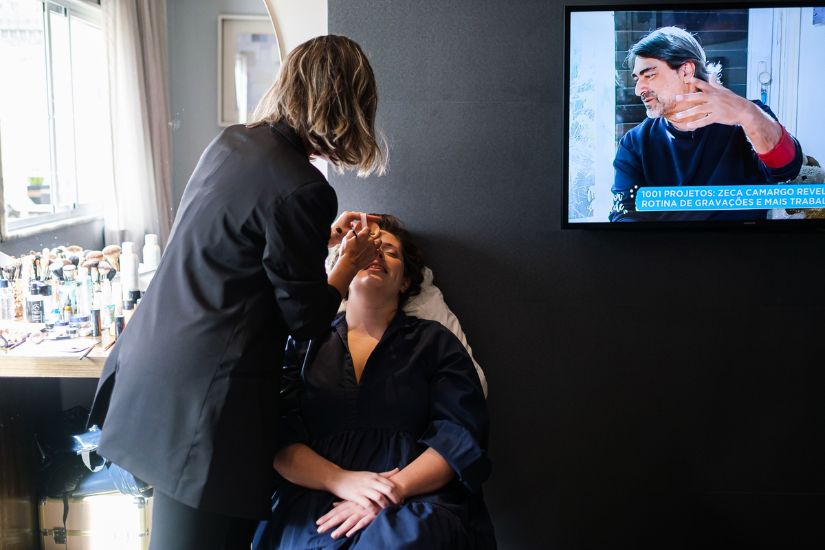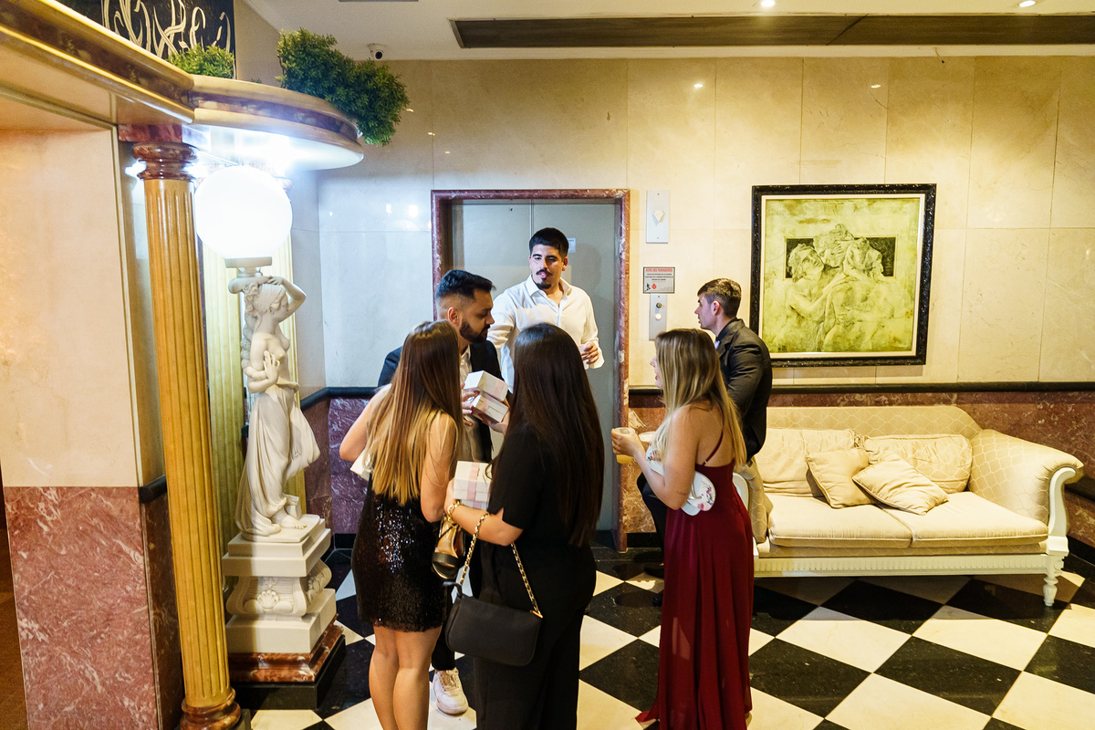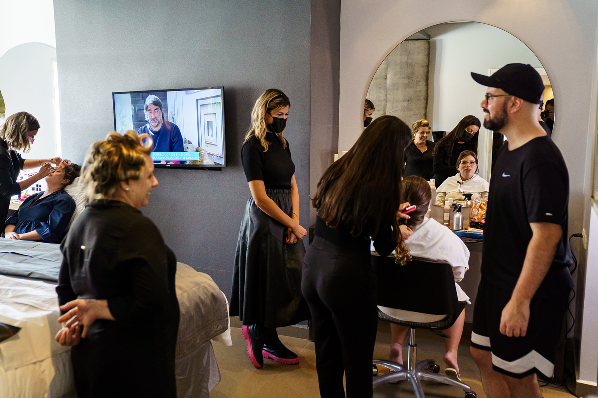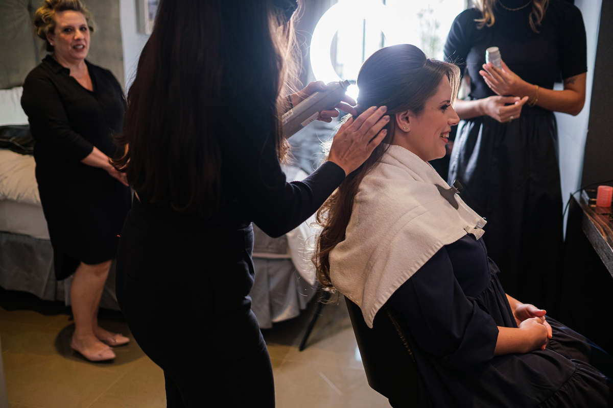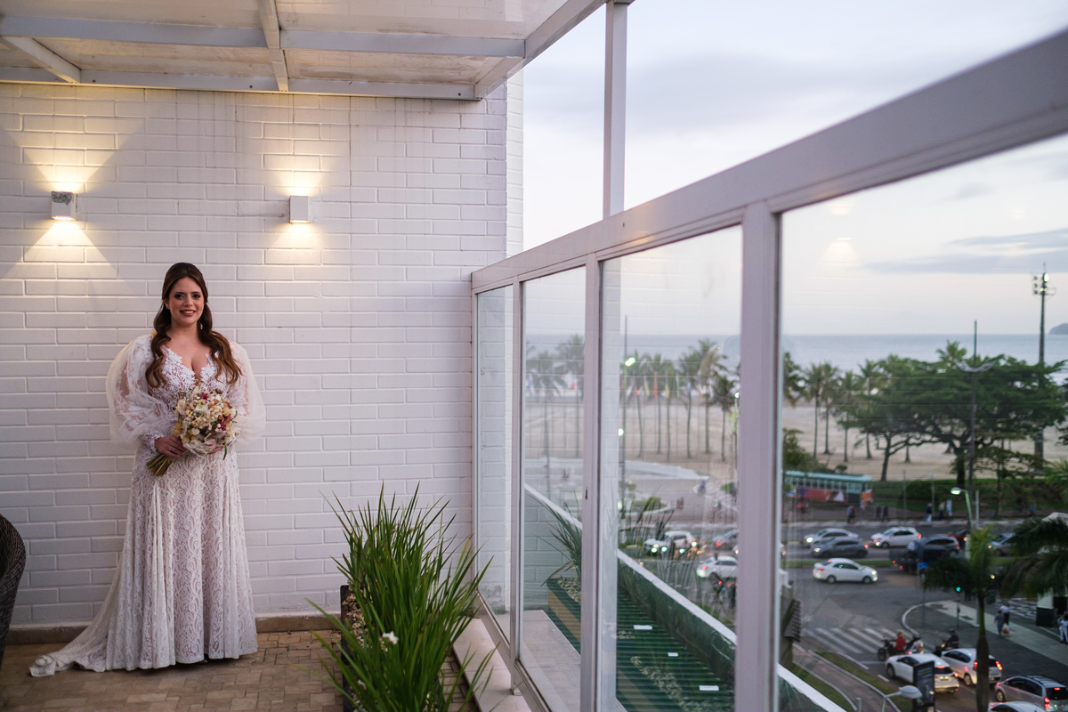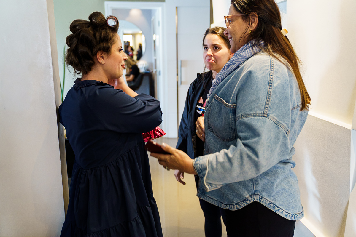A Alessandra começou o dia na orla de Santos, no Hotel Balneário, com o som do mar ali perto e uma alegria que tomava conta do quarto. A mãe, a irmã, as risadas… e uma amiga que atravessou oceanos da época em que ela morou no Canadá para estar ali. Era daqueles ambientes em que a felicidade é tão alta que contagia todo mundo. Leve, intensa, verdadeira.