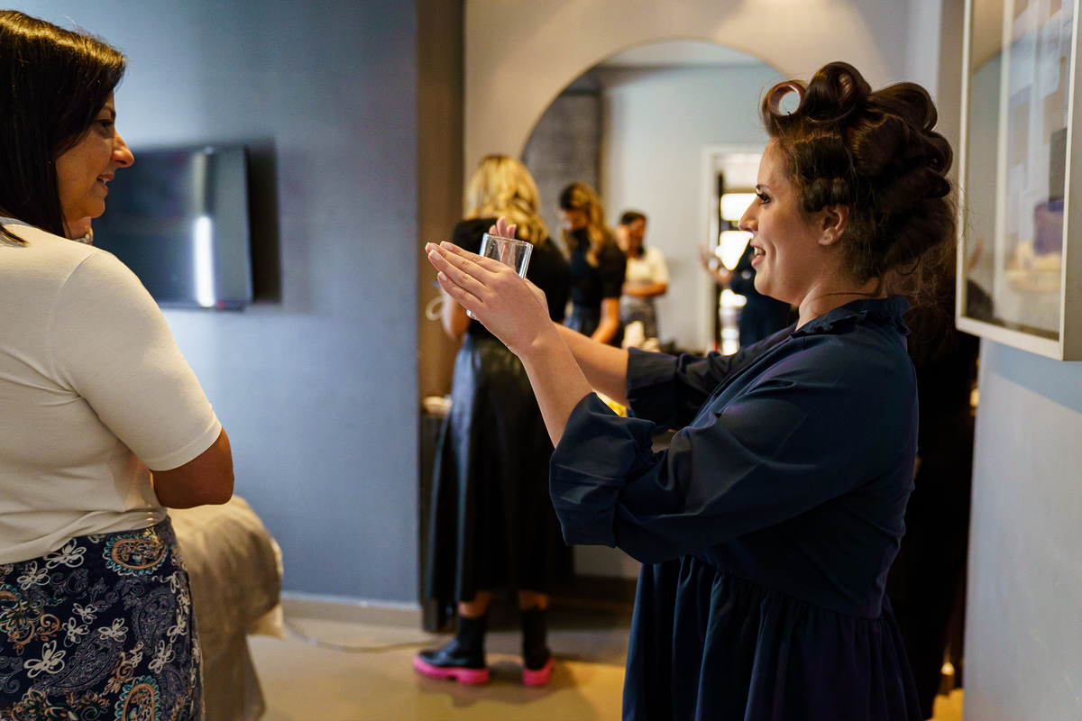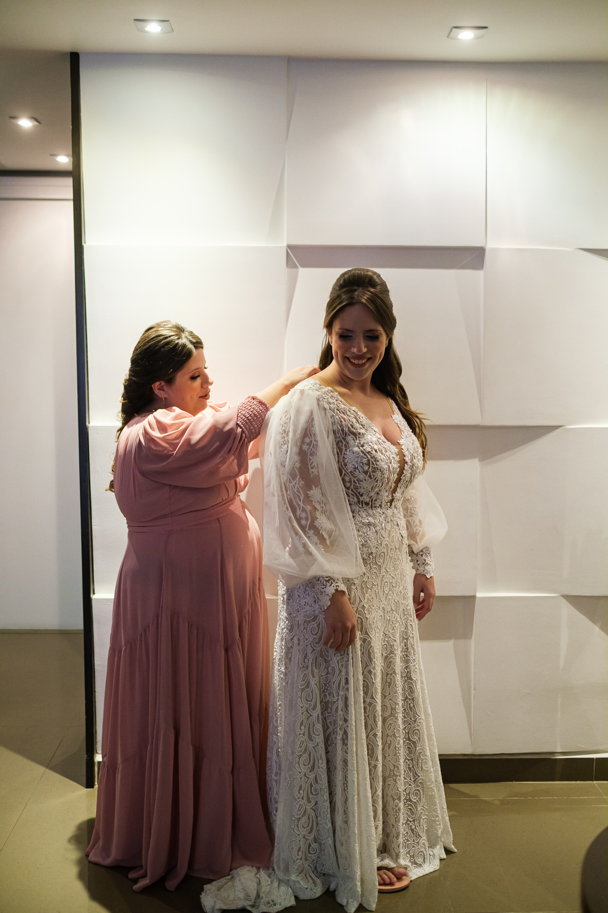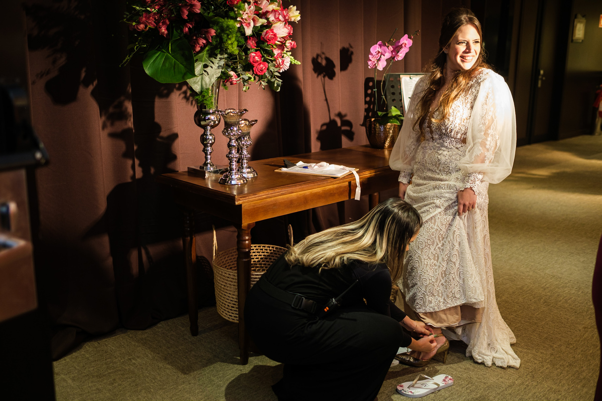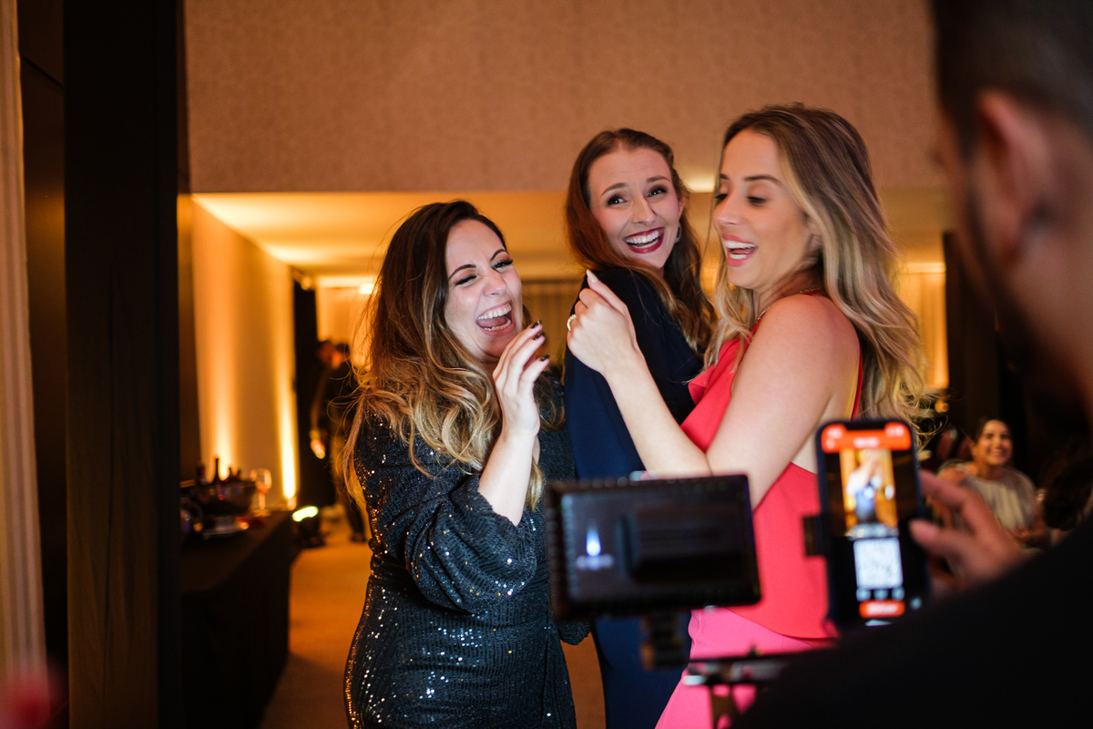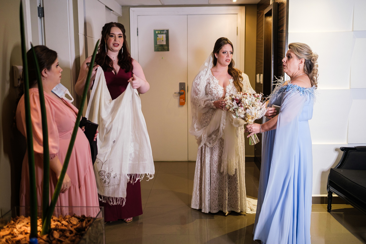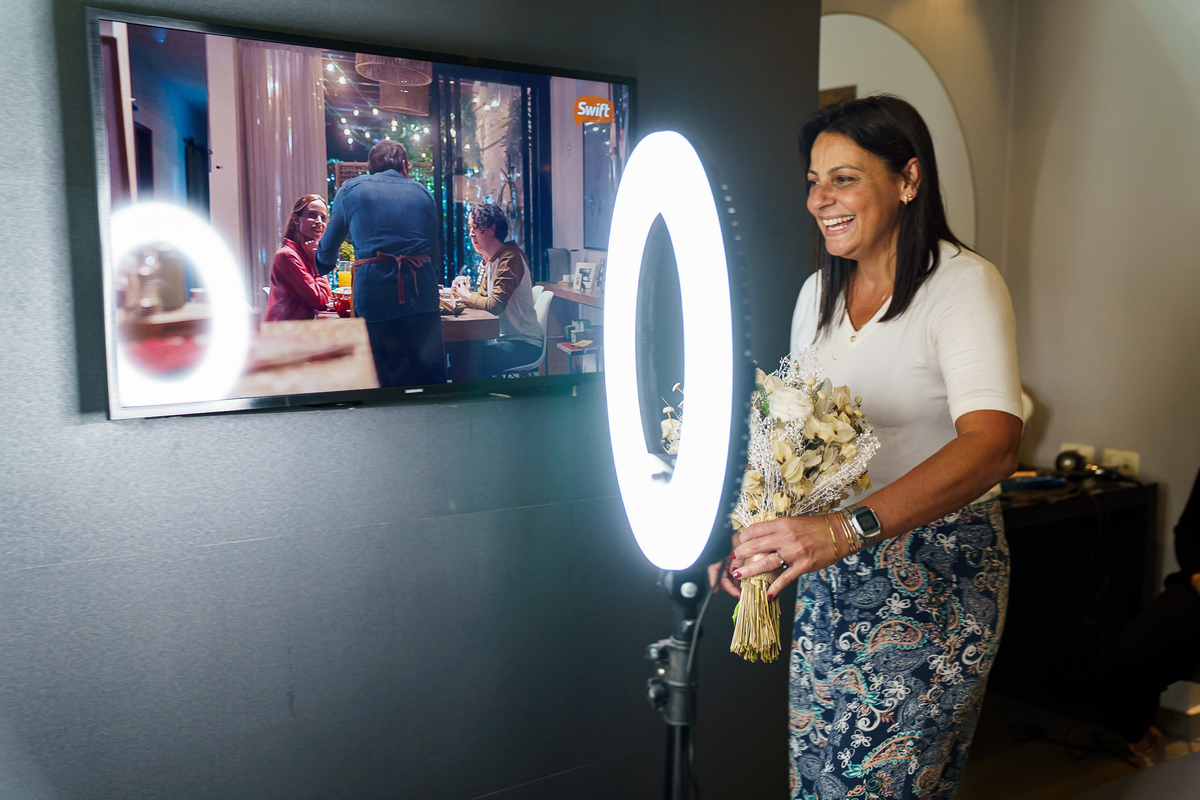 A Alessandra começou o dia na orla de Santos, no Hotel Balneário, com o som do mar ali perto e uma alegria que tomava conta do quarto. A mãe, a irmã, as risadas… e uma amiga que atravessou oceanos da época em que ela morou no Canadá para estar ali. Era daqueles ambientes em que a felicidade é tão alta que contagia todo mundo. Leve, intensa, verdadeira.