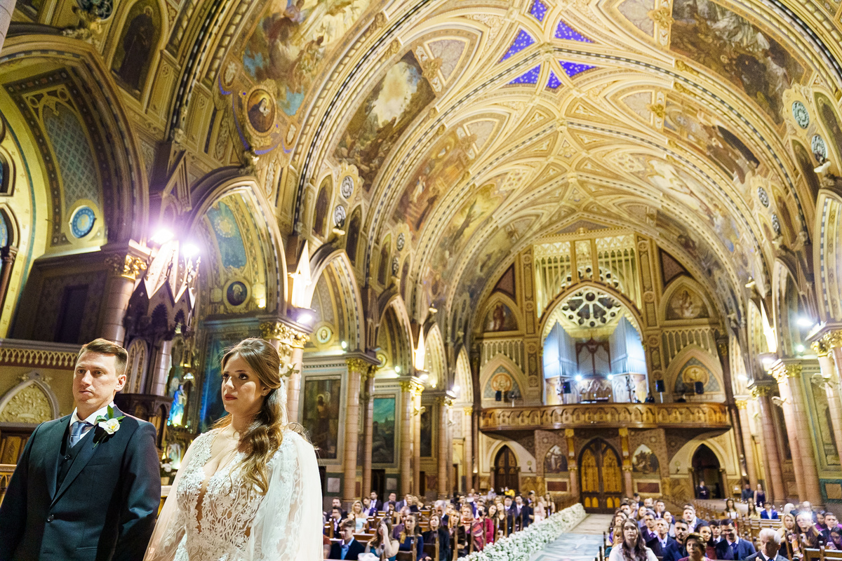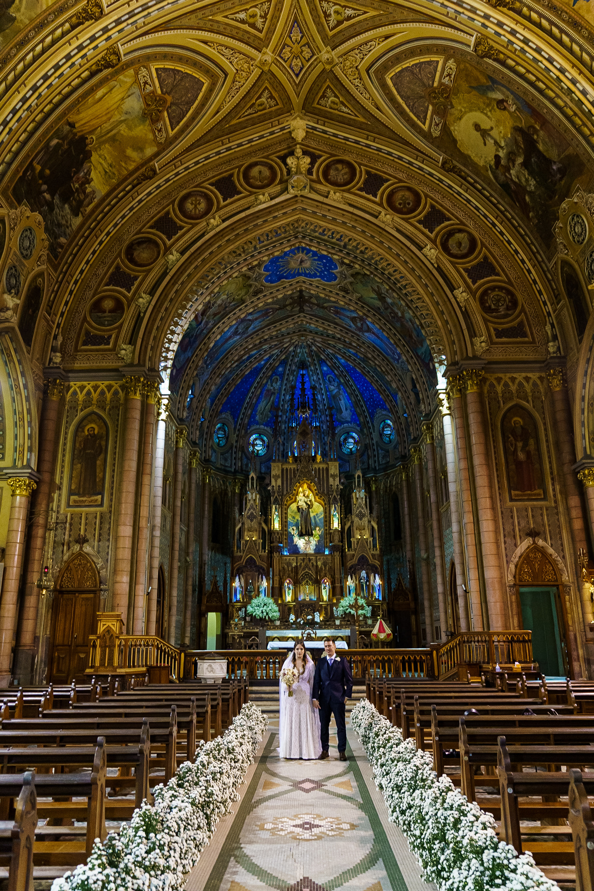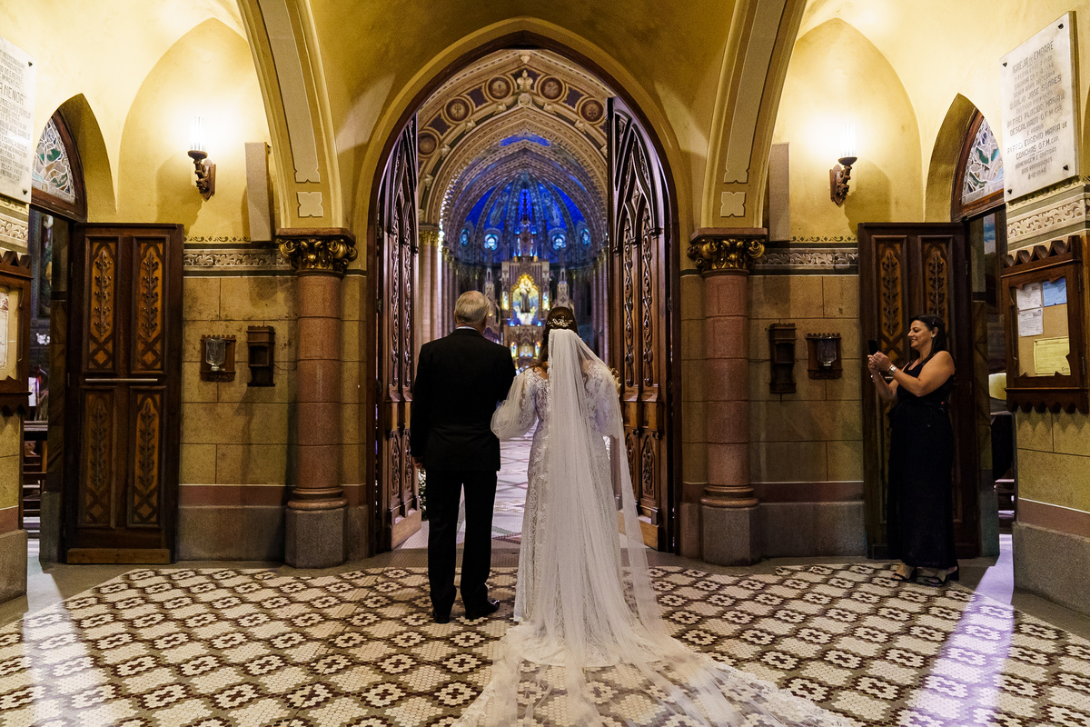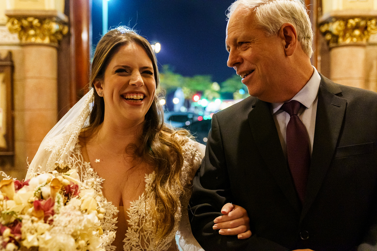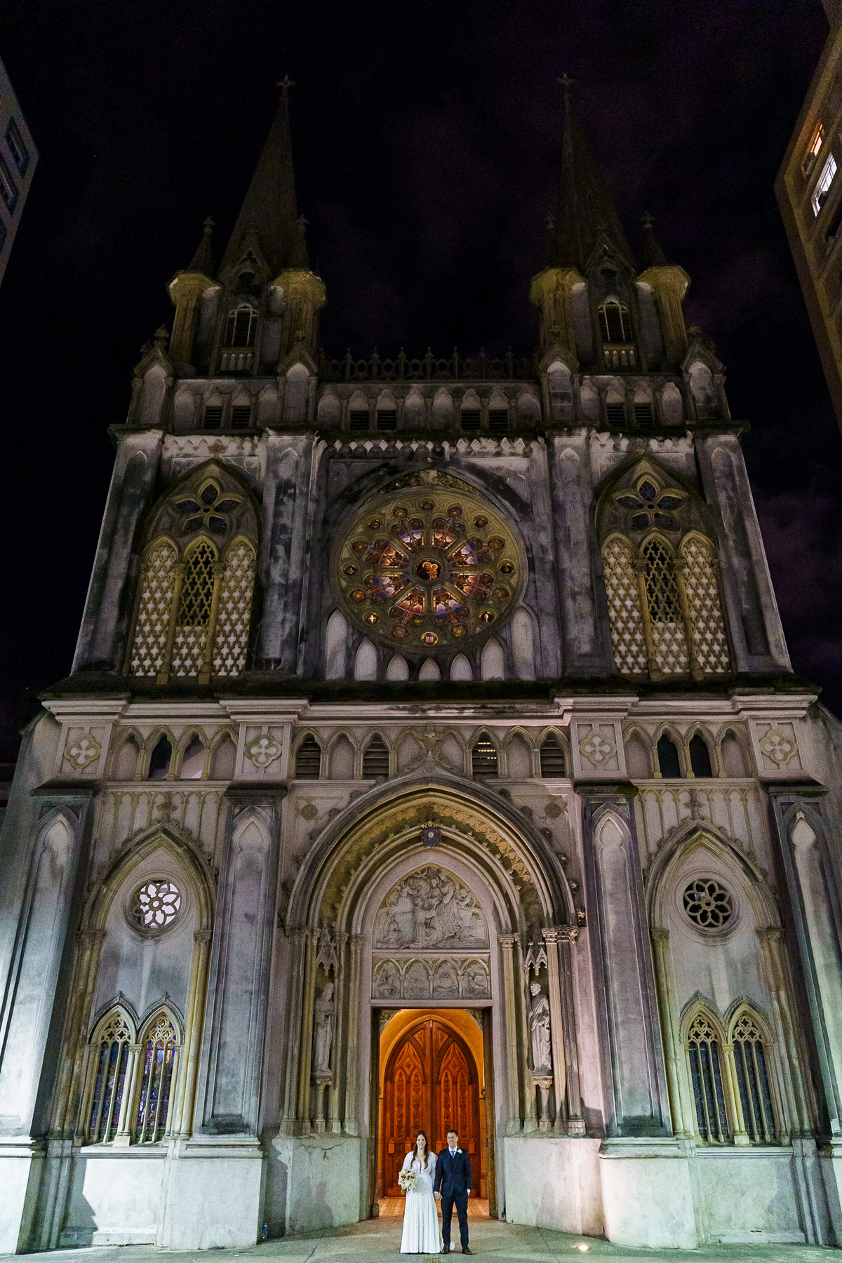 A cerimônia aconteceu em um dos cenários mais lindos que já vi: a Igreja do Embaré. Imponente, cheia de história, luz e emoção. Cada olhar, cada gesto, cada respiração parecia carregar o peso e a beleza daquele momento único. Foi emocionante do começo ao fim daquelas cerimônias que fazem a gente esquecer o tempo passando.