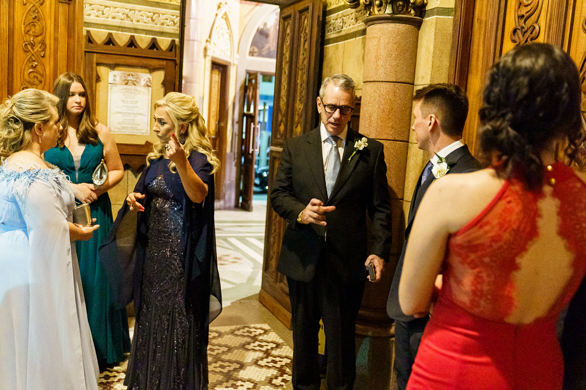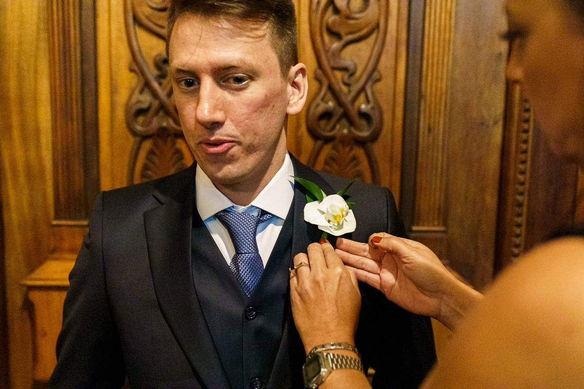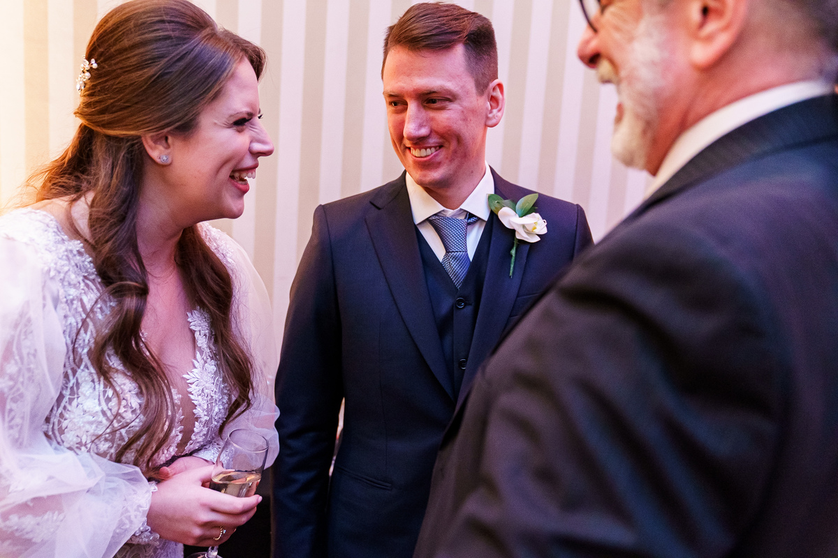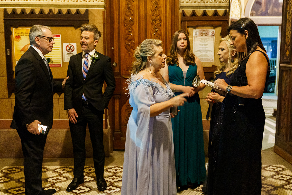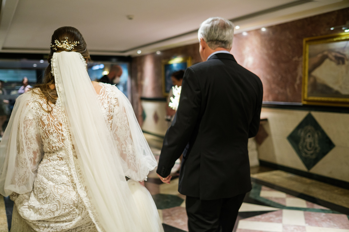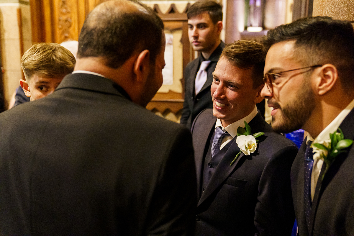 A cerimônia aconteceu em um dos cenários mais lindos que já vi: a Igreja do Embaré. Imponente, cheia de história, luz e emoção. Cada olhar, cada gesto, cada respiração parecia carregar o peso e a beleza daquele momento único. Foi emocionante do começo ao fim daquelas cerimônias que fazem a gente esquecer o tempo passando.