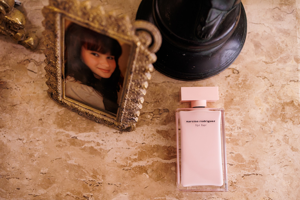 Na mesa onde estava o perfume que ela usaria naquele dia, havia um porta-retrato com uma foto dela ainda pequena. Uma cena simples… mas cheia de significado. A menina que existia ali agora se preparava para viver um dos dias mais importantes da sua história.