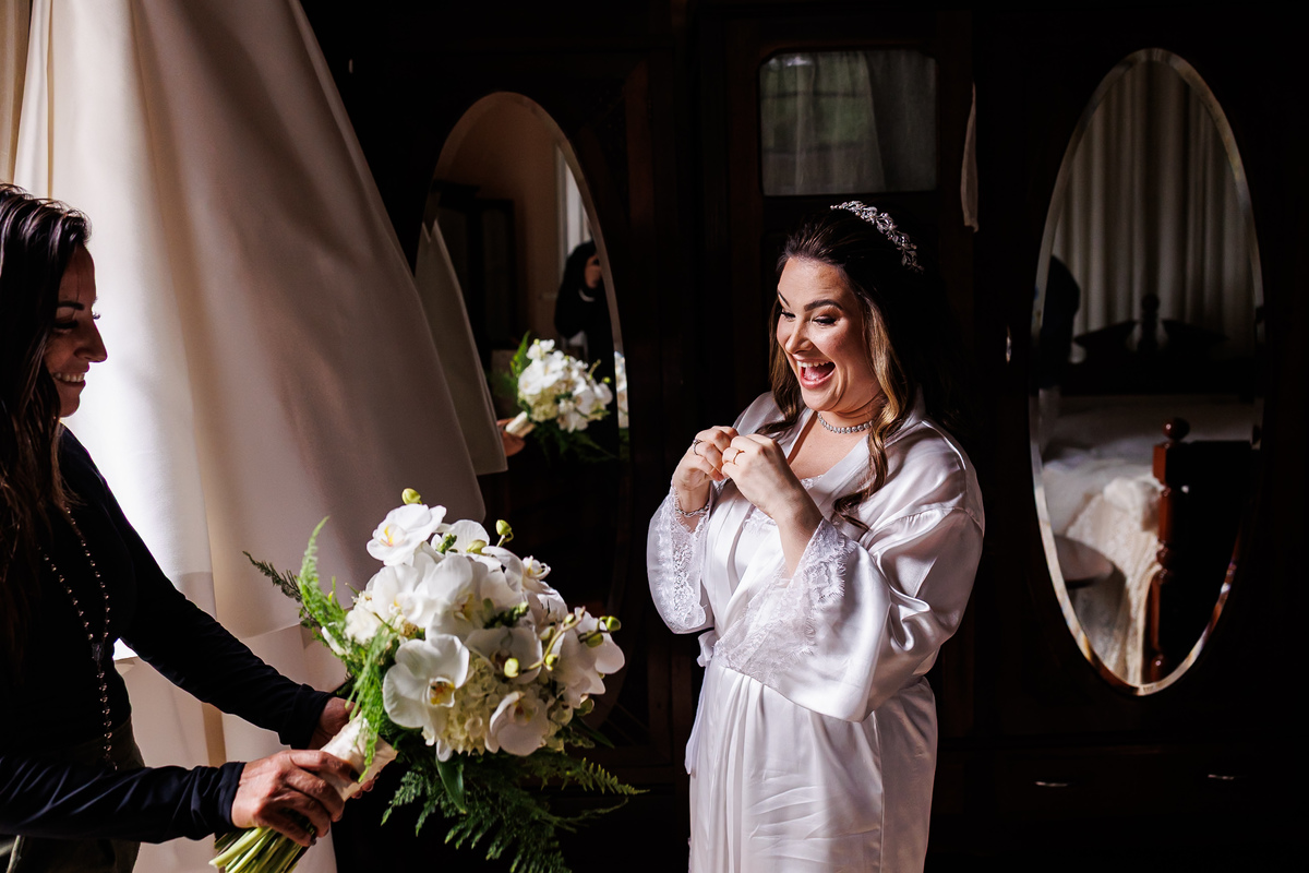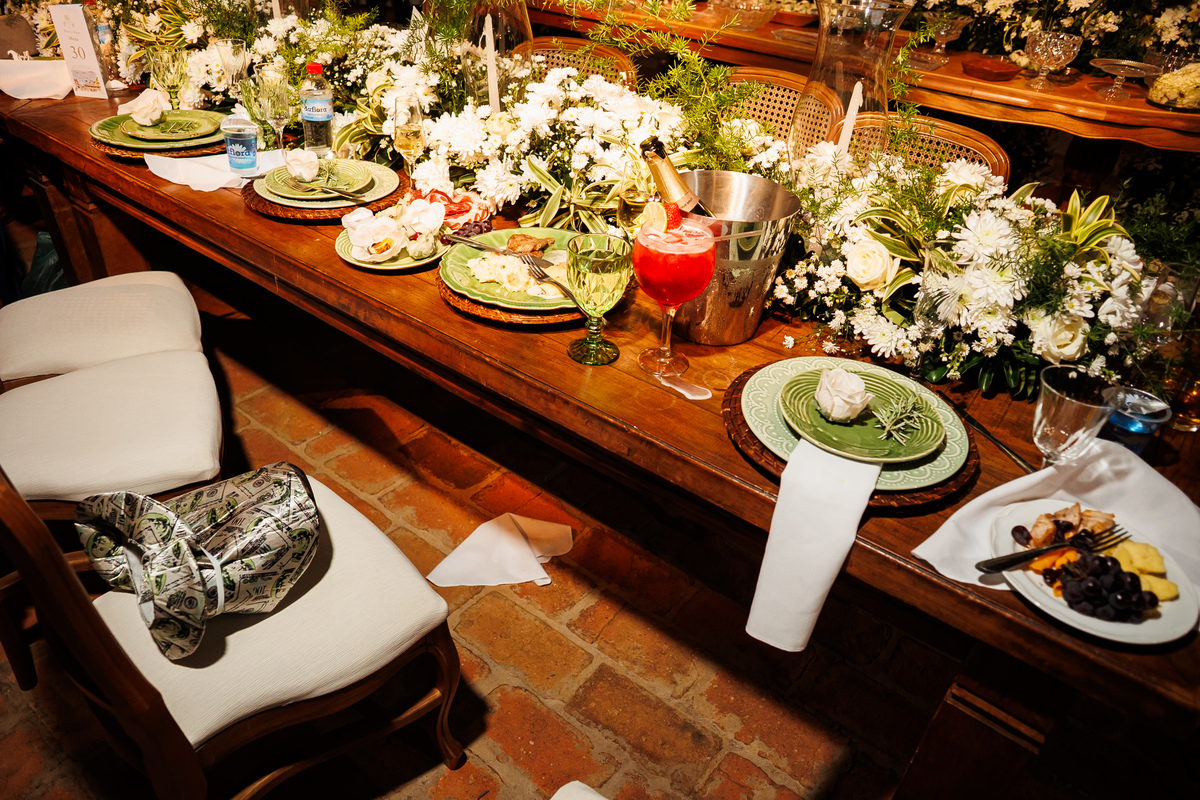 Depois, Victoria seguiu para a fazenda onde aconteceria o casamento, para finalizar os preparativos. Foi lá que ela recebeu o buquê criado pela Bel Rabelo e a reação dela disse tudo. Alegria, emoção, surpresa… foi possível sentir exatamente o que ela estava vivendo naquele instante.