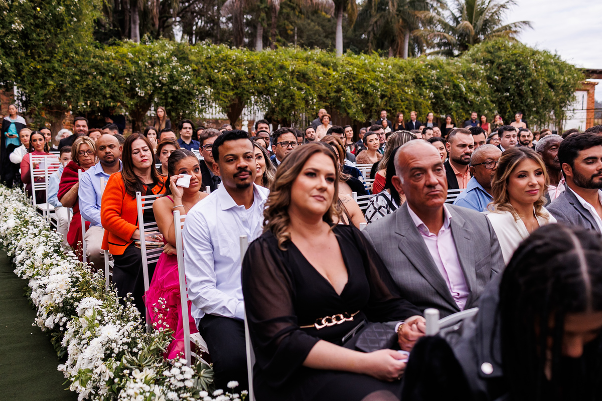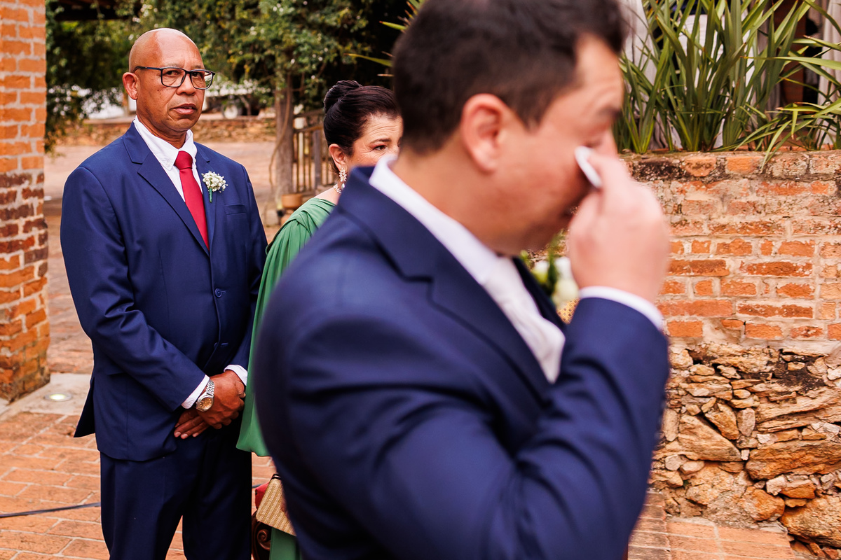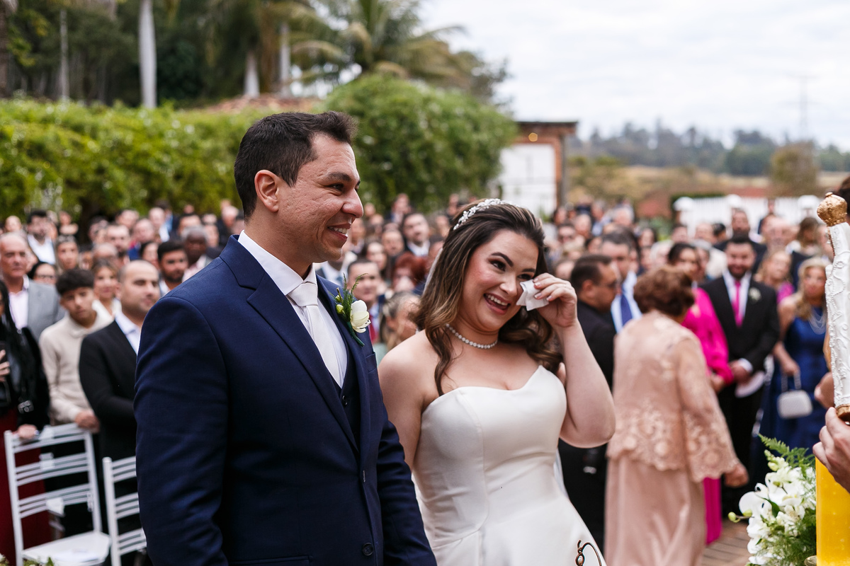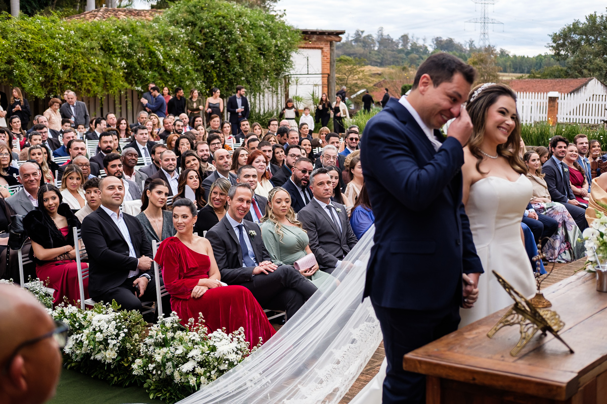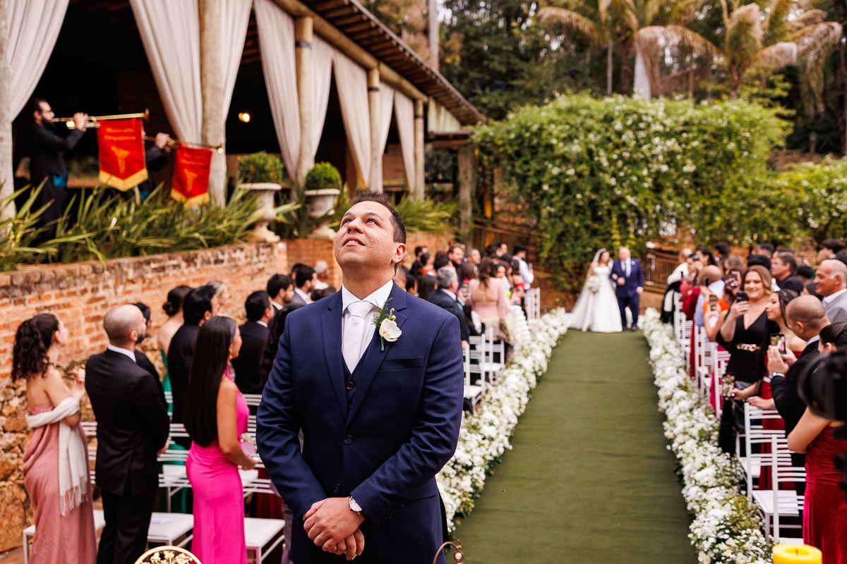Na entrada da noiva, Claudio não conteve as lágrimas. As madrinhas também se emocionaram. Era impossível não sentir a intensidade daquele momento.