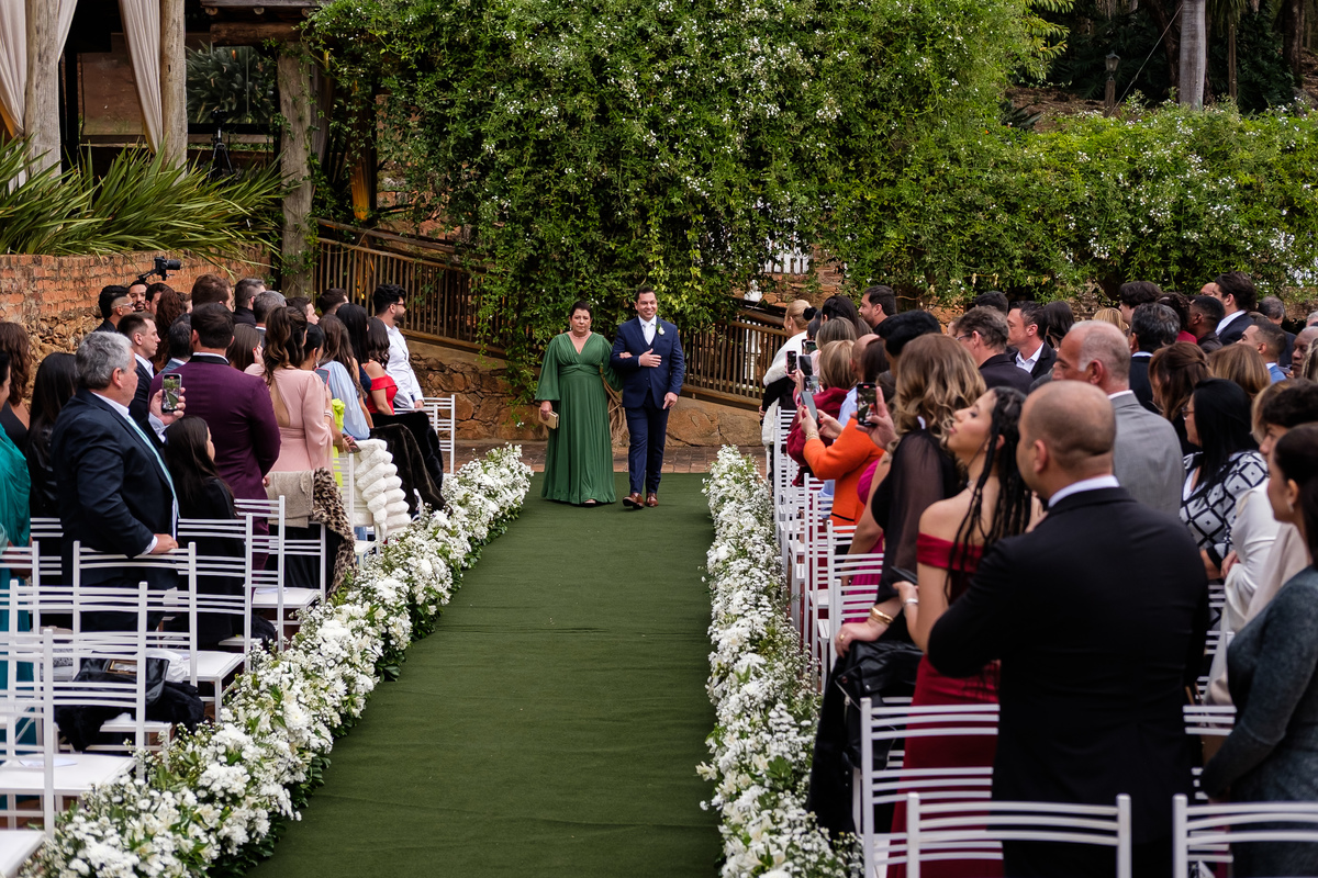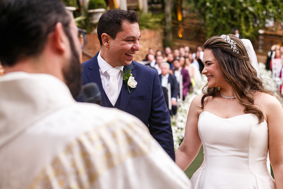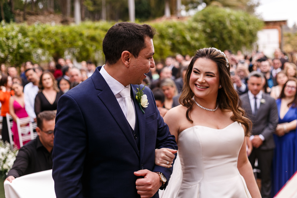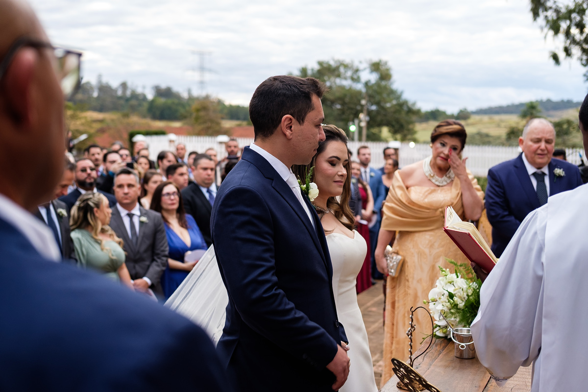 Na entrada da noiva, Claudio não conteve as lágrimas. As madrinhas também se emocionaram. Era impossível não sentir a intensidade daquele momento.