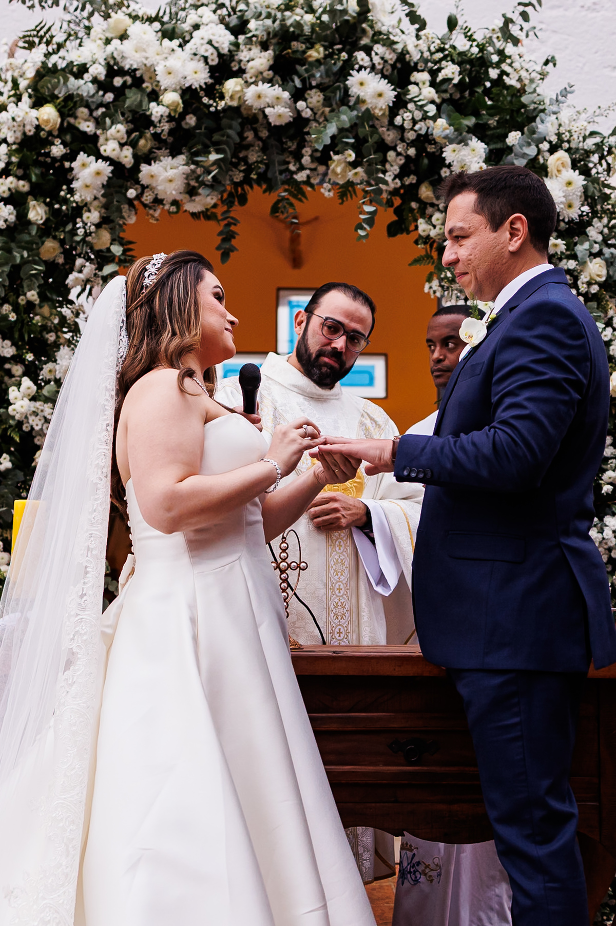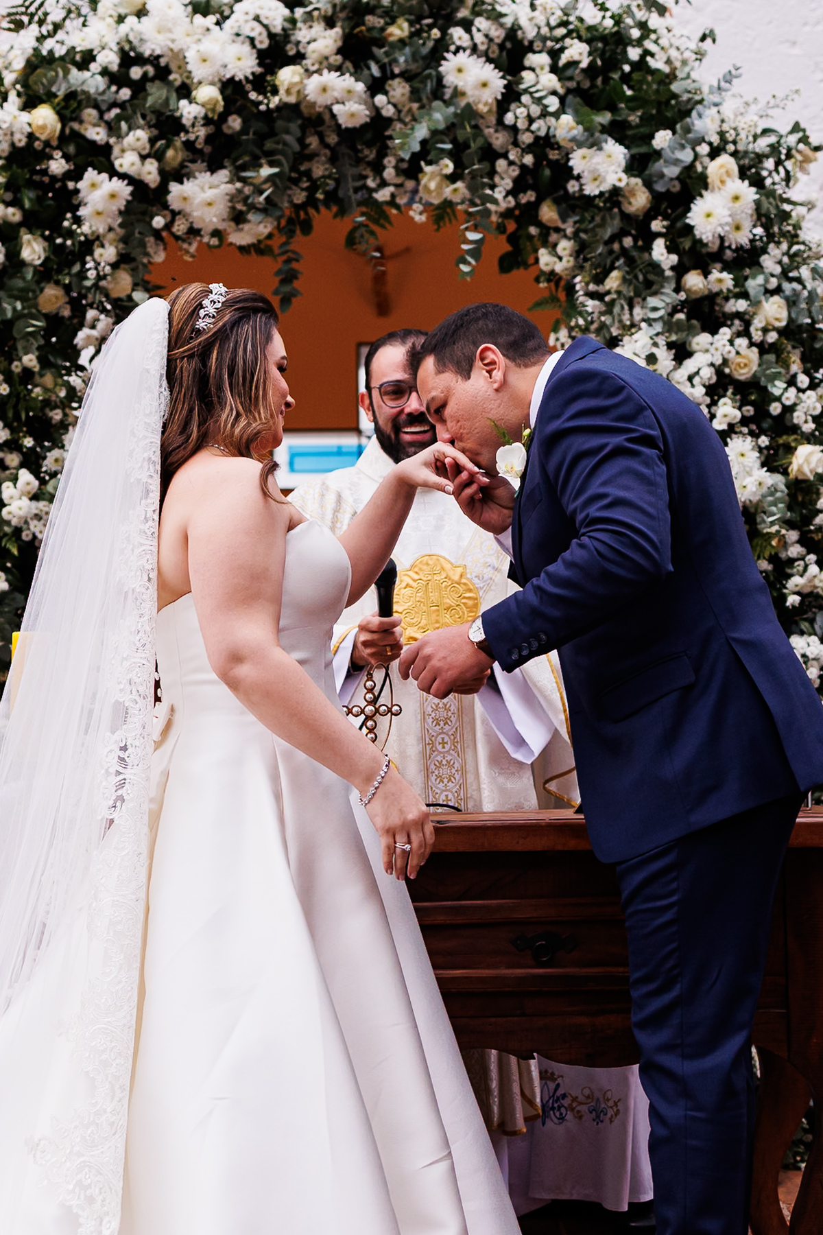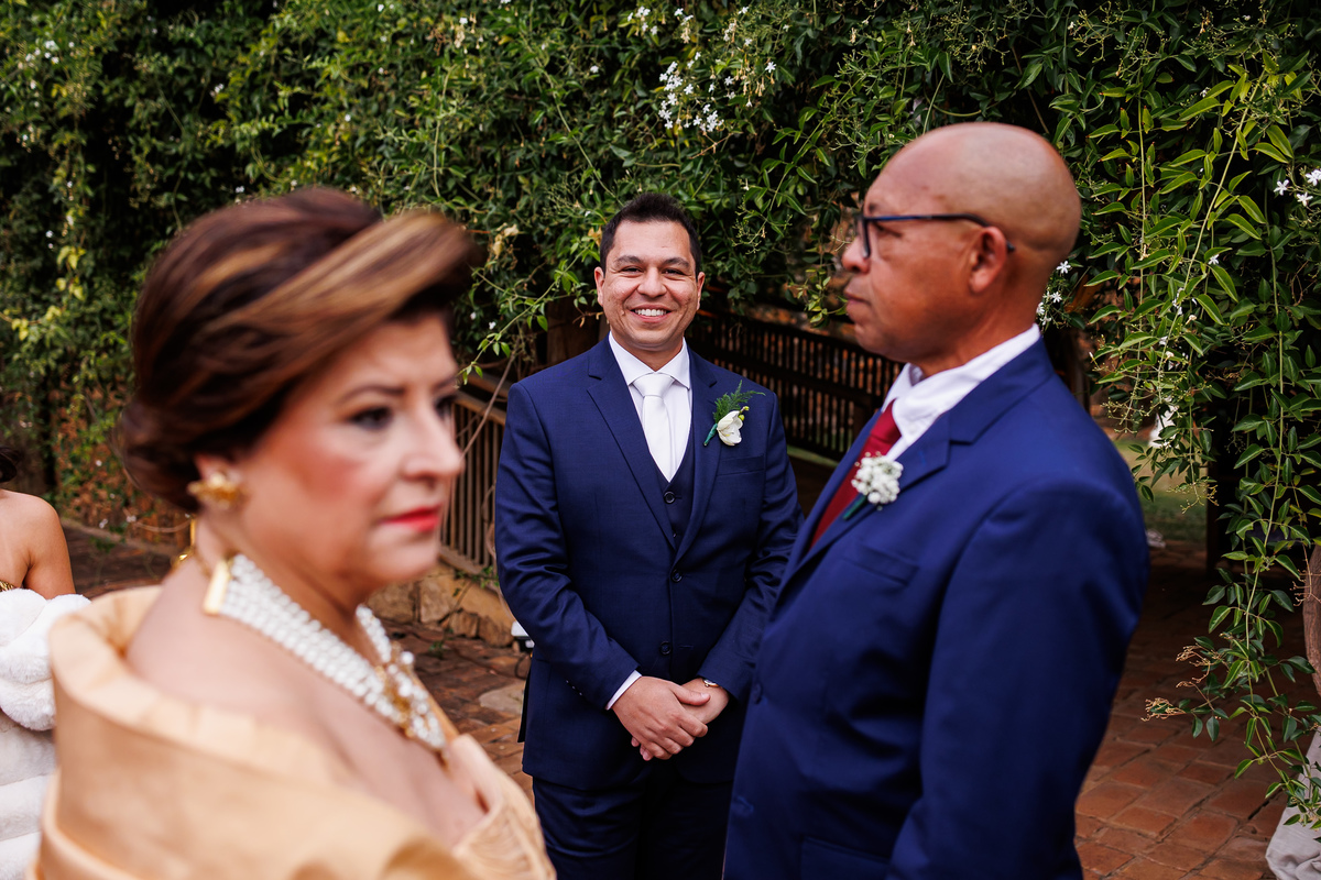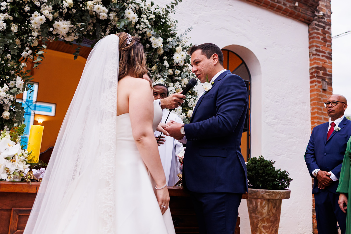 Na entrada da noiva, Claudio não conteve as lágrimas. As madrinhas também se emocionaram. Era impossível não sentir a intensidade daquele momento.