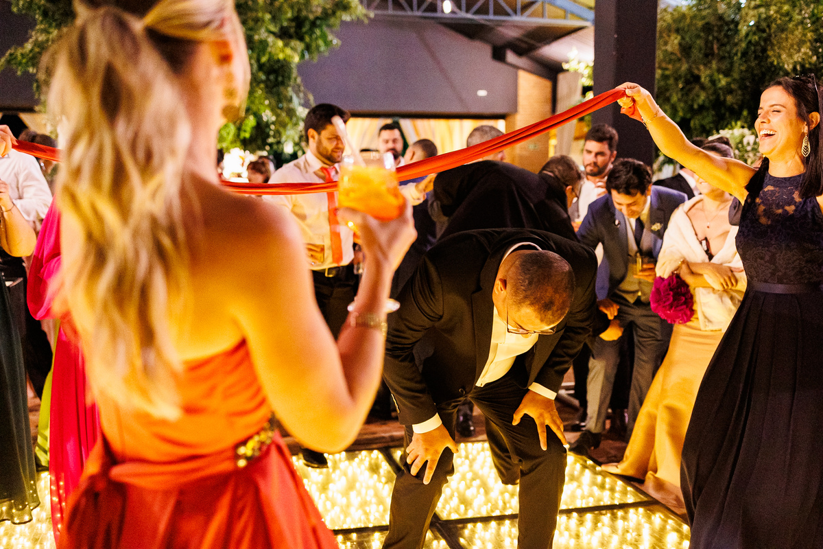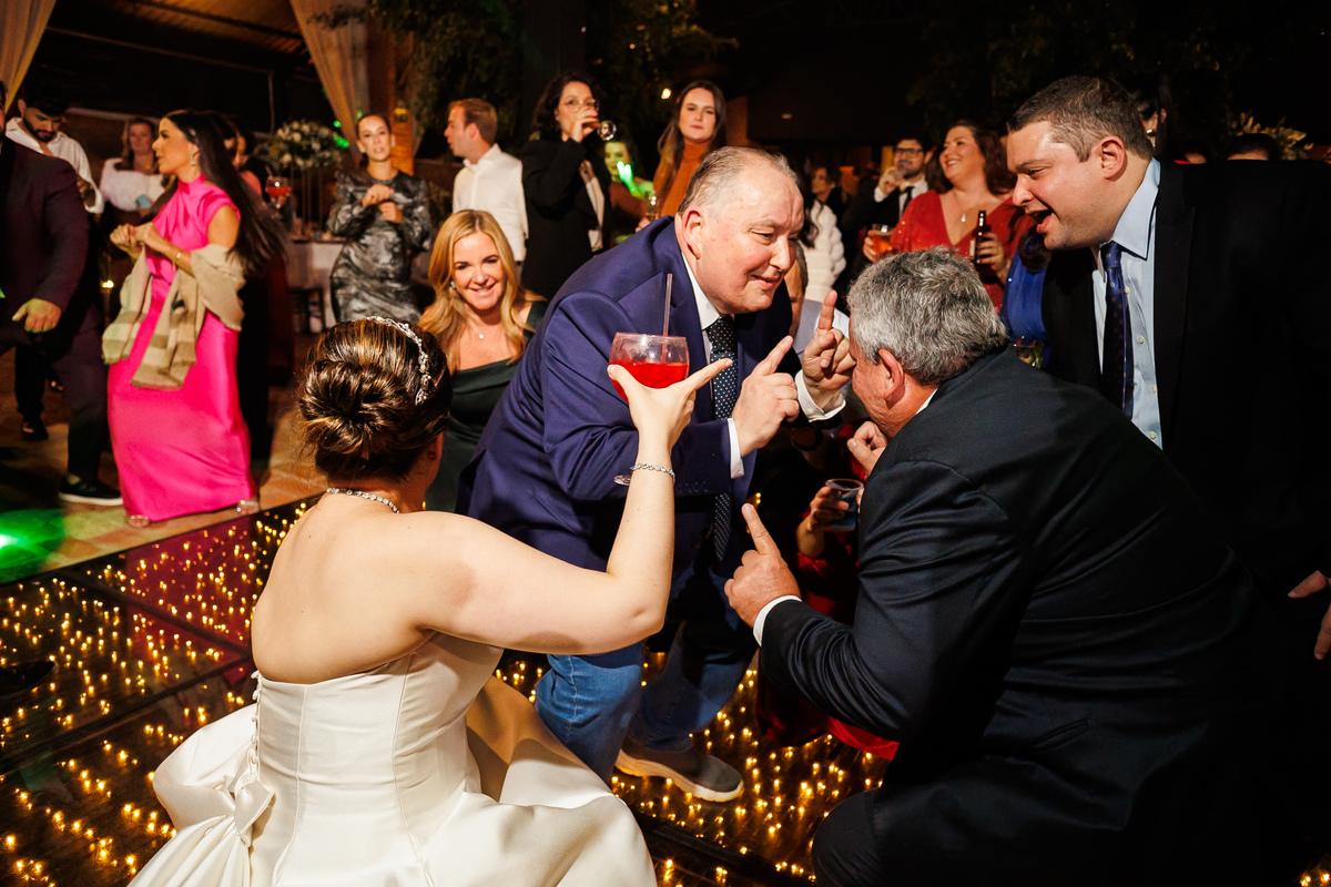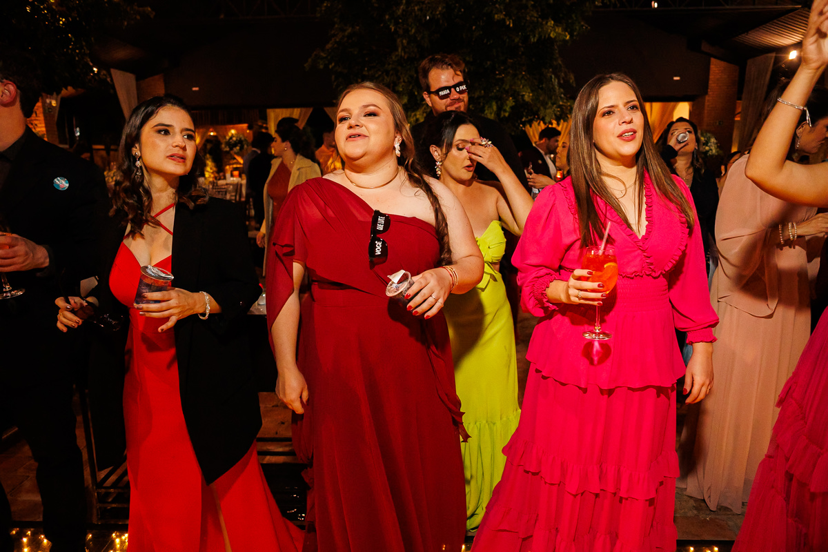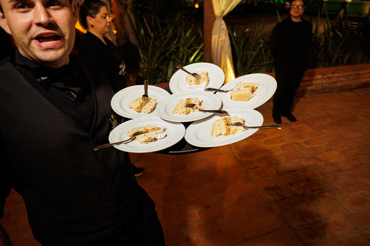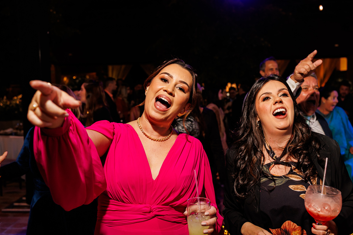 Duas bandas, o pai da noiva cantando, Victoria e Claudio no palco.