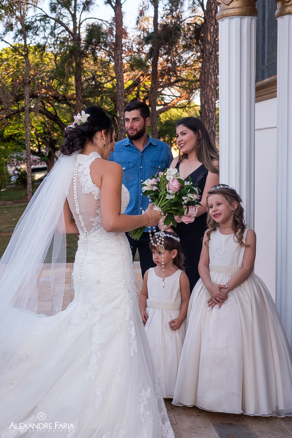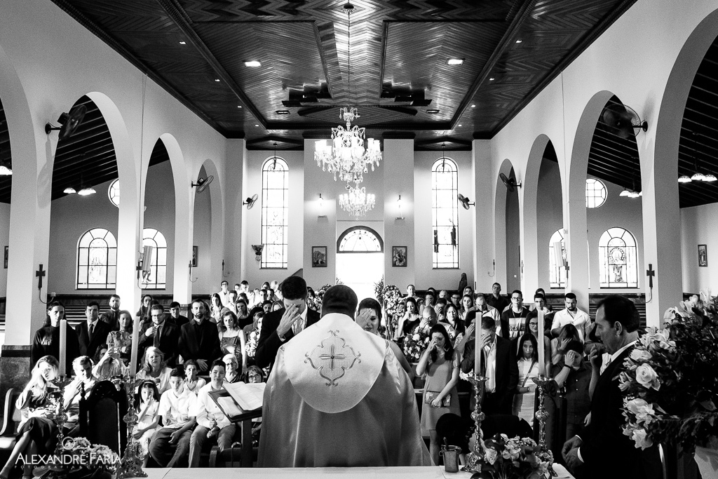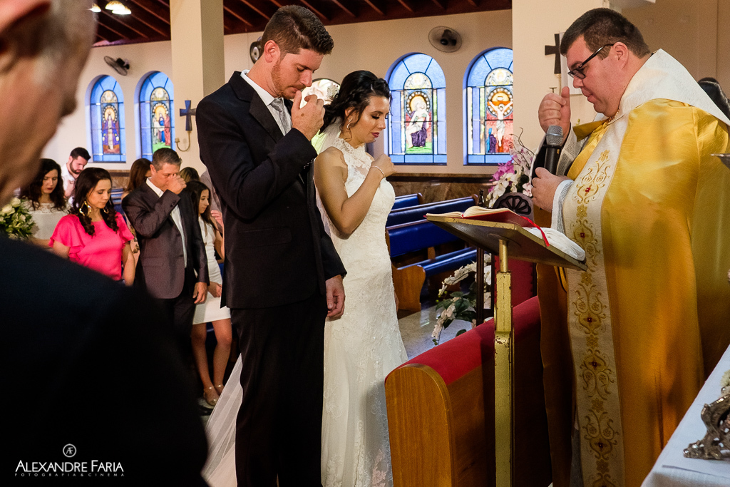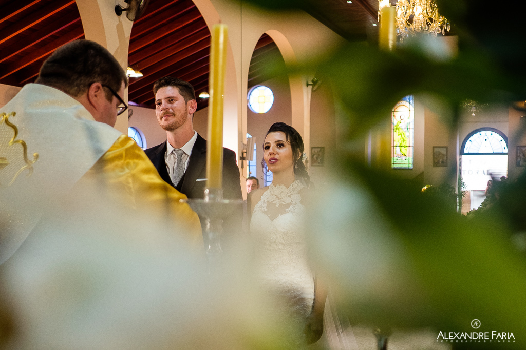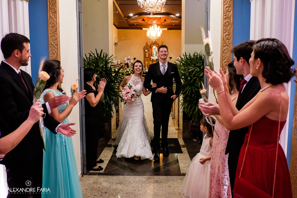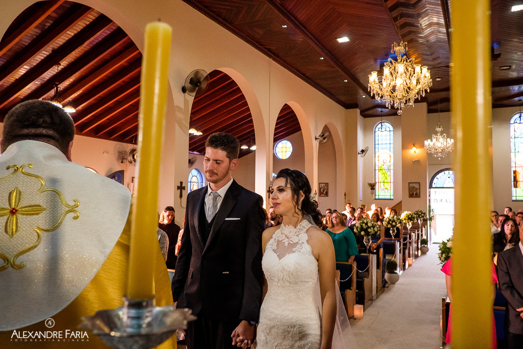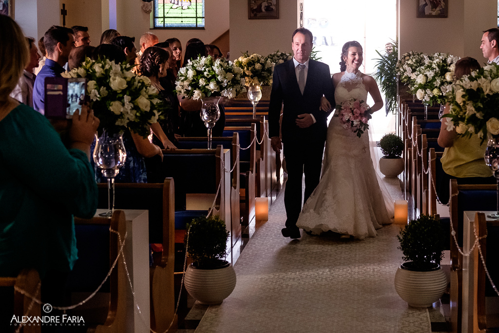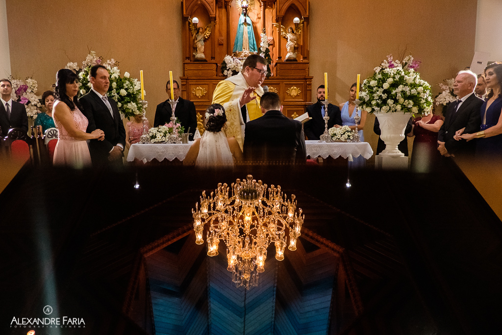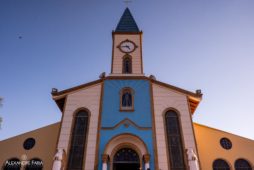 Casamento na igreja de Nossa Senhora Aparecida no fim de tarde, são combinações perfeita.
