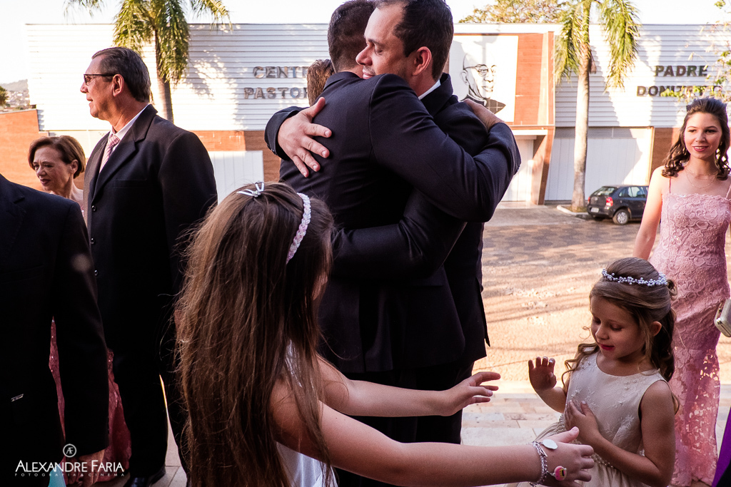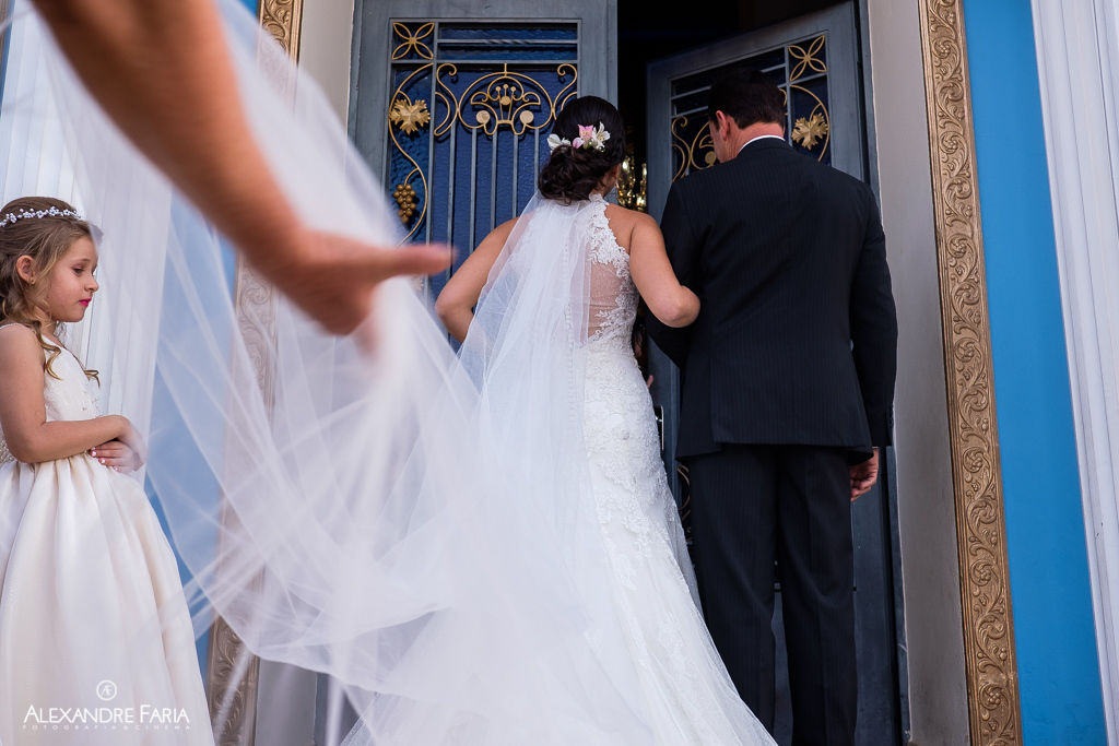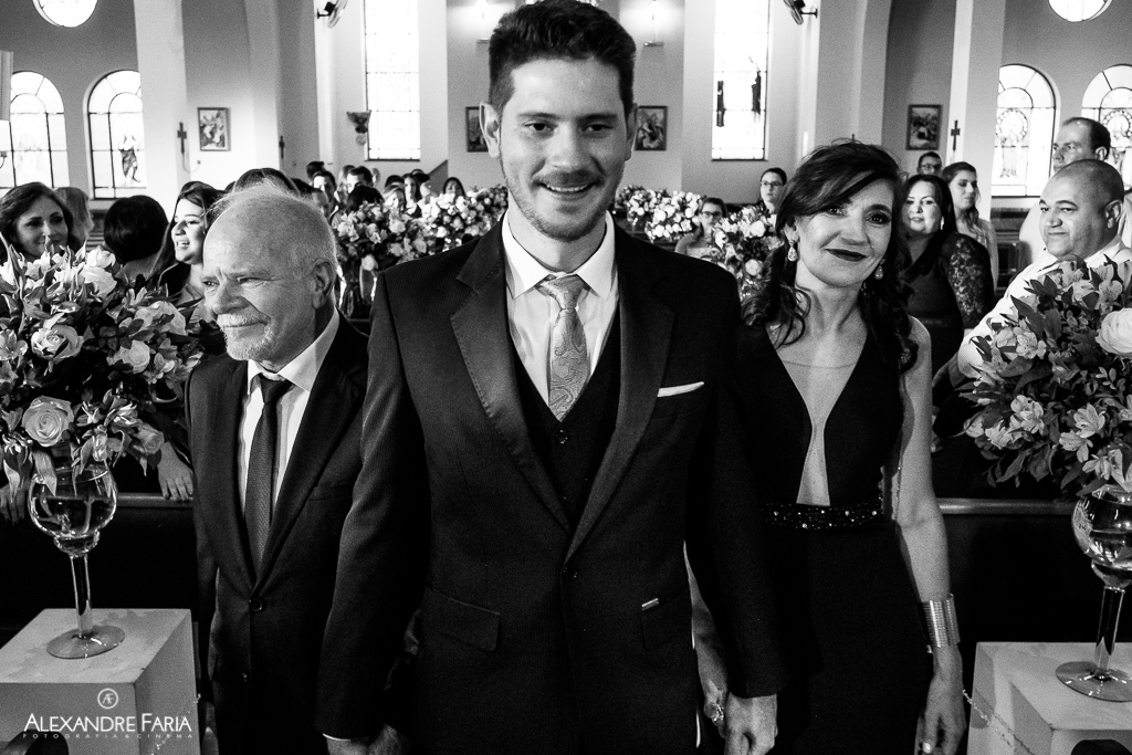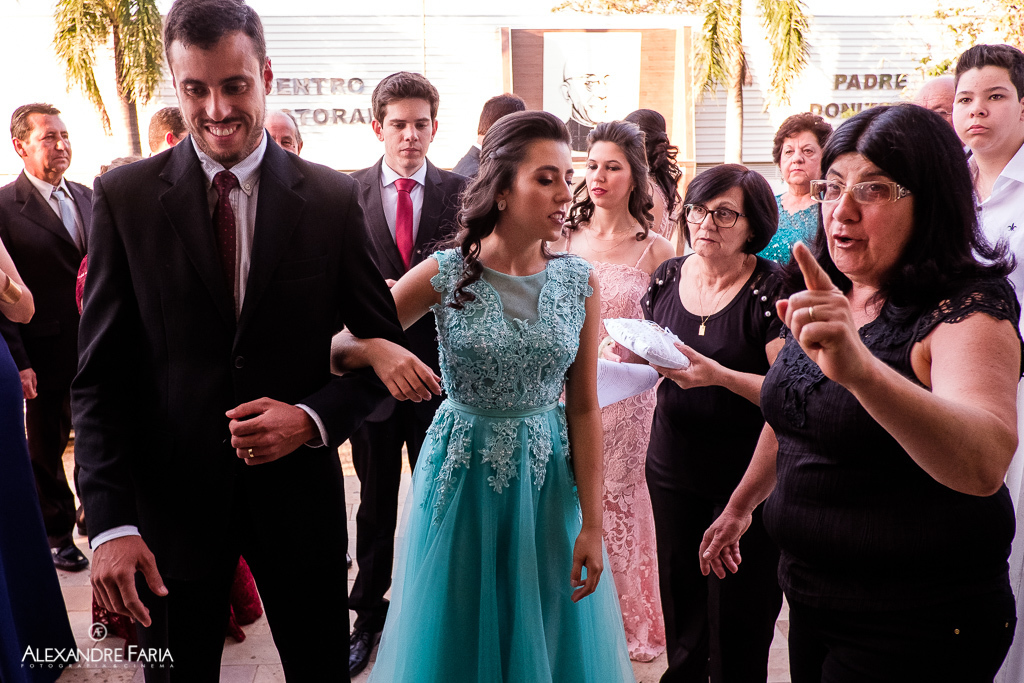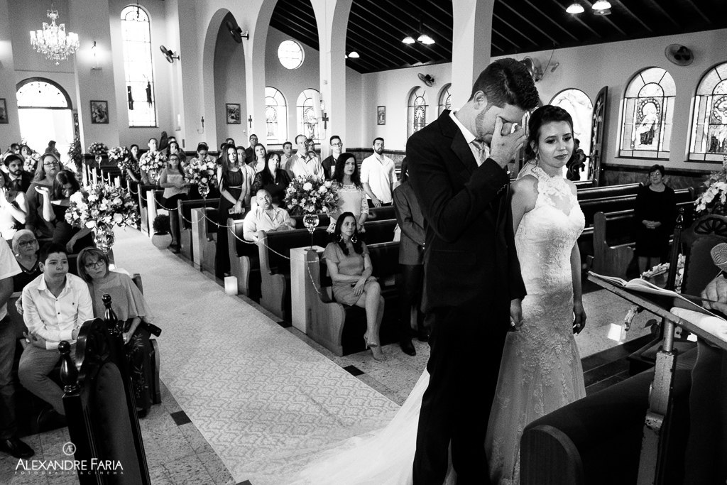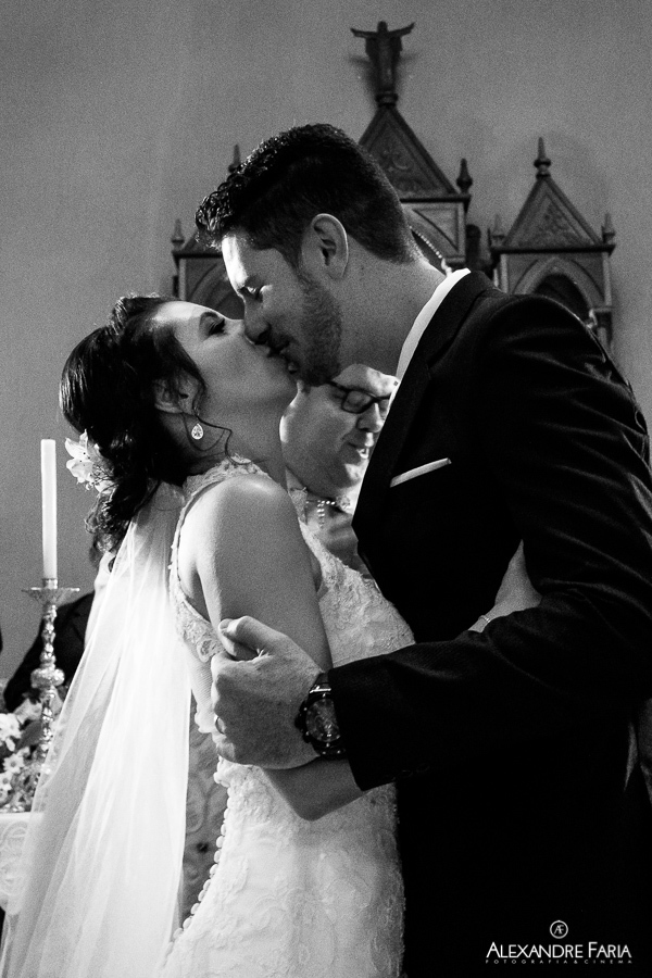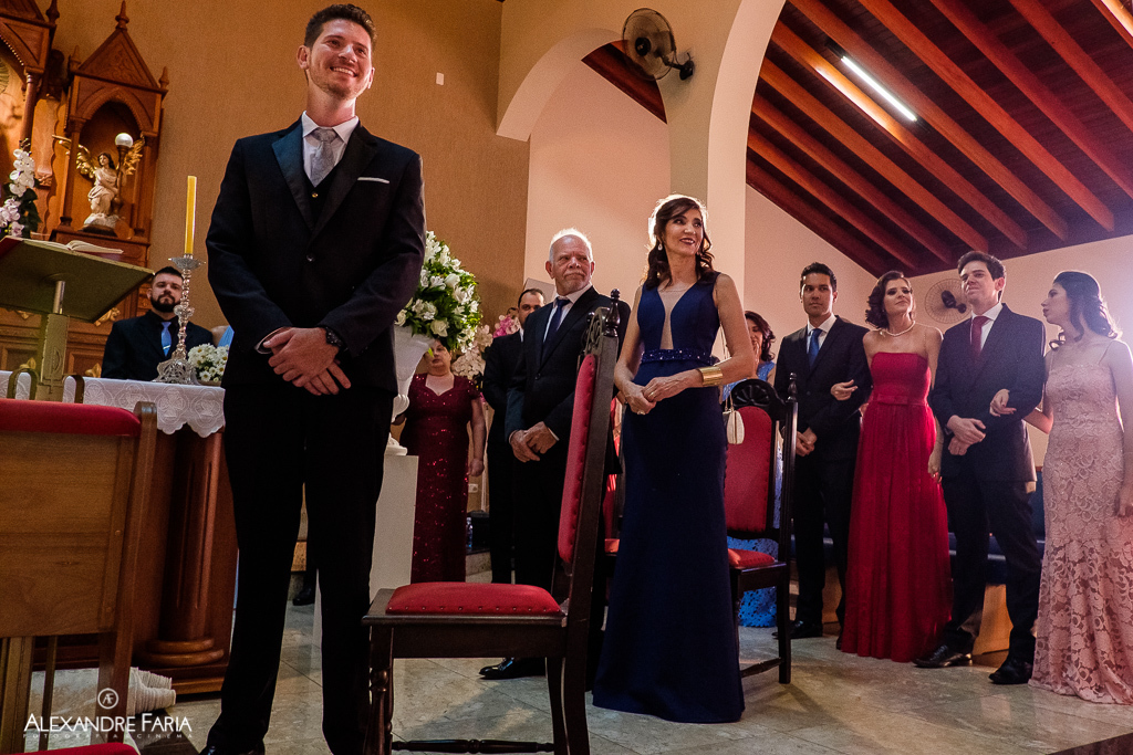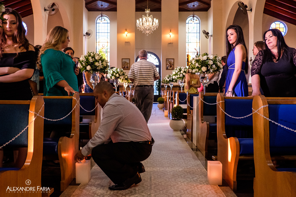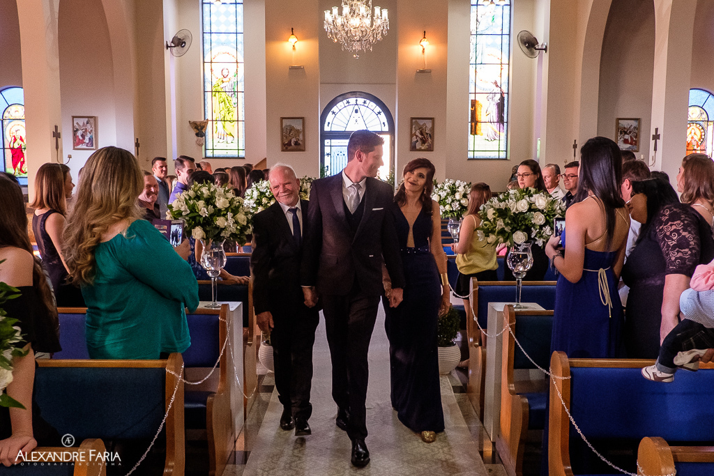 Casamento na igreja de Nossa Senhora Aparecida no fim de tarde, são combinações perfeita.