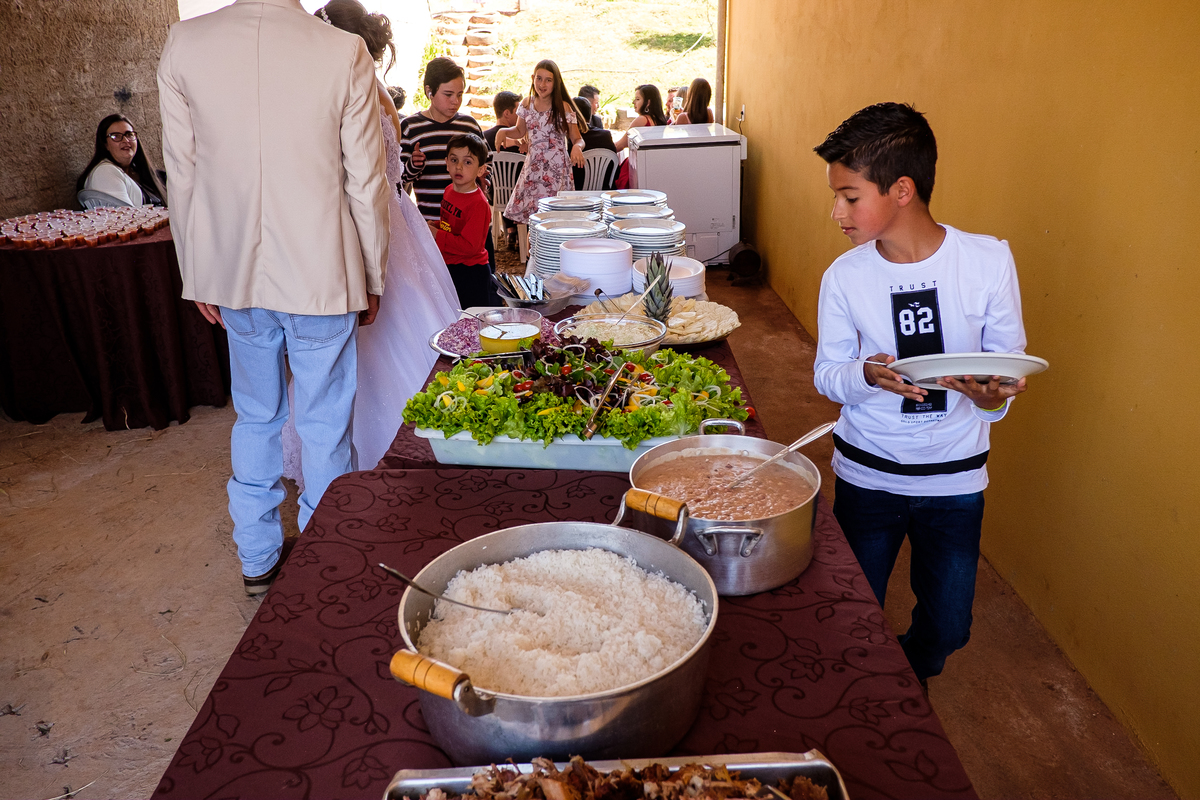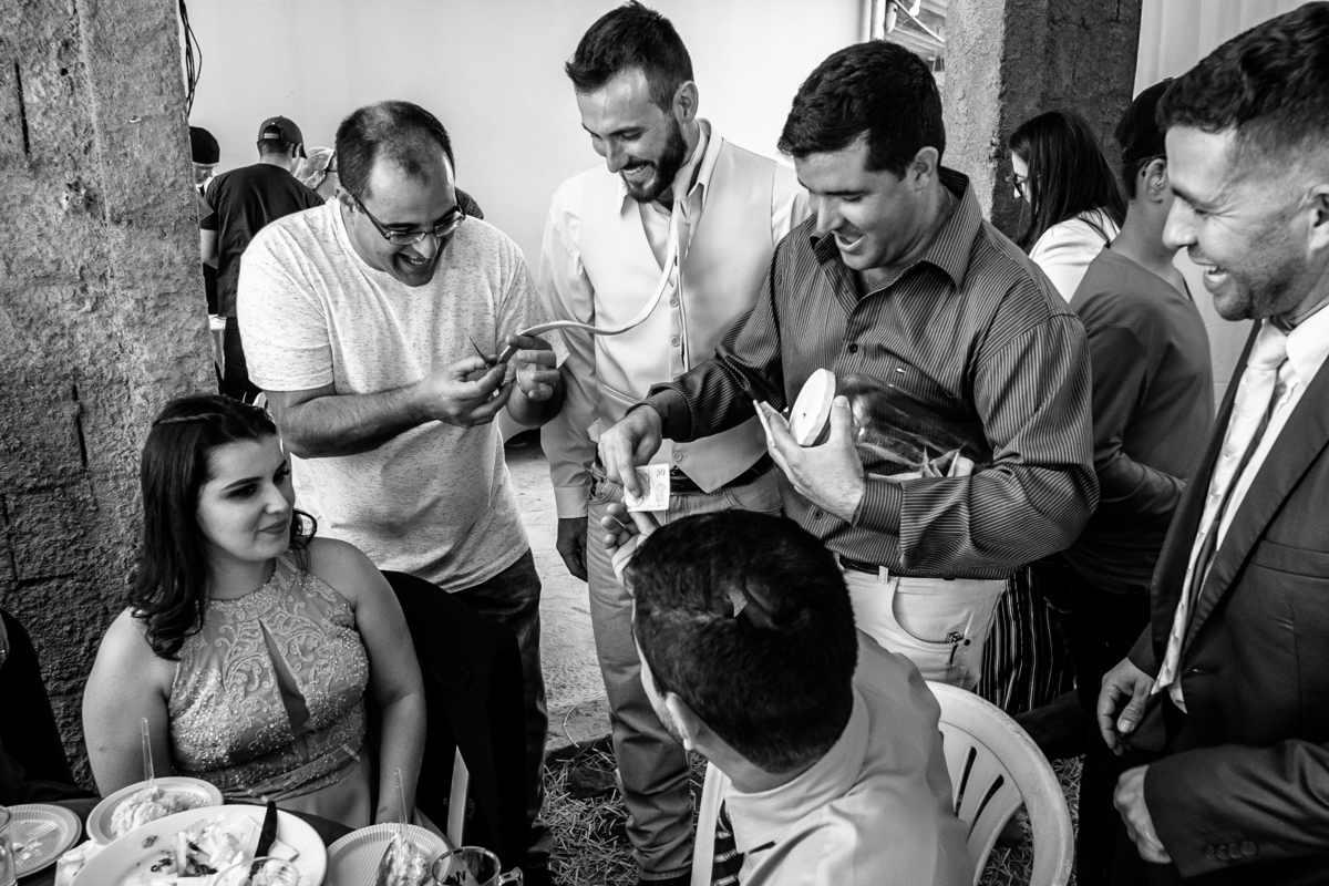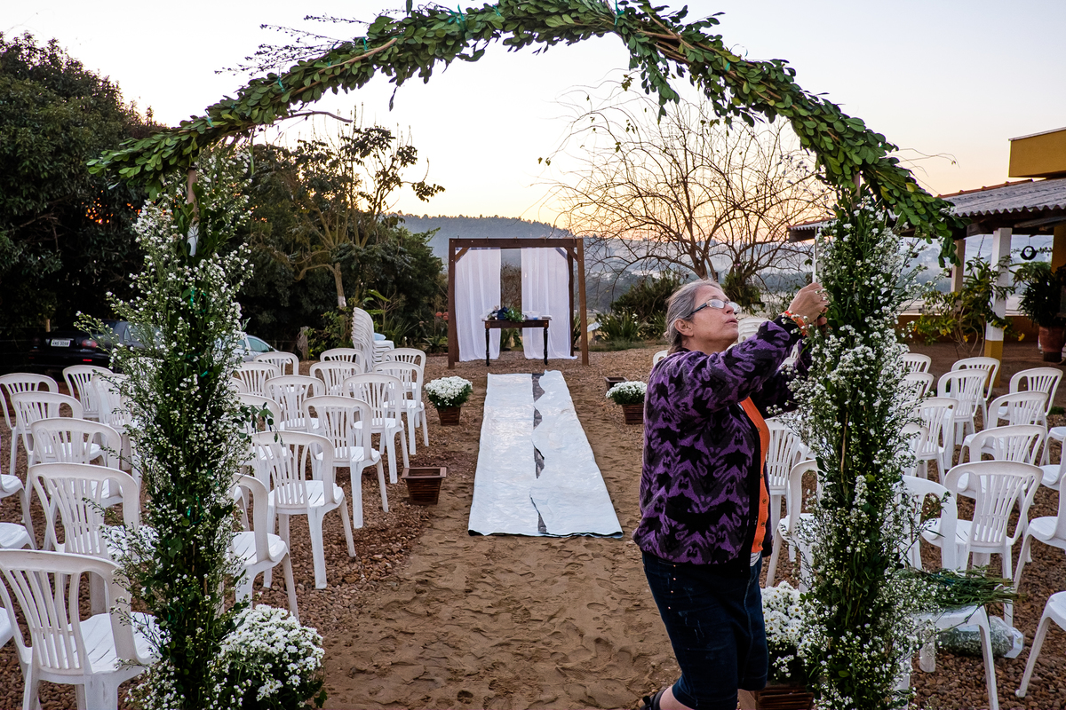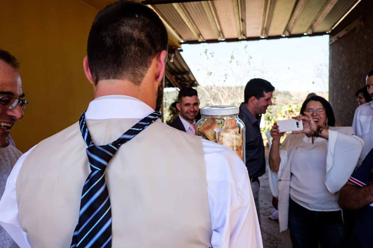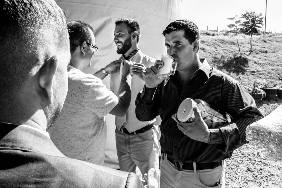 O Henrique se arrumou na casa dos seus pais, que foi onde aconteceu a cerimônia e a festa, a mesma casa onde ele cresce.