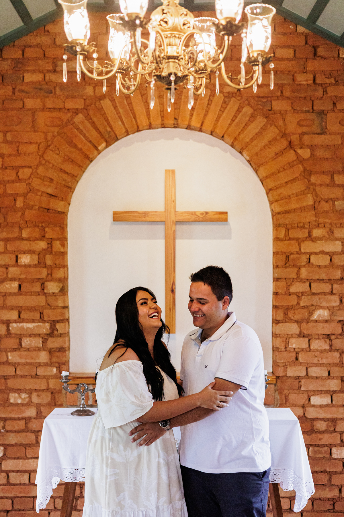 Foi ali, naquela capela abençoada, que cada clique da câmera testemunhou não apenas a beleza do amor entre eles, mas também a presença divina que os guiava. As fotos capturaram não apenas sorrisos e abraços, mas também a força de uma fé compartilhada, enraizada na confiança mútua e na devoção a Nossa Senhora Aparecida.