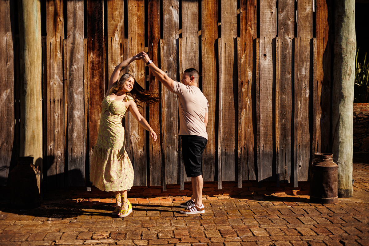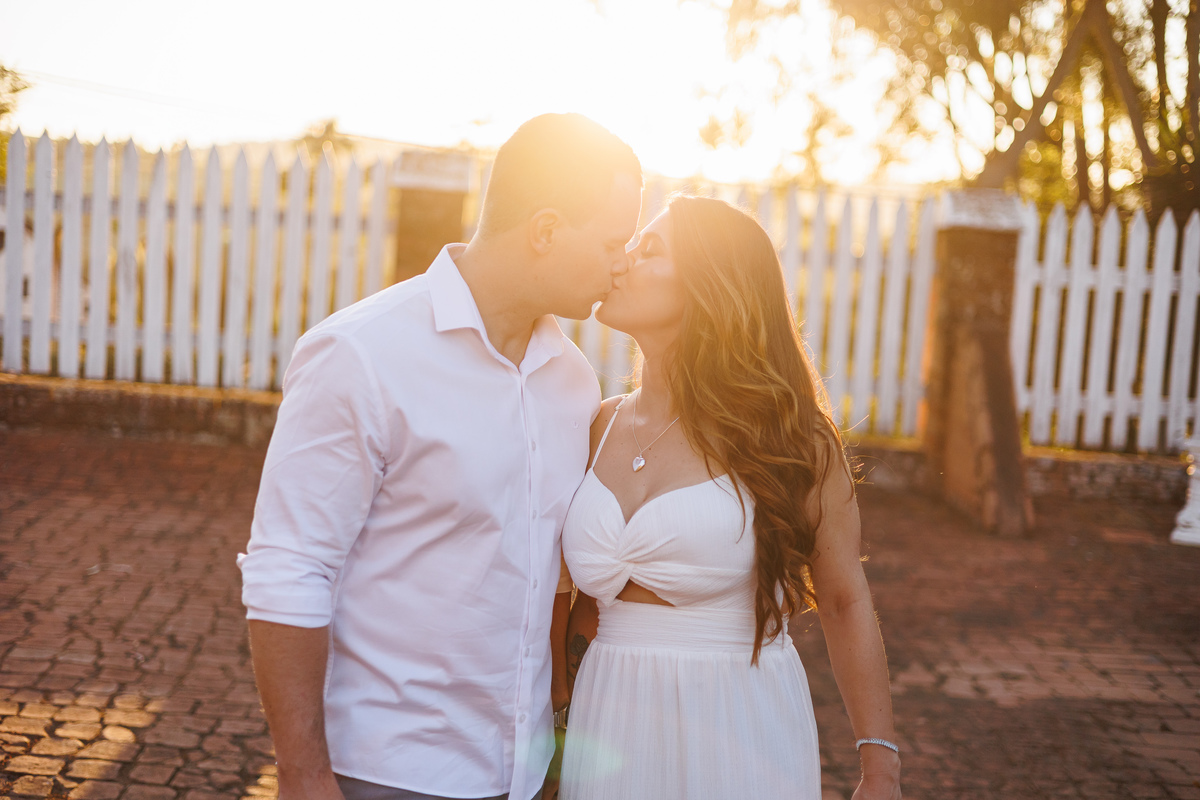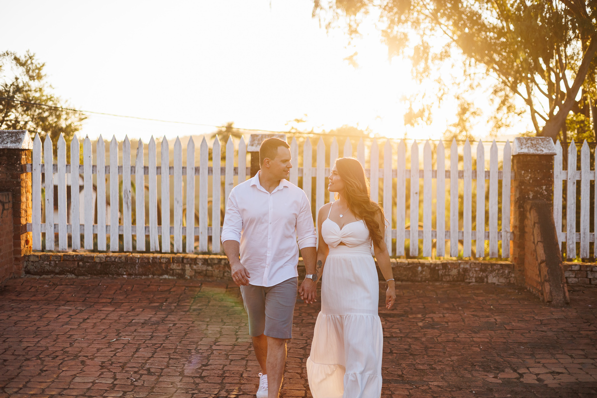O ponto alto foi o fim de tarde, que presenteou o casal com um pôr do sol cinematográfico. Os raios dourados do sol se espalhavam pelo campo, criando um cenário mágico e perfeito para capturar as últimas imagens do dia. As fotos ficaram incríveis, refletindo não apenas a beleza do local, mas também a essência vibrante e apaixonada de Pamela e Felipe.
