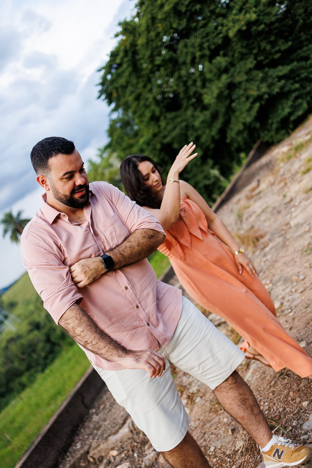 Durante todo o ensaio, o que se via era verdade. Risadas espontâneas, abraços que surgiam no meio do caminho, olhares que diziam muito mais do que qualquer pose poderia dizer. Eles não estavam “fazendo um ensaio”. Estavam vivendo o dia deles. Do jeito deles.