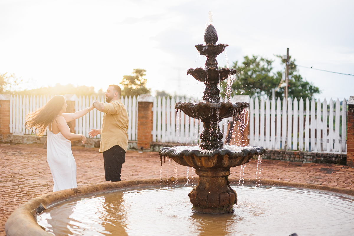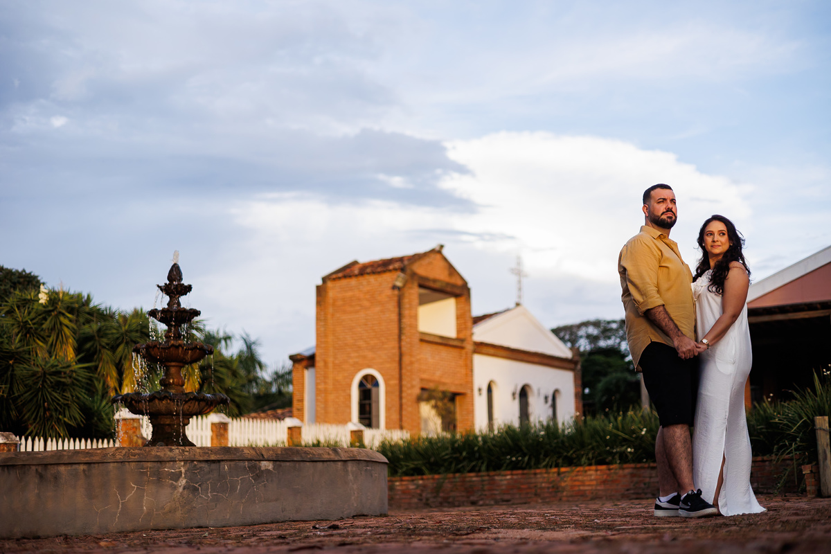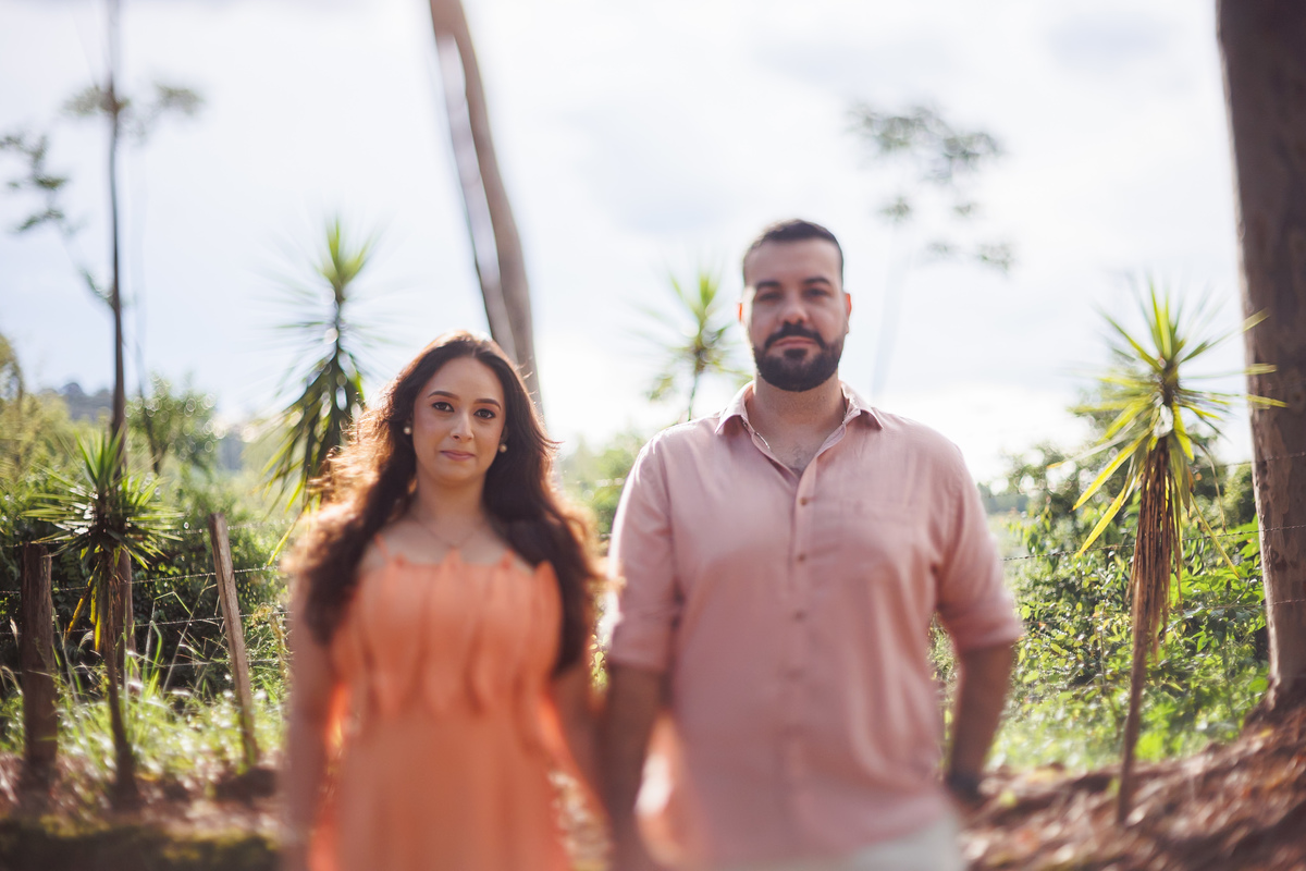 O ensaio da Tayná e do Gabriel aconteceu na Fazenda Casarão São Bento, o mesmo lugar onde, em breve, eles vão dizer “sim”. E talvez por isso tudo tenha feito ainda mais sentido. Cada passo, cada olhar, cada sorriso já carregava um pouco do que está por vir.